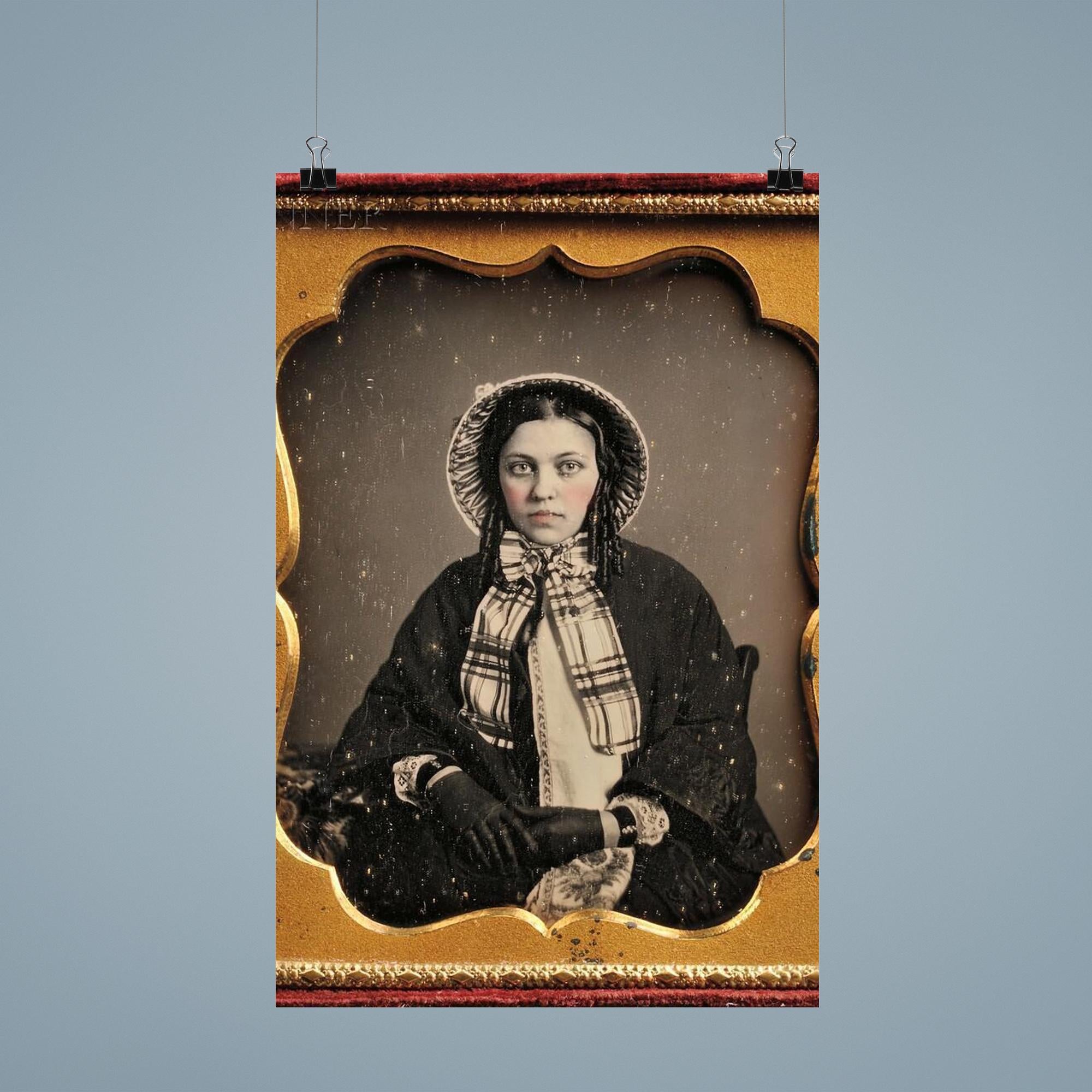 Elevate your space with the timeless elegance of "Young Lady, 1867." This exquisite poster captures a moment of refined beauty and grace from a bygone era, inviting you to appreciate the artistry and subtle charm of the 19th century. Perfect for adding a touch of classic sophistication to any room.
