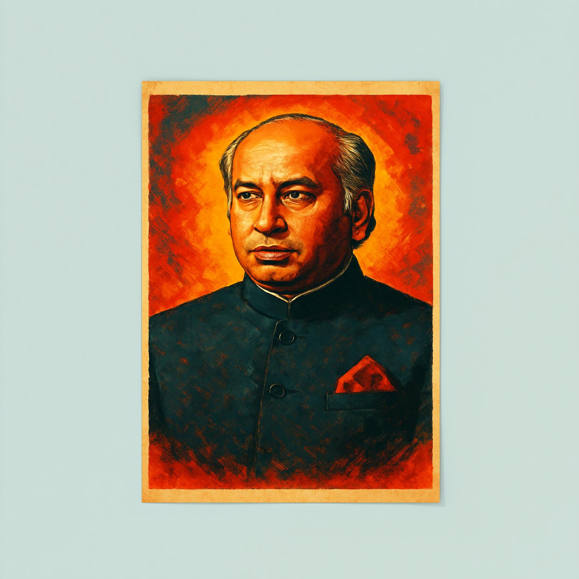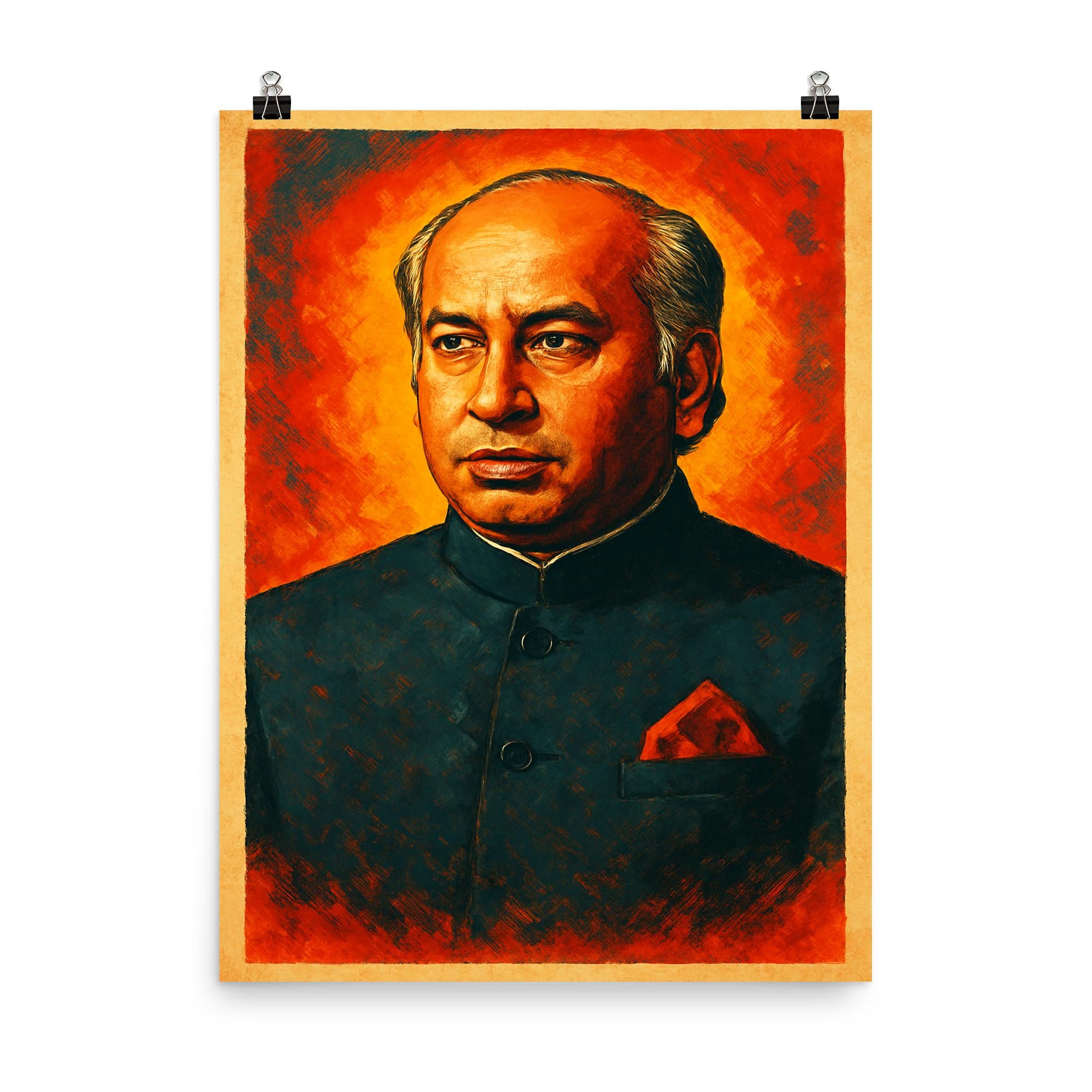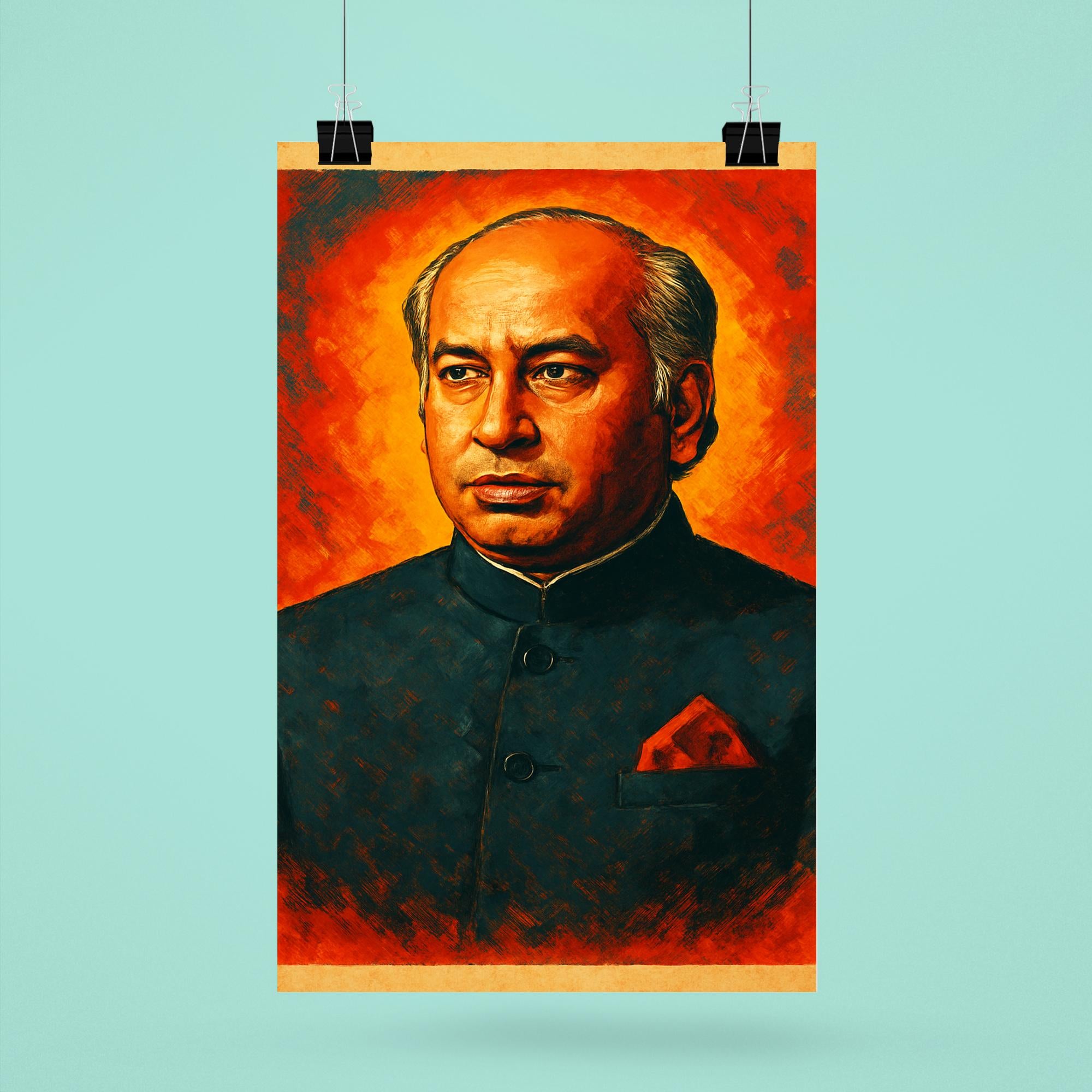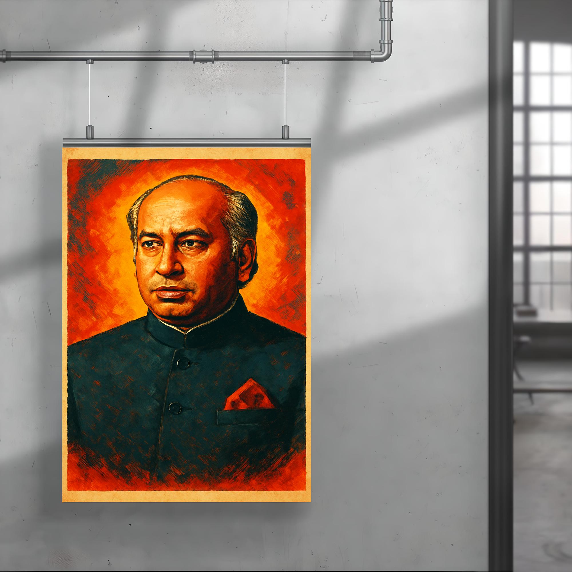 Celebrate the iconic legacy of Zulfikar Ali Bhutto with this striking poster that honors one of Pakistan’s most influential leaders. Perfect for inspiring any space, it captures the spirit of a visionary committed to shaping history. Elevate your décor with a powerful reminder of dedication, leadership, and patriotism.