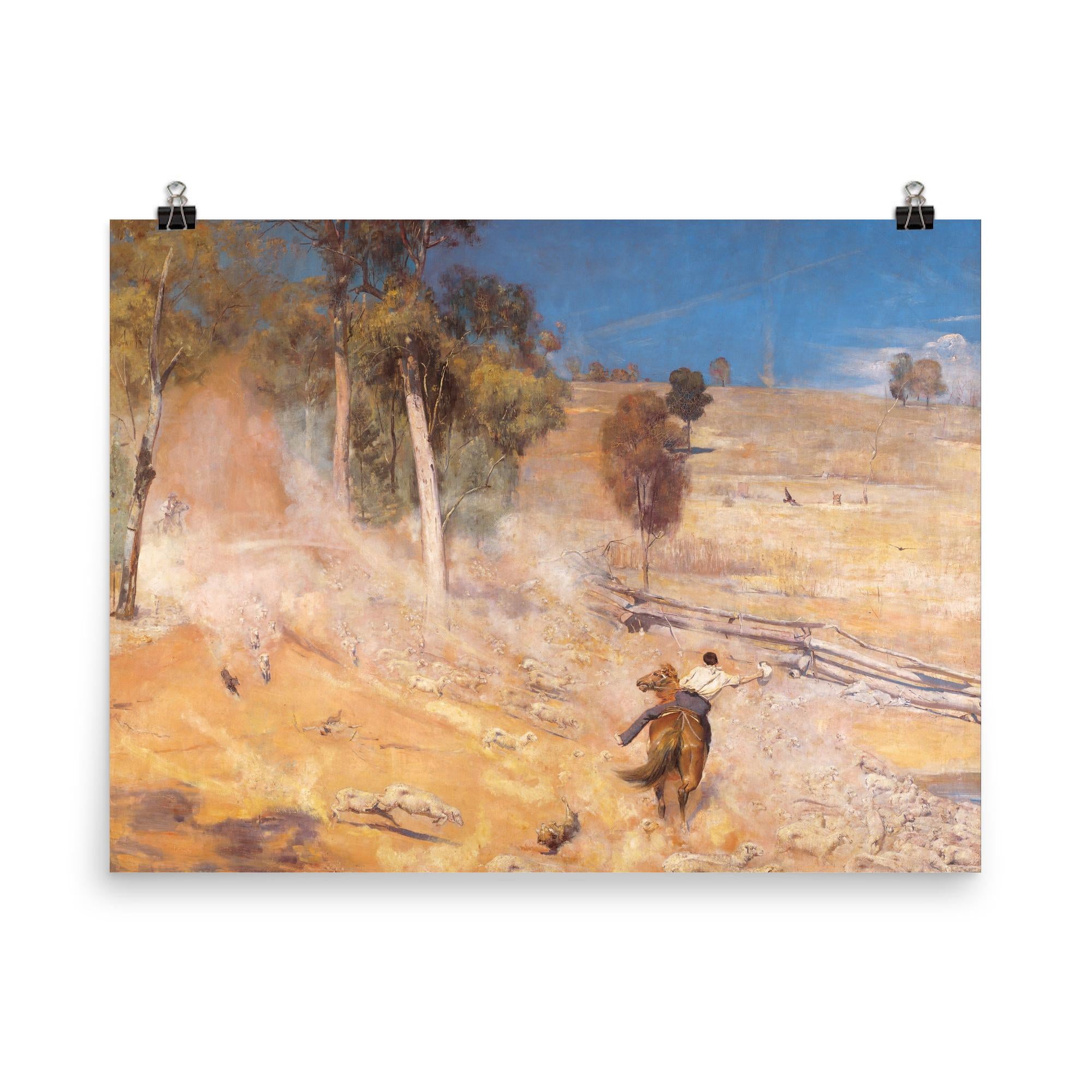 Experience a timeless moment of Australian heritage with this stunning poster of *A Break Away* by Tom Roberts, 1891. Celebrating the spirit of the outback, this artwork captures the raw energy and determination of drovers driving cattle across the rugged landscape. Perfect for lovers of classic art and history alike, it brings a powerful narrative and striking realism into any space.