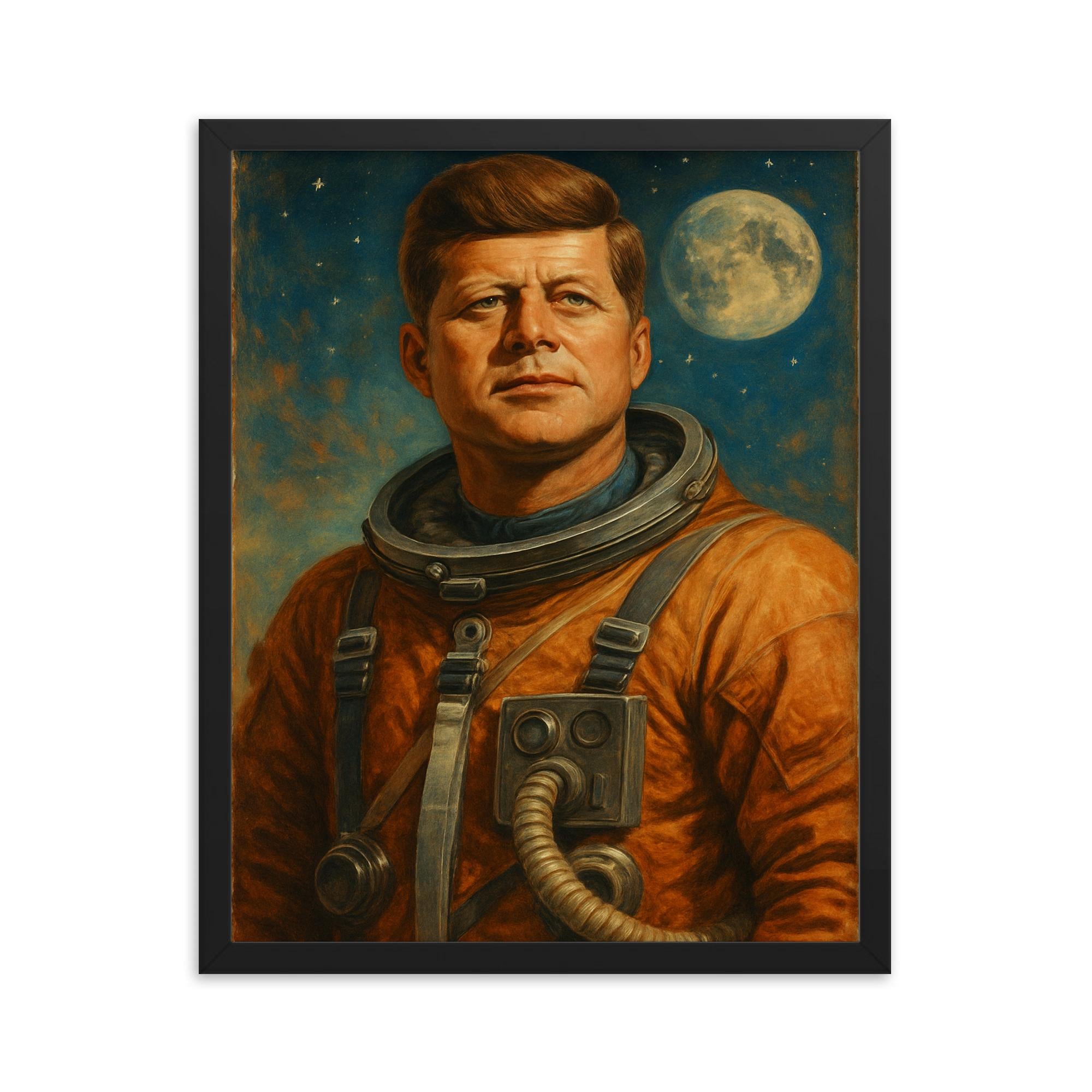 John F Kennedy Astronaut Framed Print – Retro Heroic JFK Wall Art for Unique Vintage Space Decor