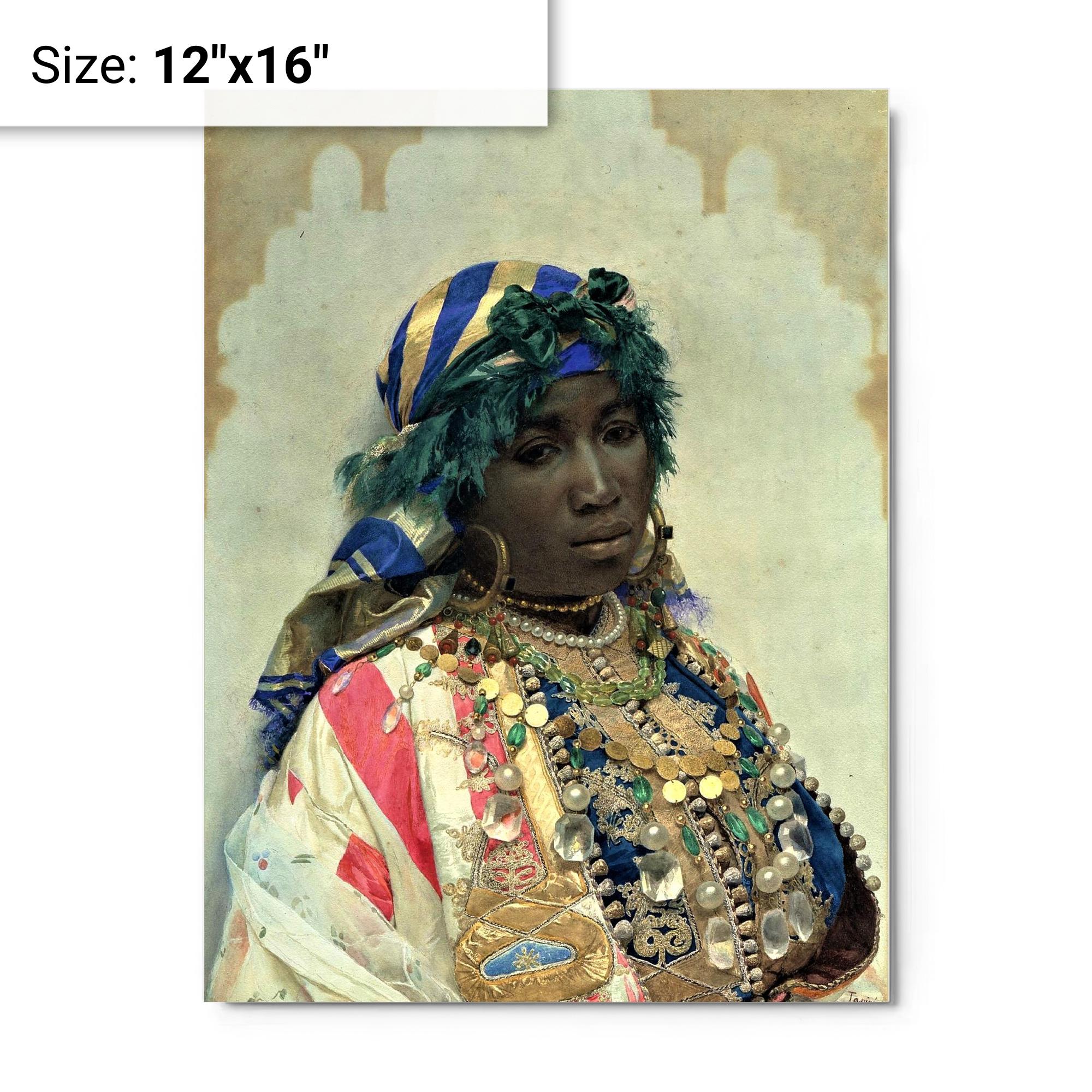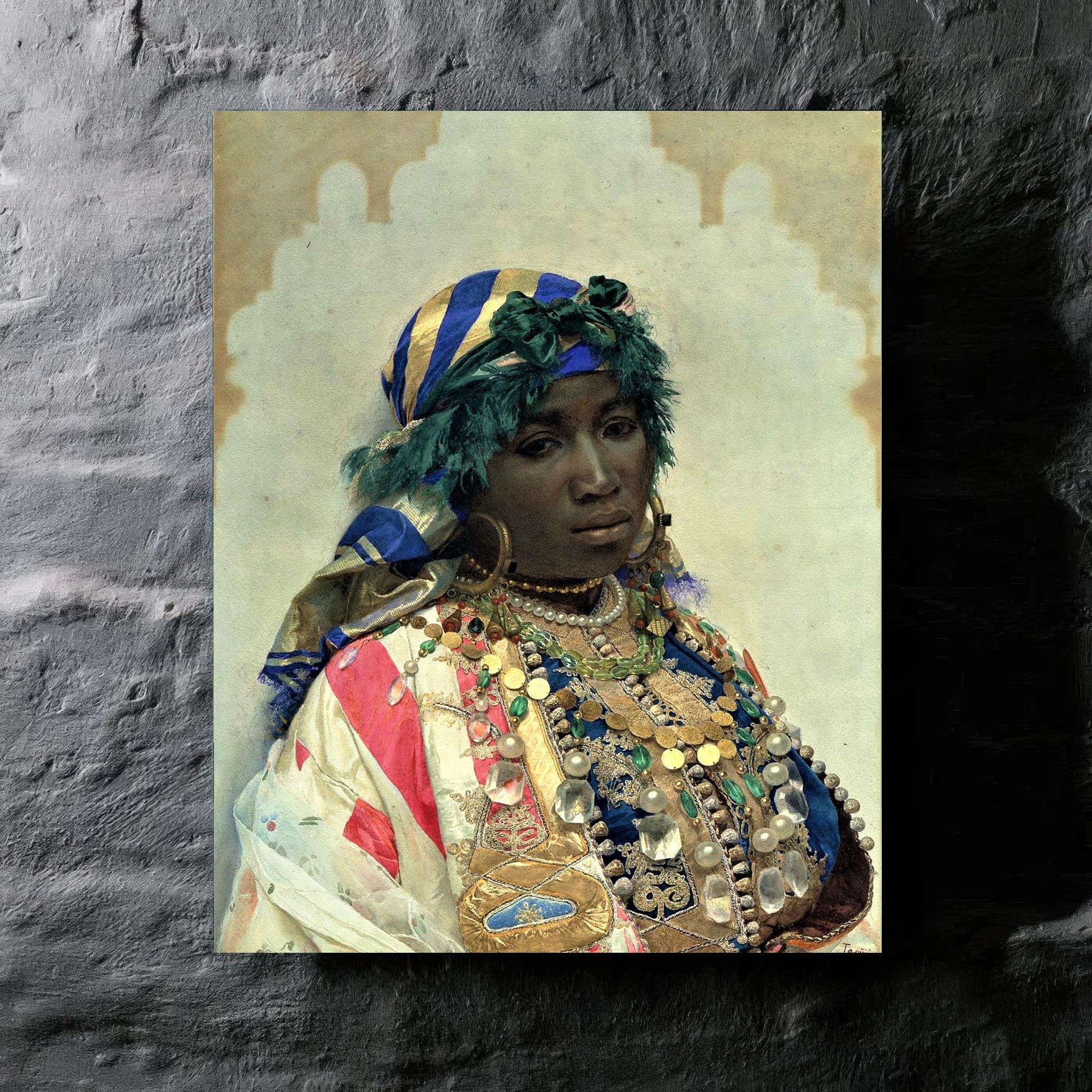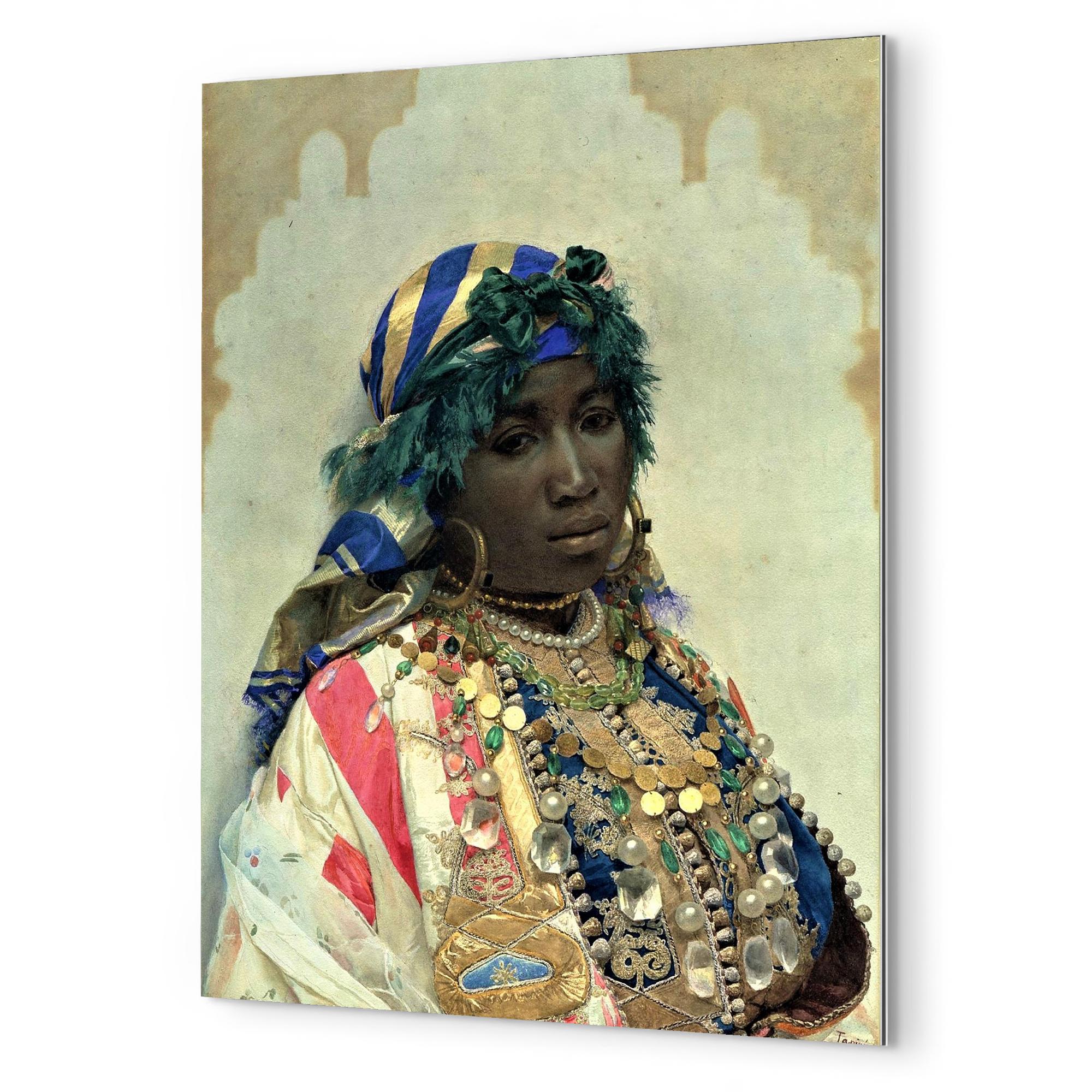 A metal print reproduction of "A Tangerian Beauty" by José Tapiró y Baró.
