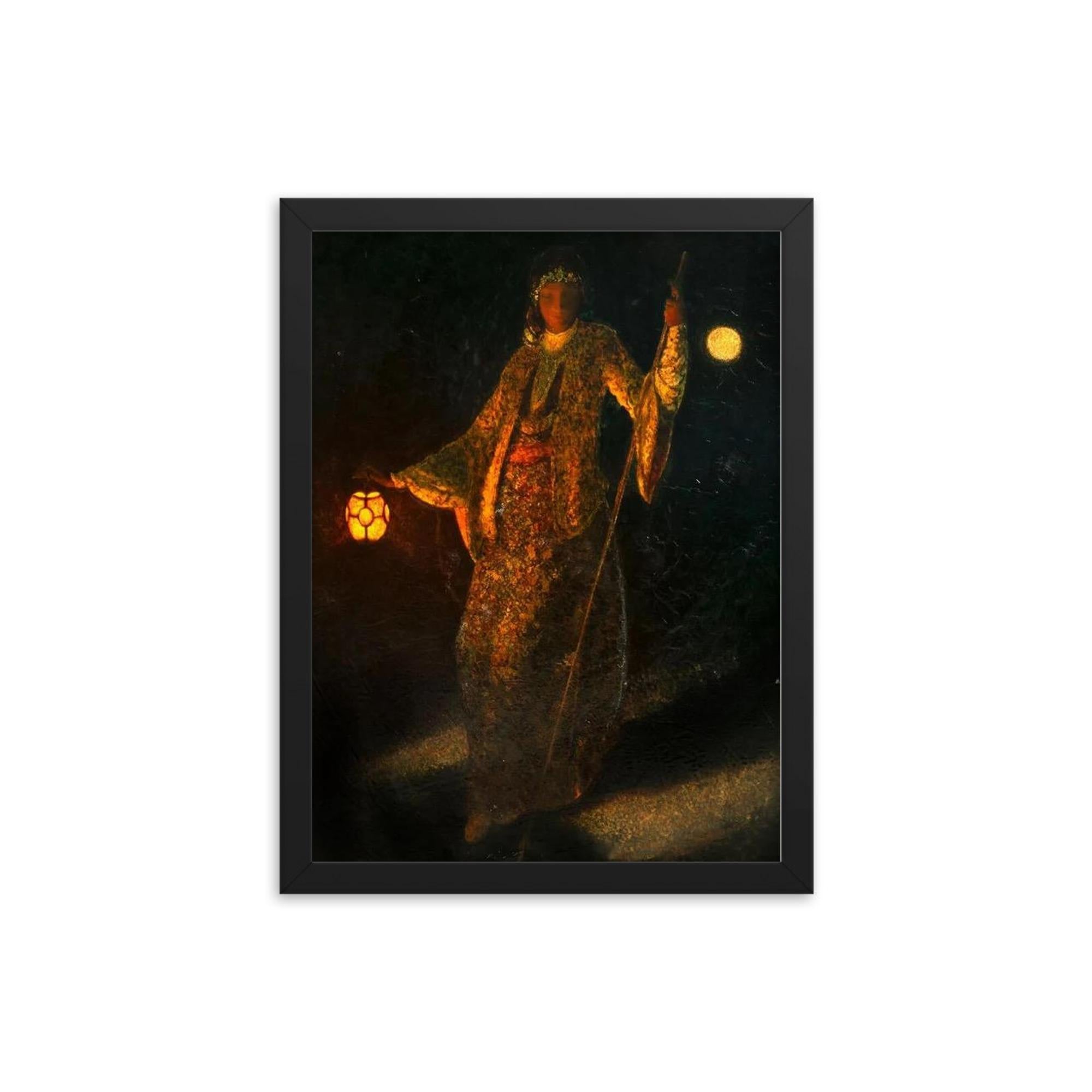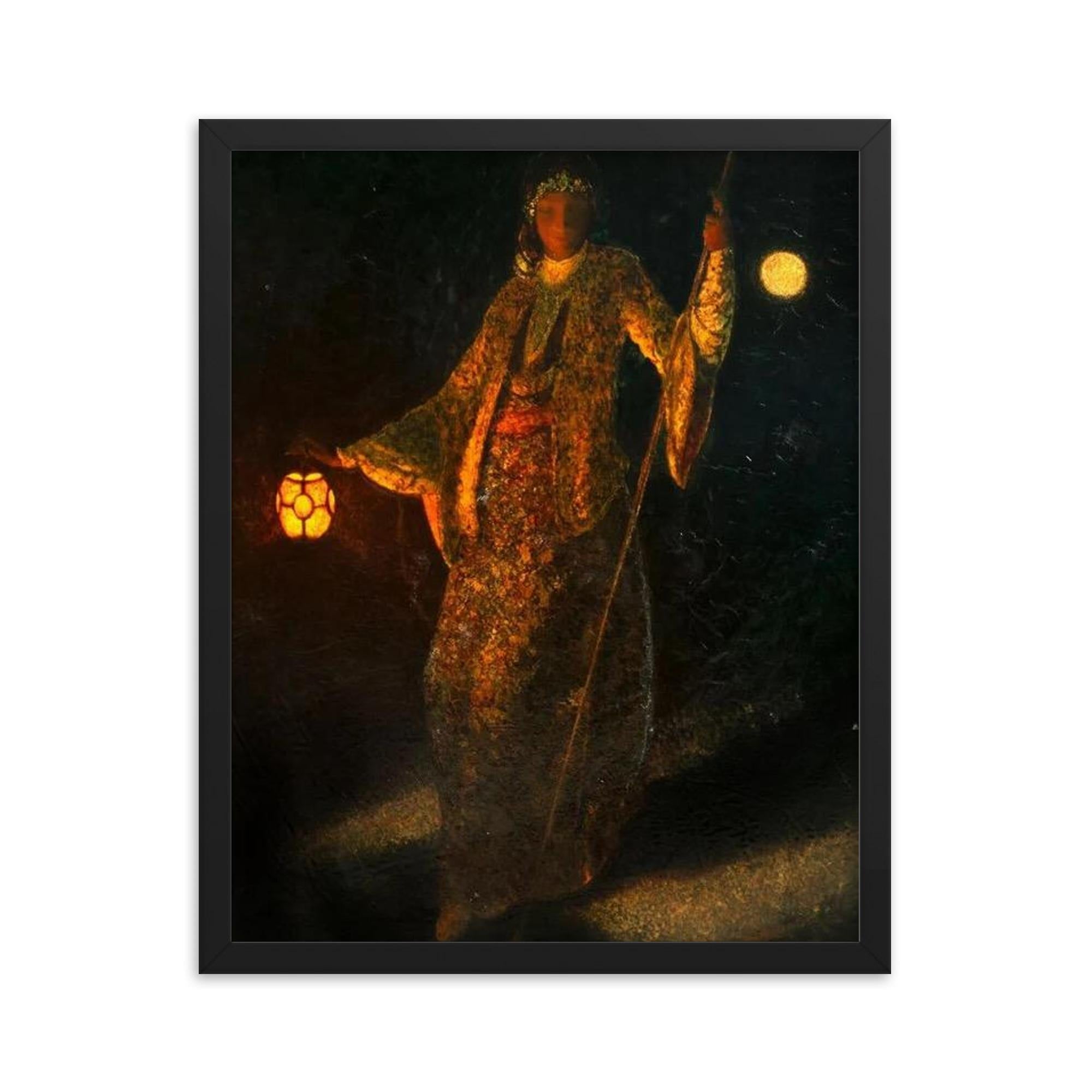 Elevate your space with timeless elegance through this exquisite framed print of A Woman and Lantern at Night, a captivating European Orientalist portrait.