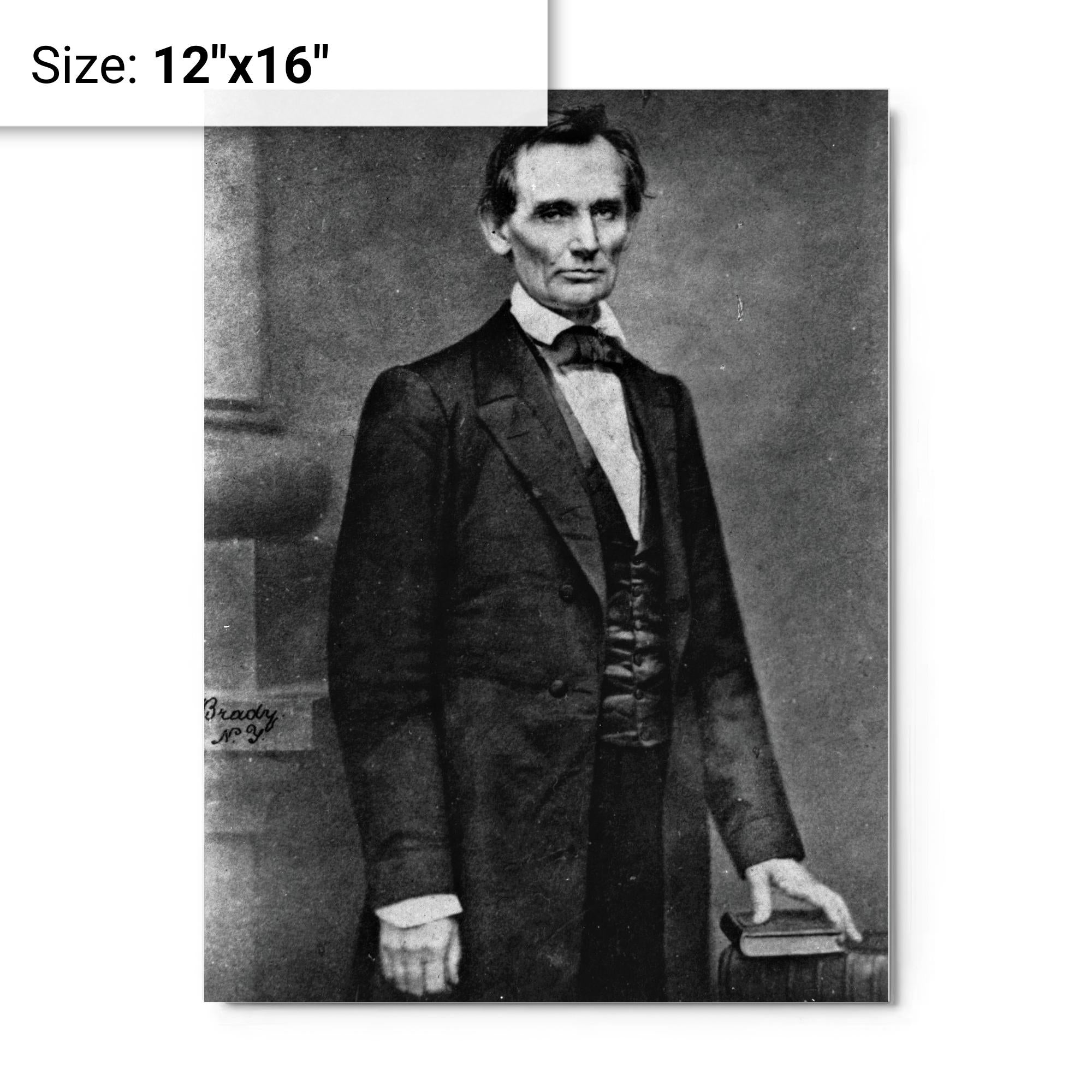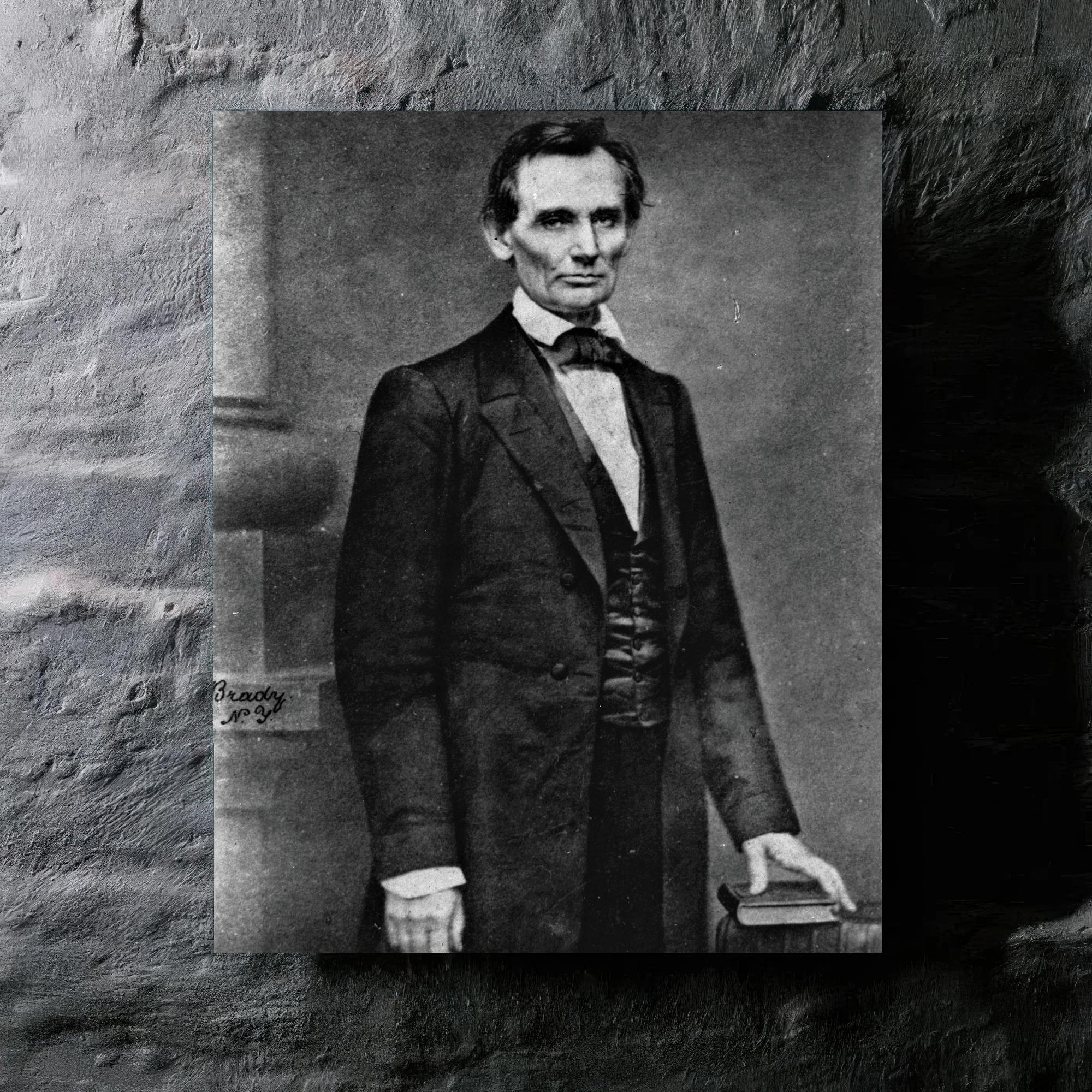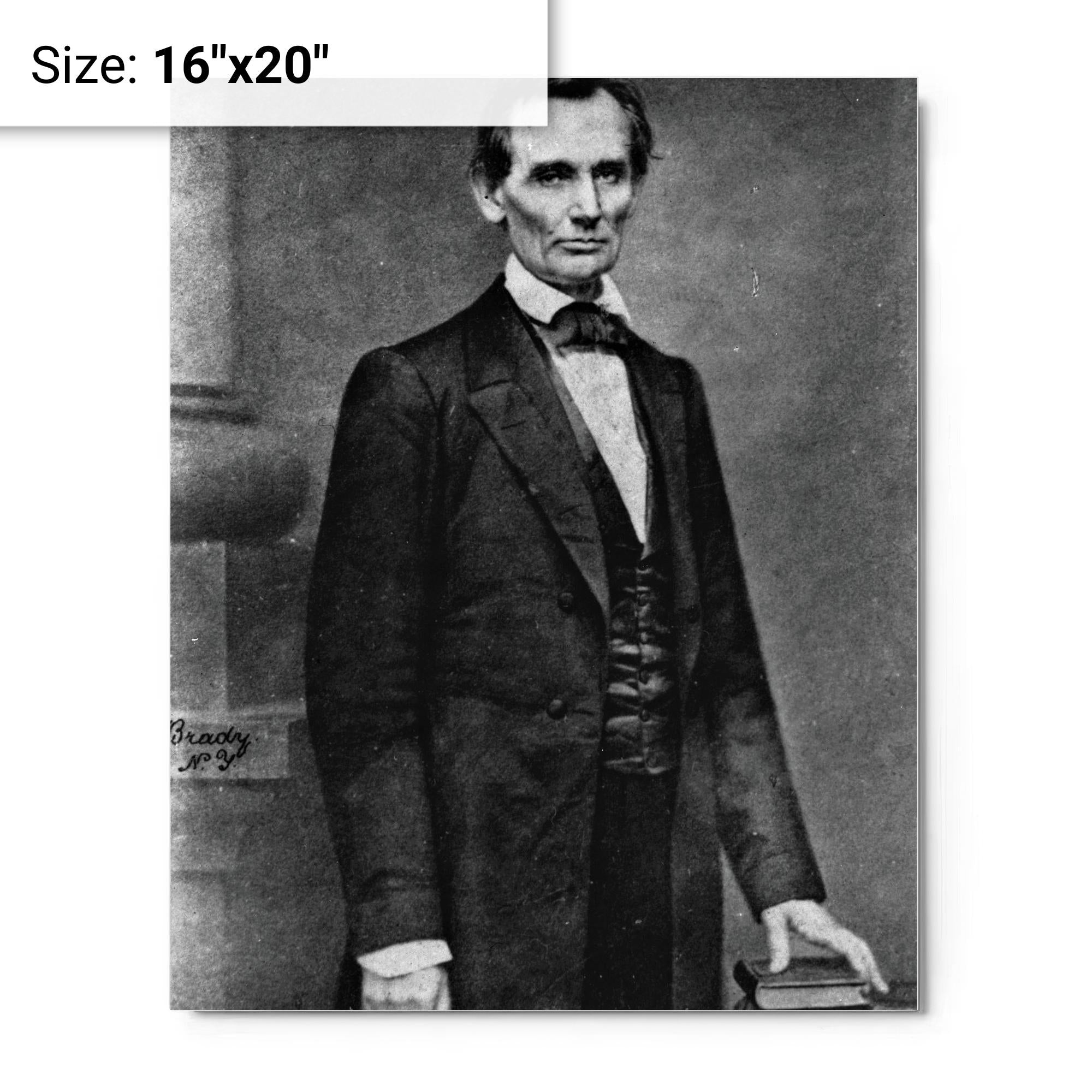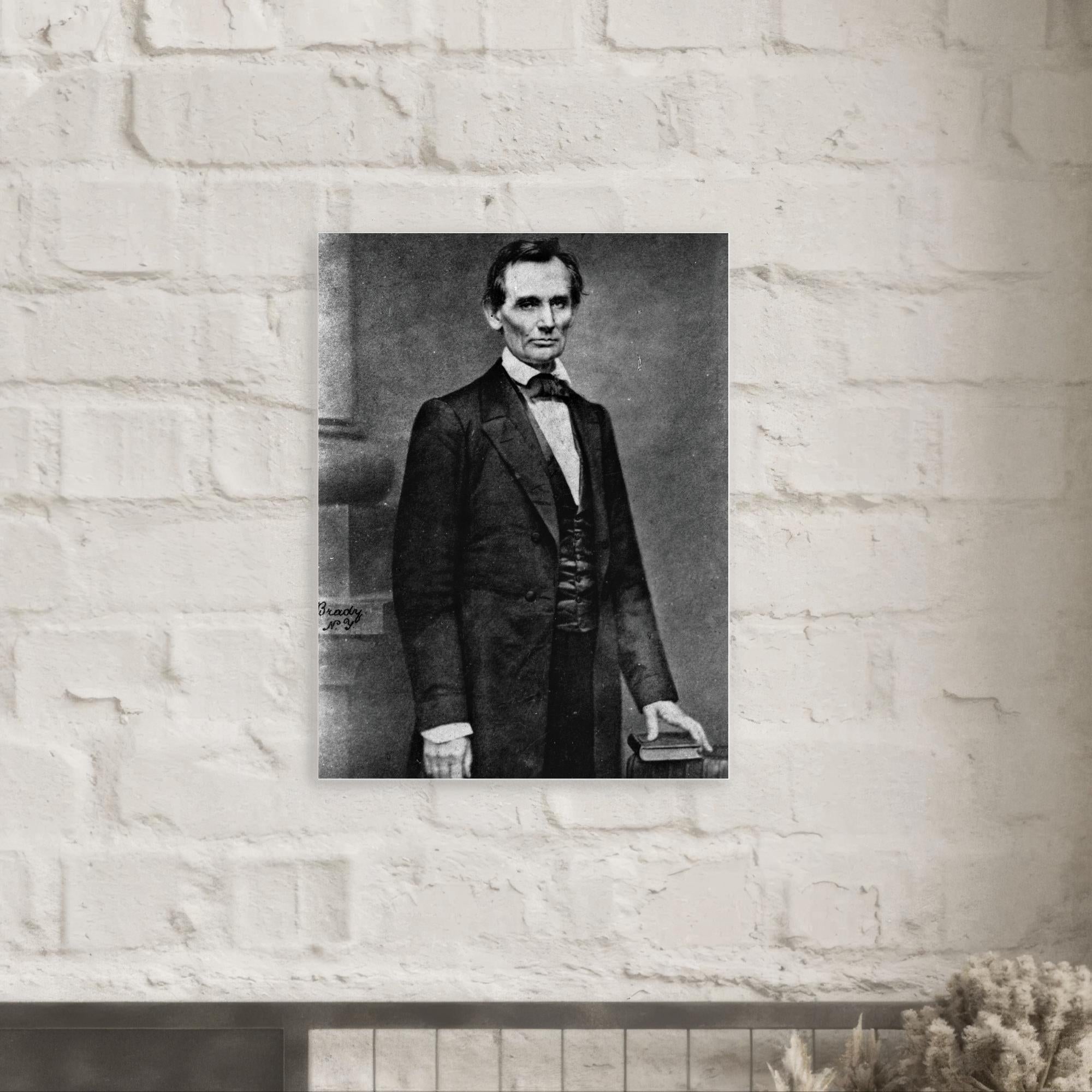 Mathew Brady’s portrait of Abraham Lincoln is given a quiet, commanding presence in this metal print—his lined face and steady gaze feel immediate, holding history and humanity in a single, unforgettable moment.