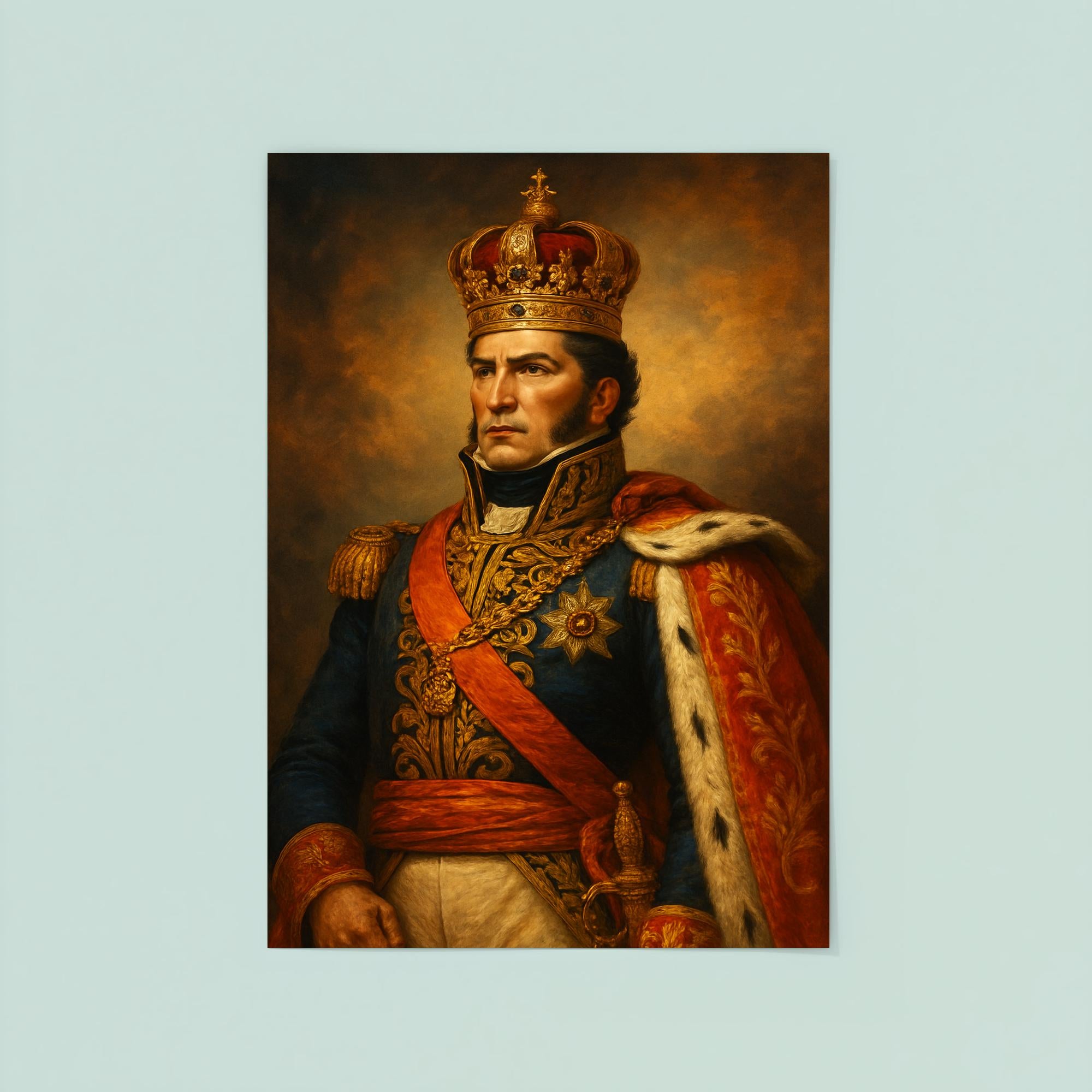 Celebrate a pivotal figure in history with this striking poster of Agustin I of Mexico. Perfect for enthusiasts of Mexican heritage and political history, this piece captures the legacy of Mexico’s first emperor with timeless elegance. Whether displayed in a study, office, or living space, it adds a distinguished touch that honors a unique chapter in the nation’s story.