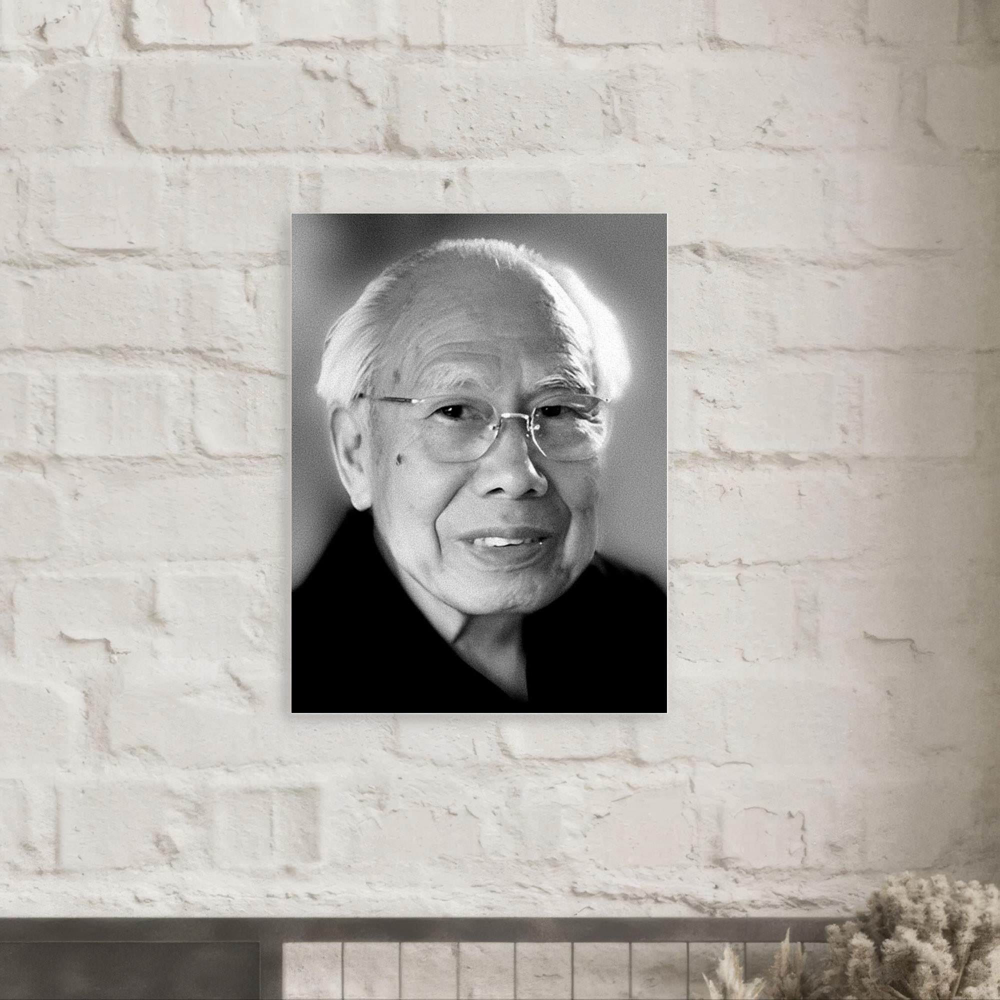 This metal print brings Akira Yoshizawa into the room — a quiet, powerful reminder of a life spent turning paper into poetry.