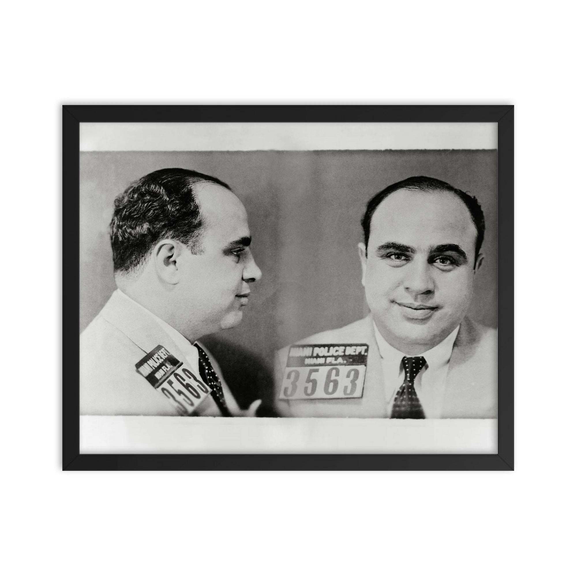 Own a slice of gangster legend with this framed Al Capone mugshot print—where history meets art, wrapped in strength and style.