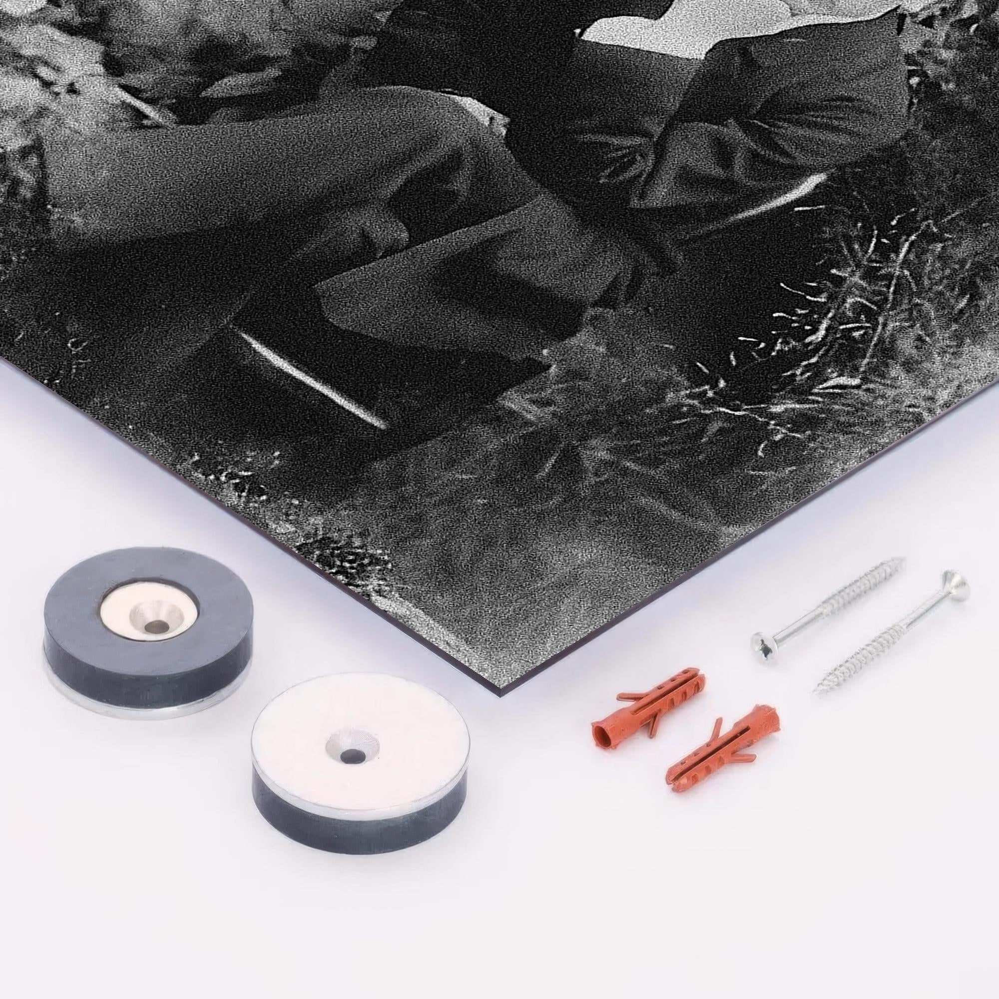 Your new metal print arrives ready to hang, creating a stunning "floating" effect right out of the box. It includes a complimentary, pre-installed mounting system—a magnet, hanger or secure French cleat—selected by our lab to best suit its size, ensuring a gallery-quality presentation.