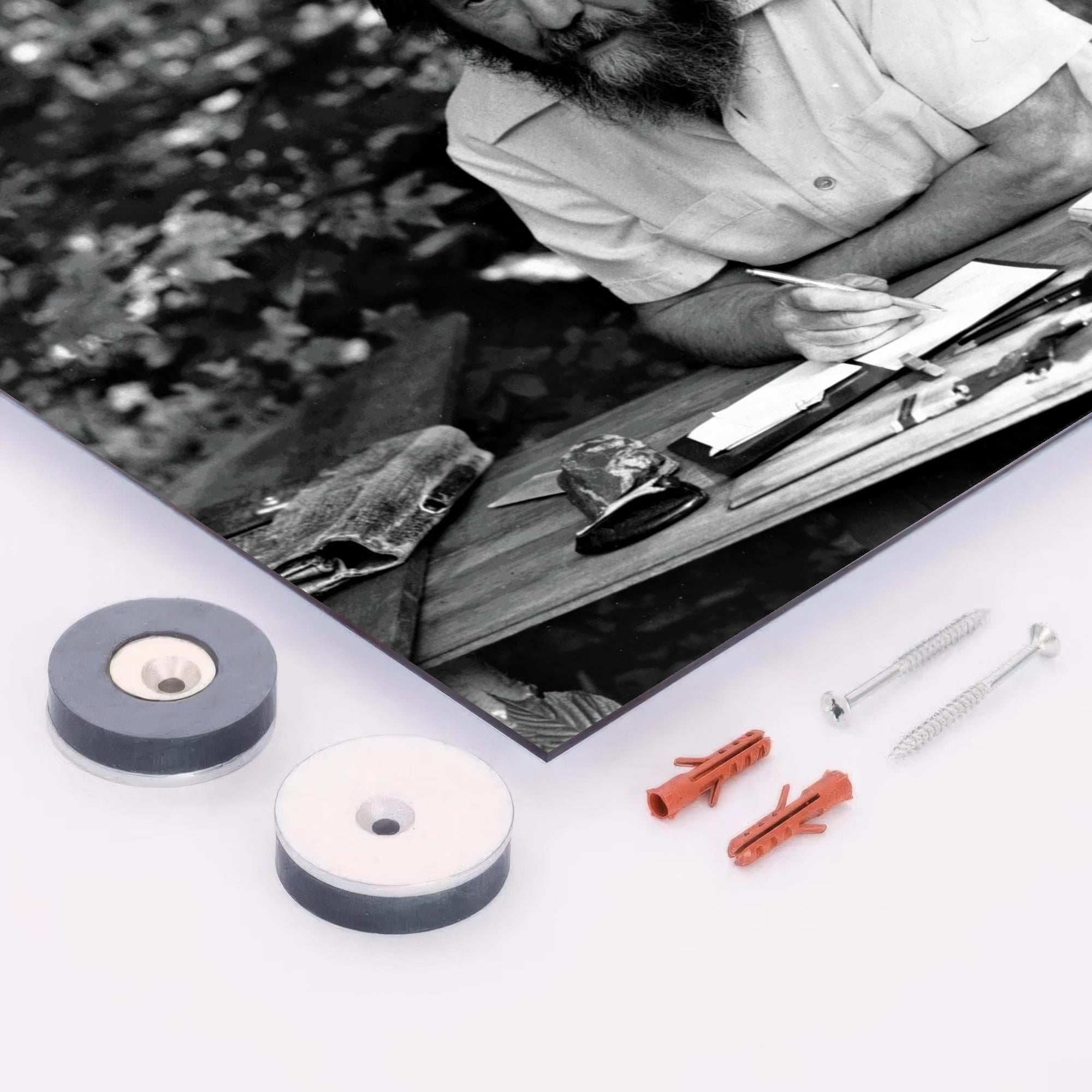 Your new metal print arrives ready to hang, creating a stunning "floating" effect right out of the box. It includes a complimentary, pre-installed mounting system—a magnet, hanger or secure French cleat—selected by our lab to best suit its size, ensuring a gallery-quality presentation.