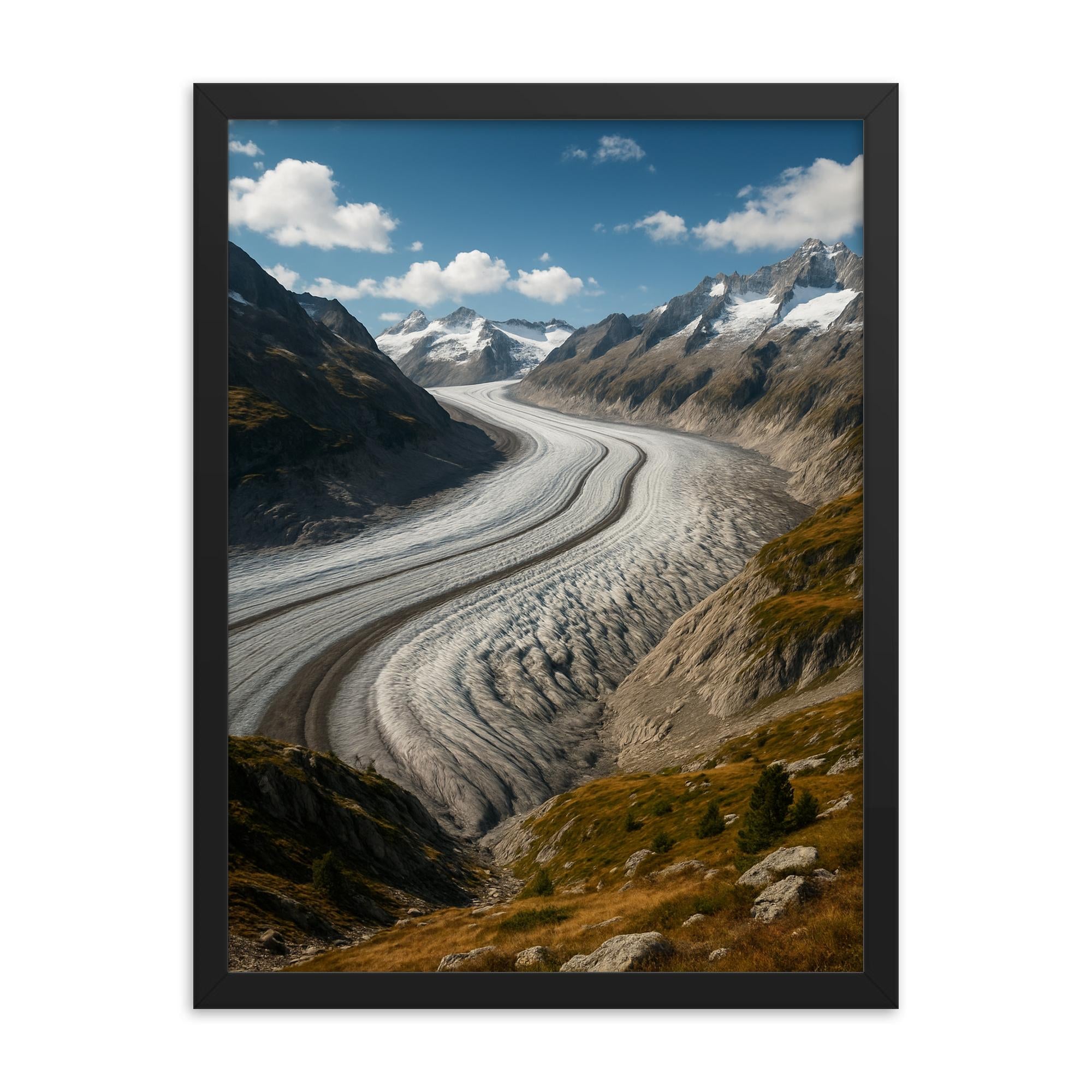 Elevate your space with the breathtaking beauty of the Aletsch Glacier, Switzerland’s largest glacier, captured in a stunning framed print that brings nature’s grandeur right into your home or office.