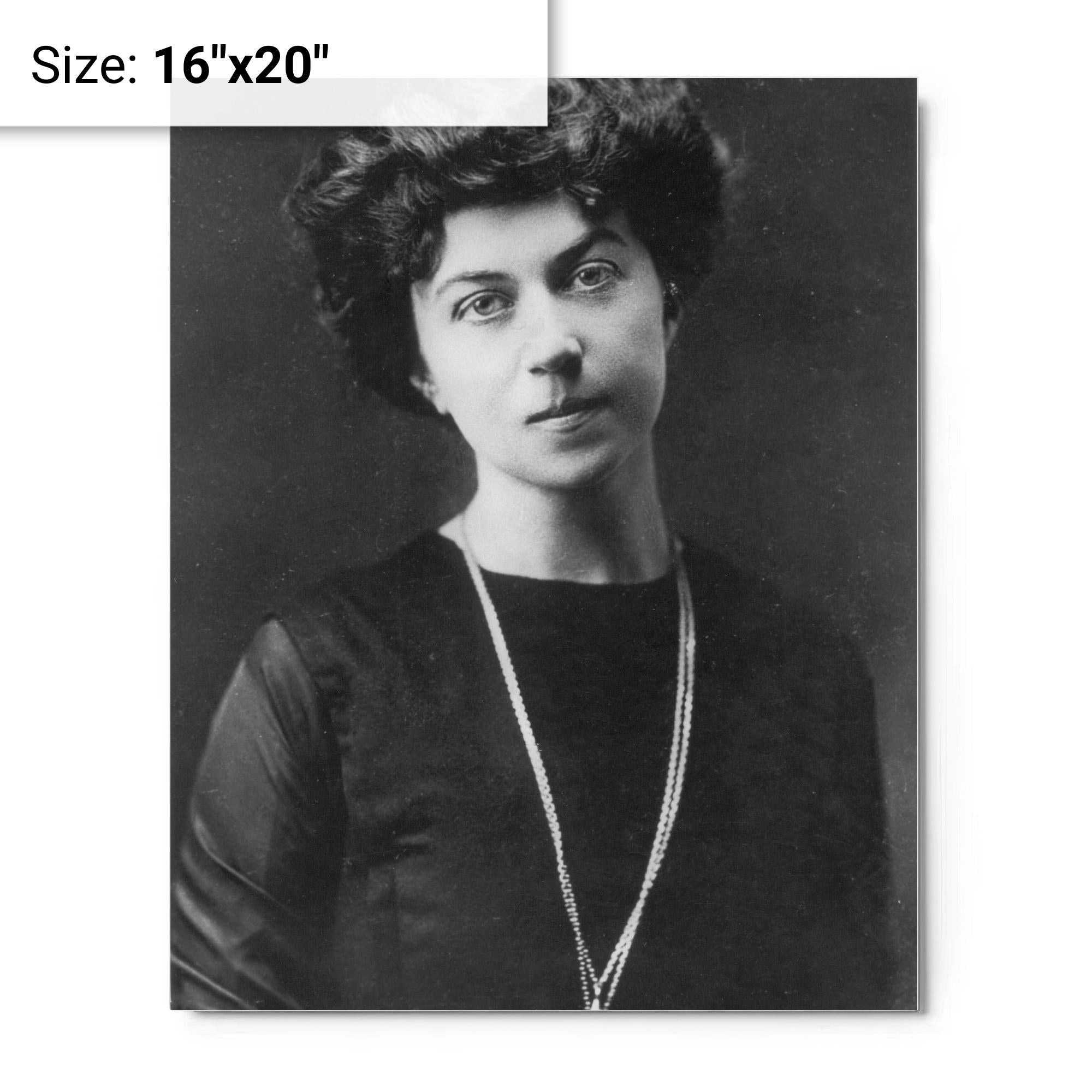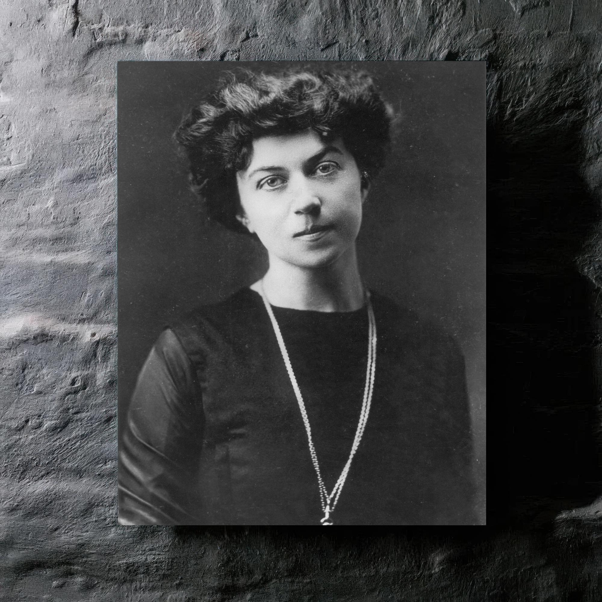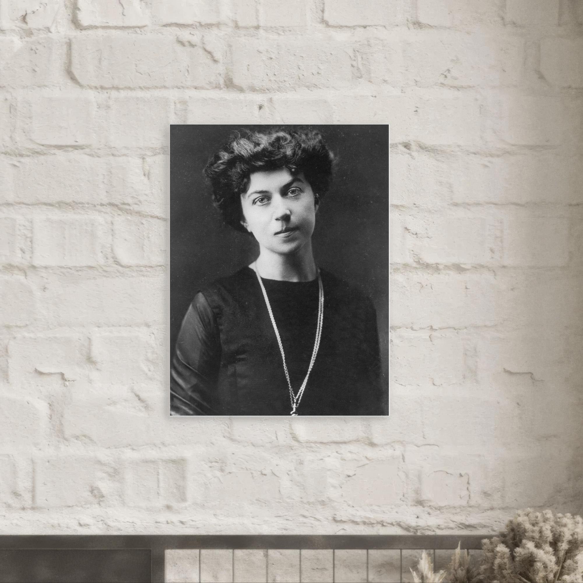This metal print of Alexandra Kollontai brings her resolute presence into any space—human, direct, and impossible to ignore.