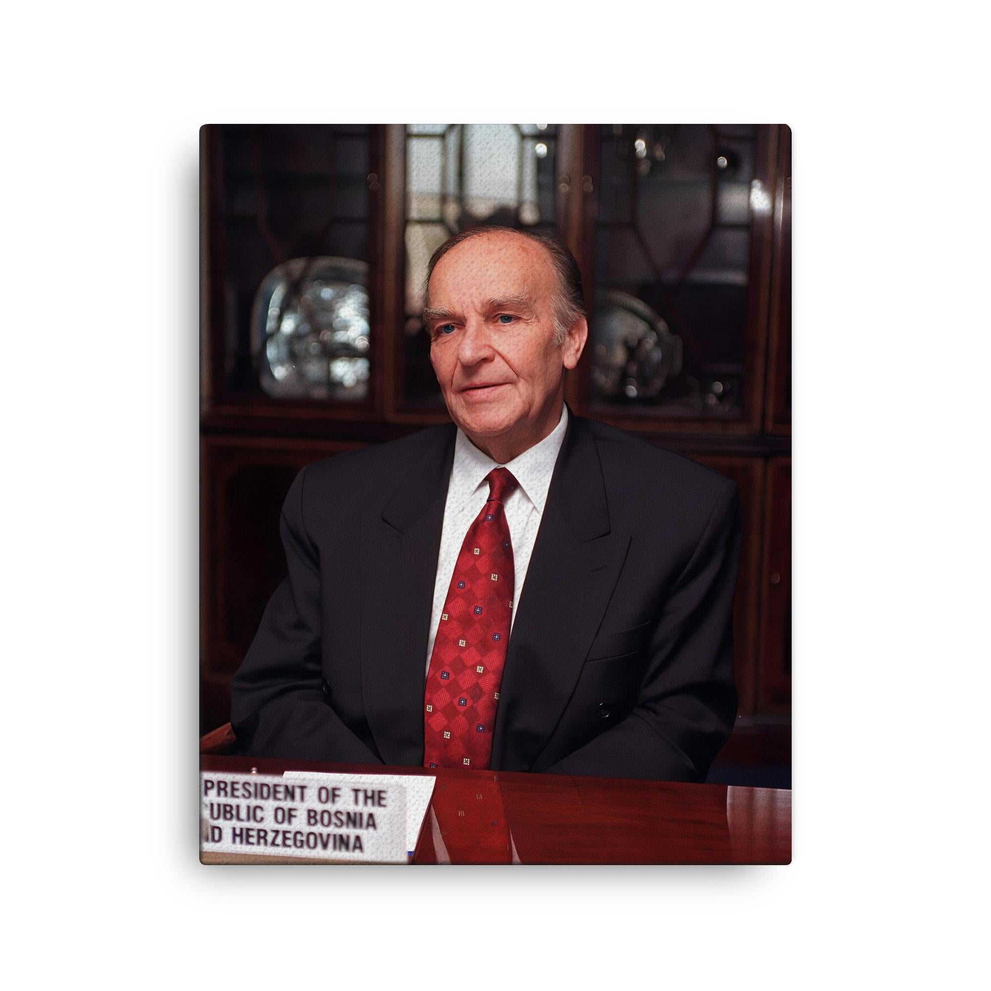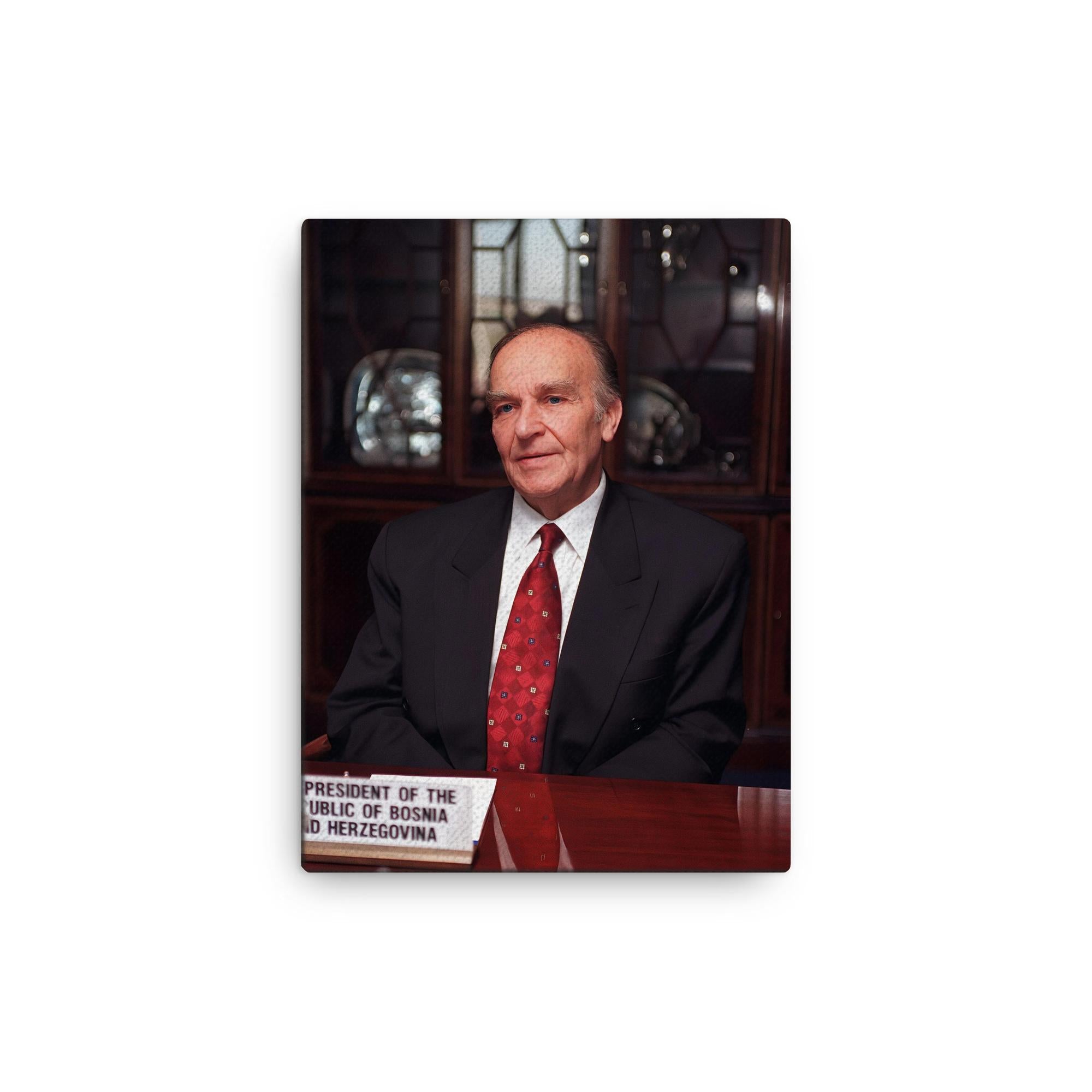 Elevate your space with this striking canvas print of Alija Izetbegović, a symbol of resilience and leadership in modern history. This stunning artwork captures the essence of a visionary who shaped a nation, making it a powerful conversation starter for any room. Perfect for admirers of history and art alike, this print is a tribute to the enduring spirit of unity and hope.