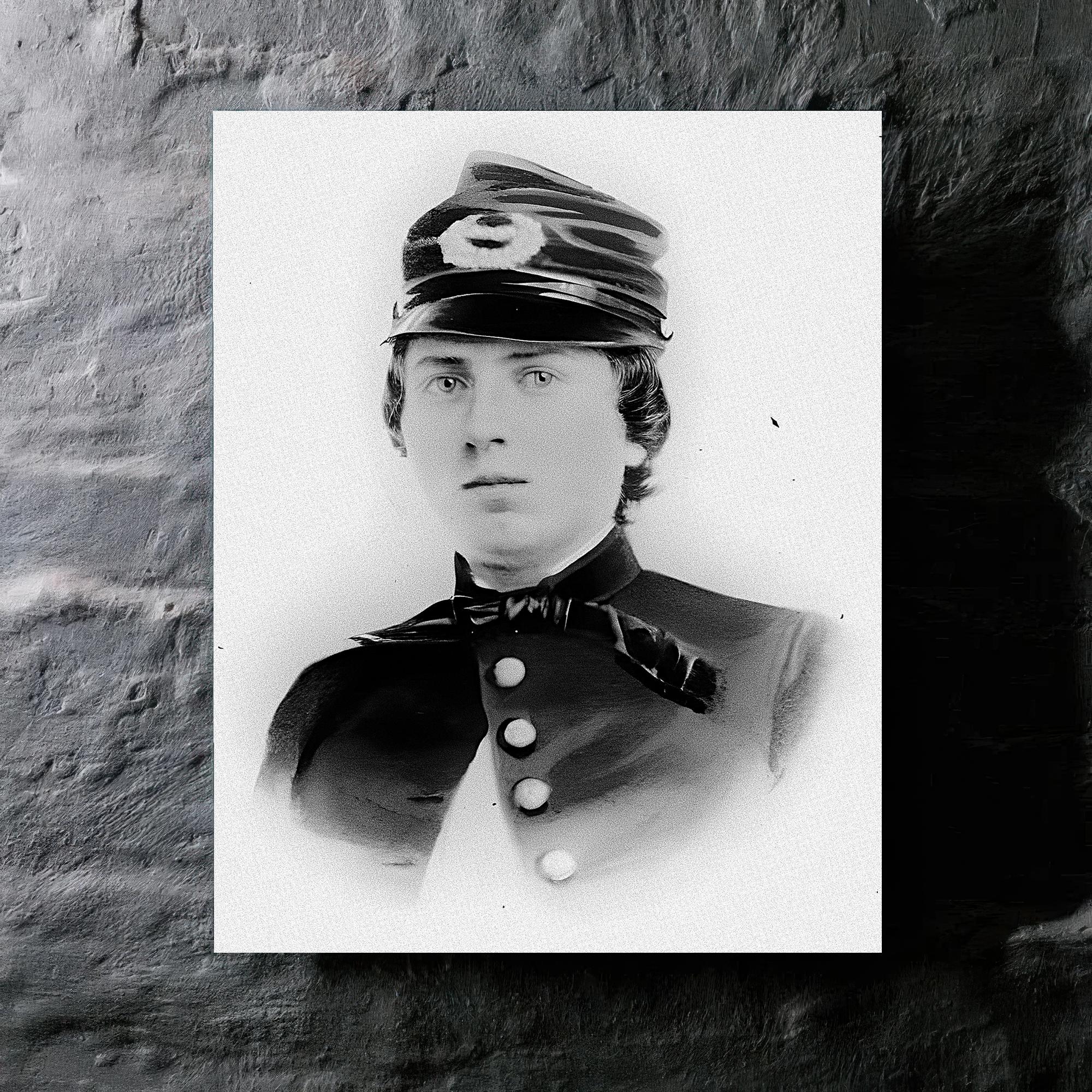 A metal print of Alonzo Cushing offers a quiet, lasting tribute to a life marked by duty and courage.