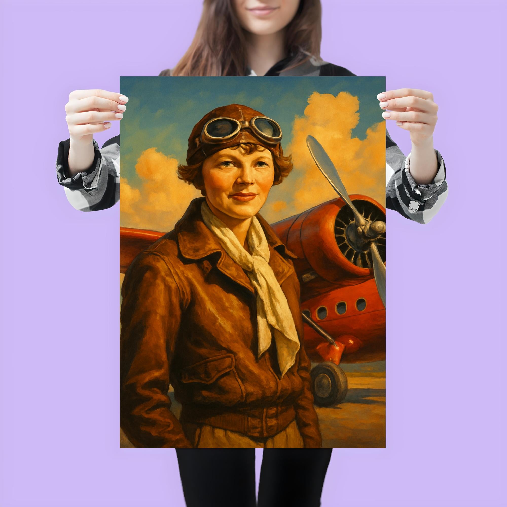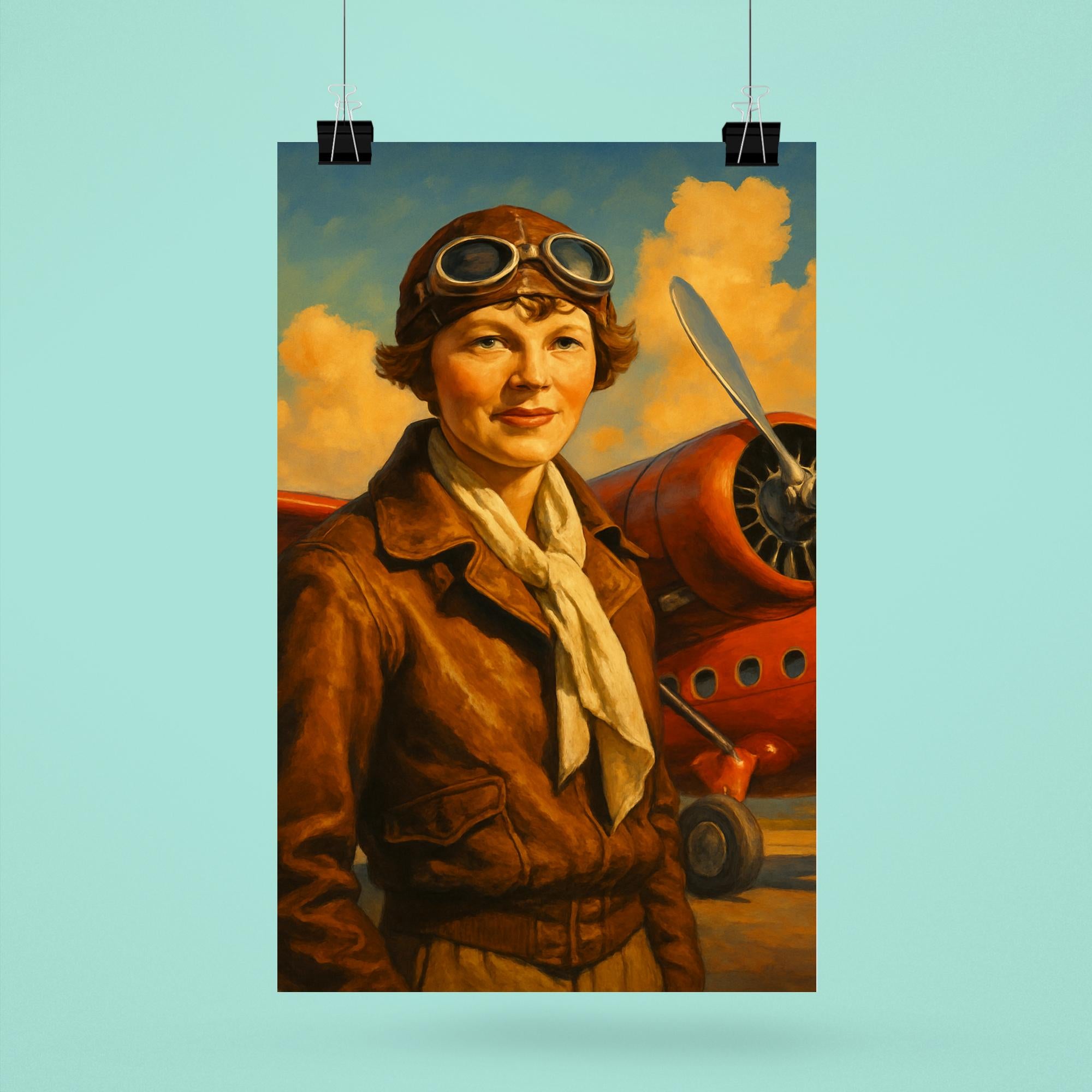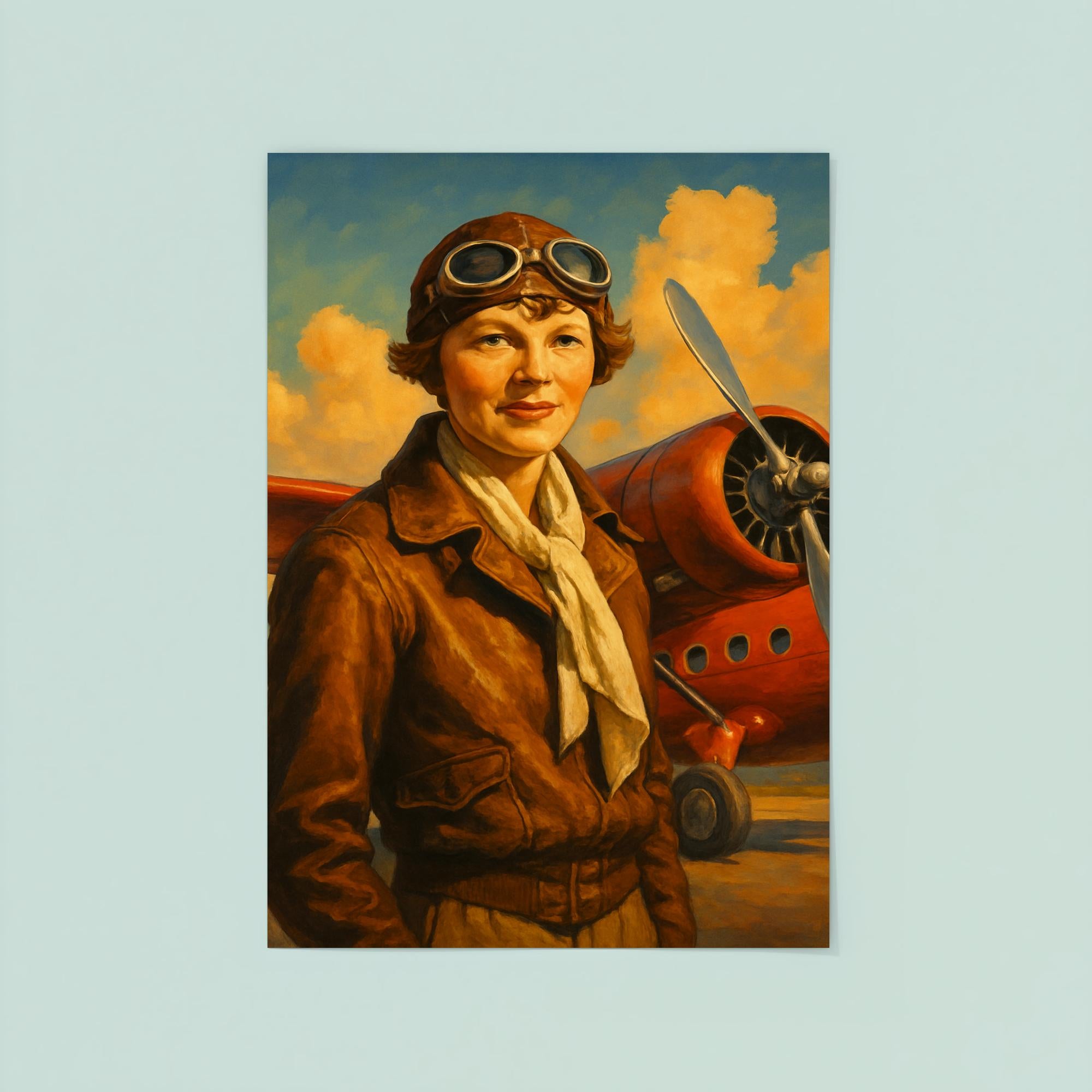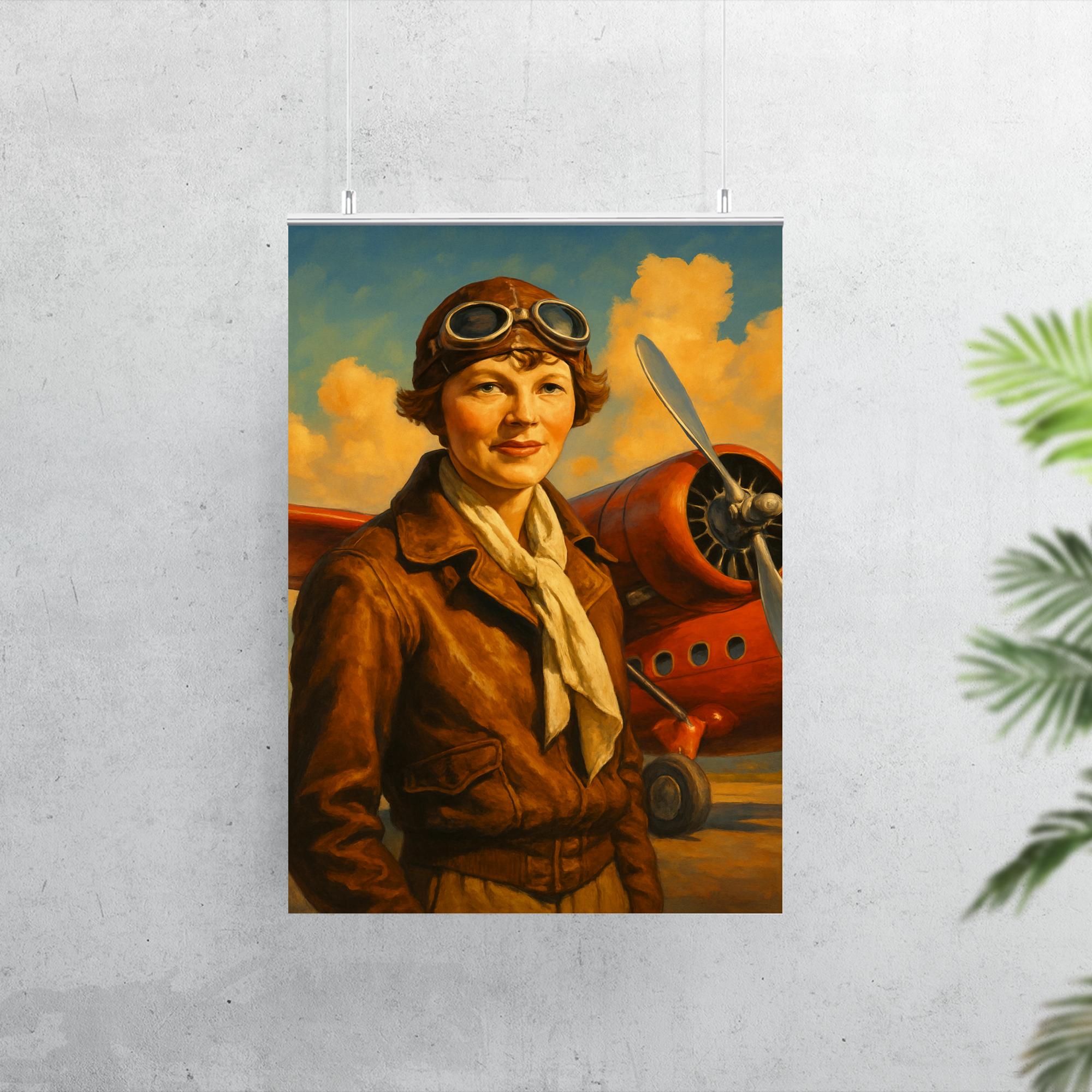 Celebrate the fearless spirit of aviation pioneer Amelia Earhart with this striking poster. Perfect for inspiring dreamers and adventurers alike, it captures the legacy of a trailblazer who soared beyond limits and changed history forever. A powerful tribute to courage and determination, ideal for any space that thrives on bold ambition.