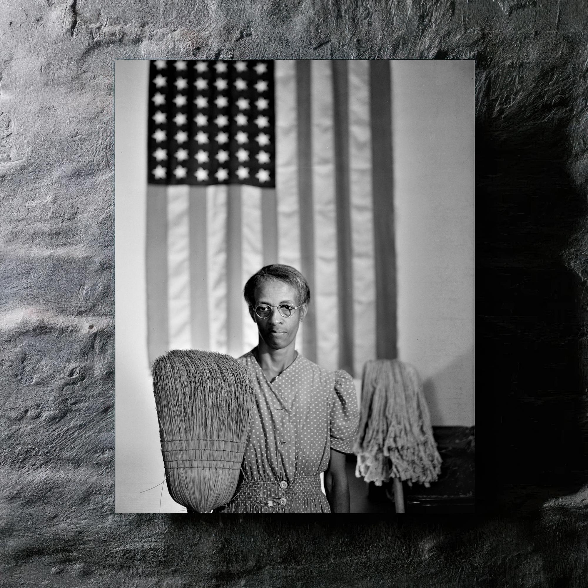 Gordon Parks' "American Gothic" arrests you with a steady, unflinching stare—equal parts dignity and quiet protest that folds complex history into a single, unforgettable moment.