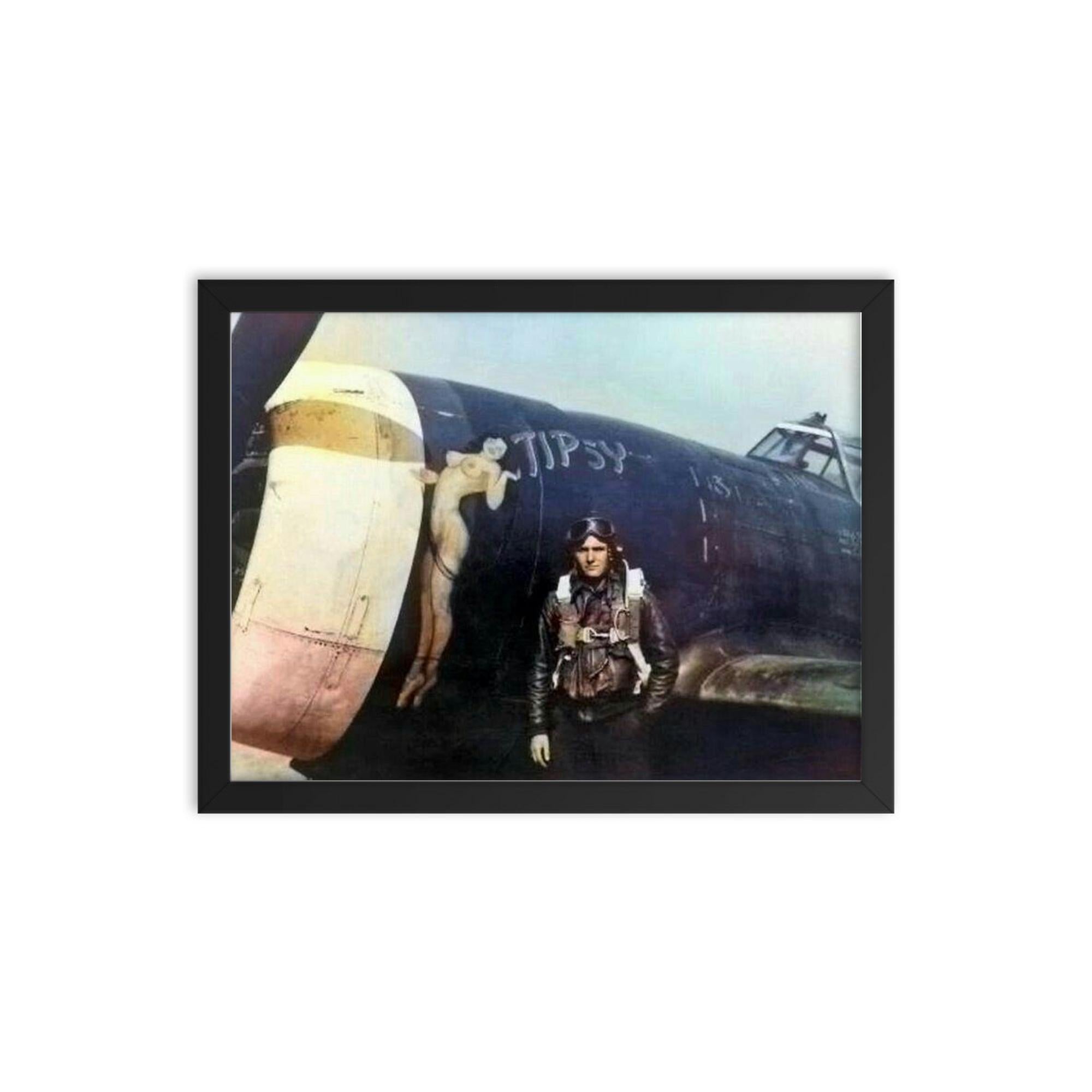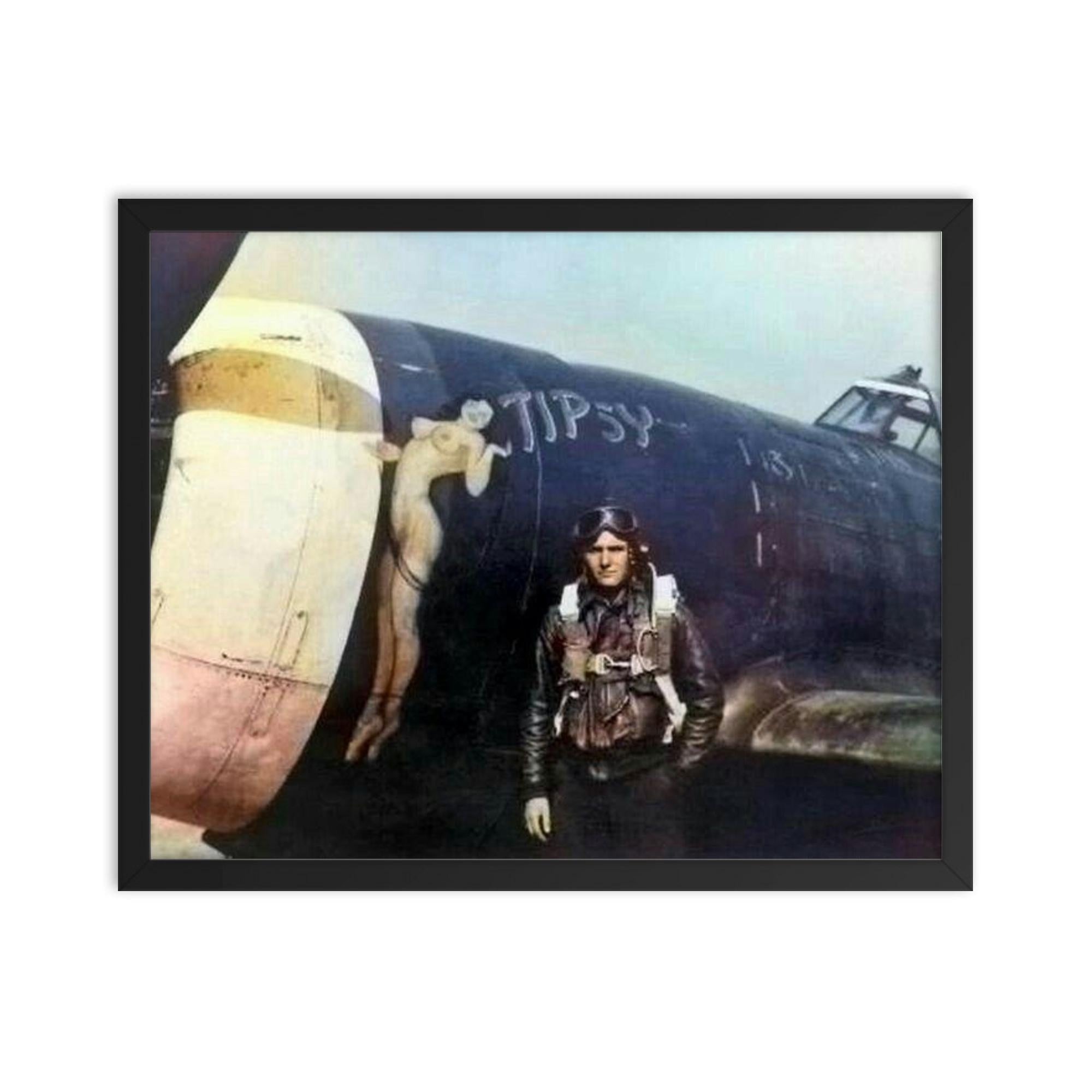 Make your room soar—order your framed print of "American Pilot with P-47 Thunderbolt 'Tipsy' Featuring Pin-Up Art" today and own a bold conversation piece you'll treasure for years.