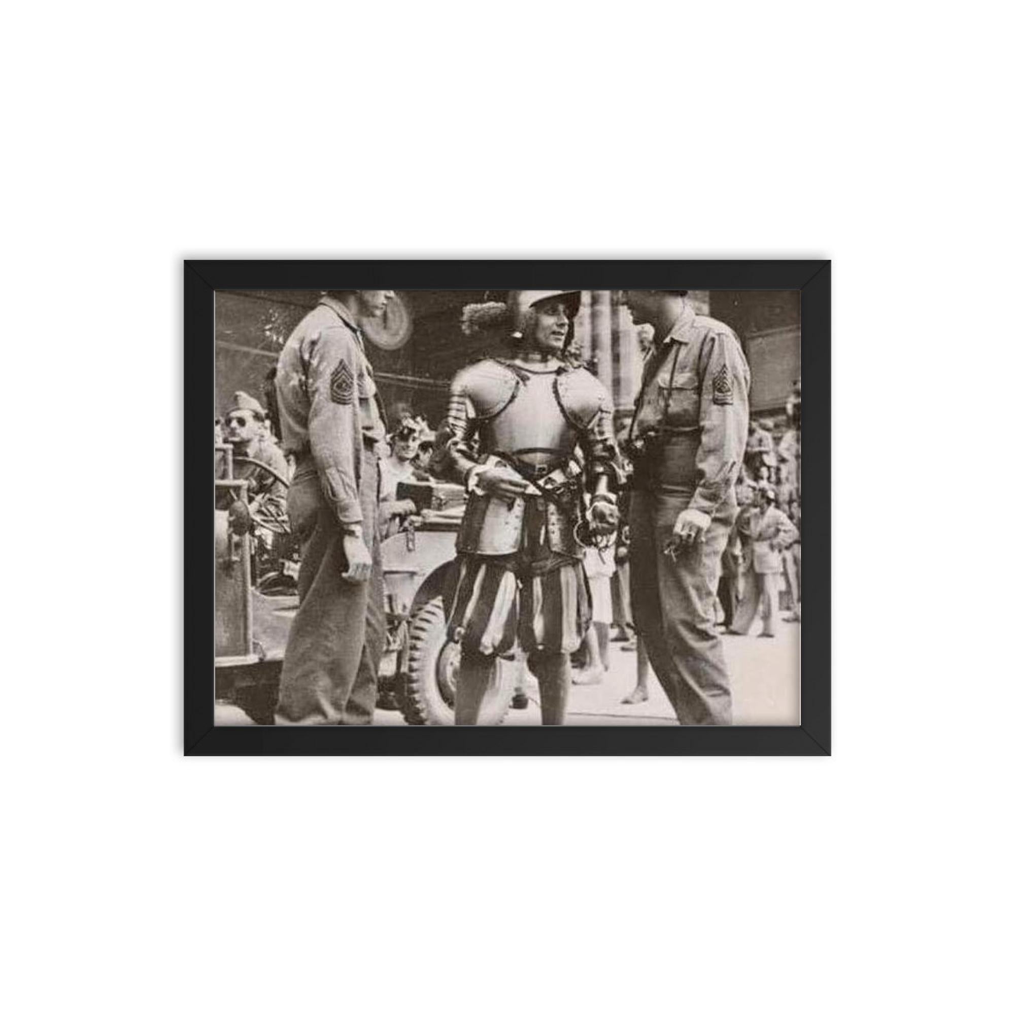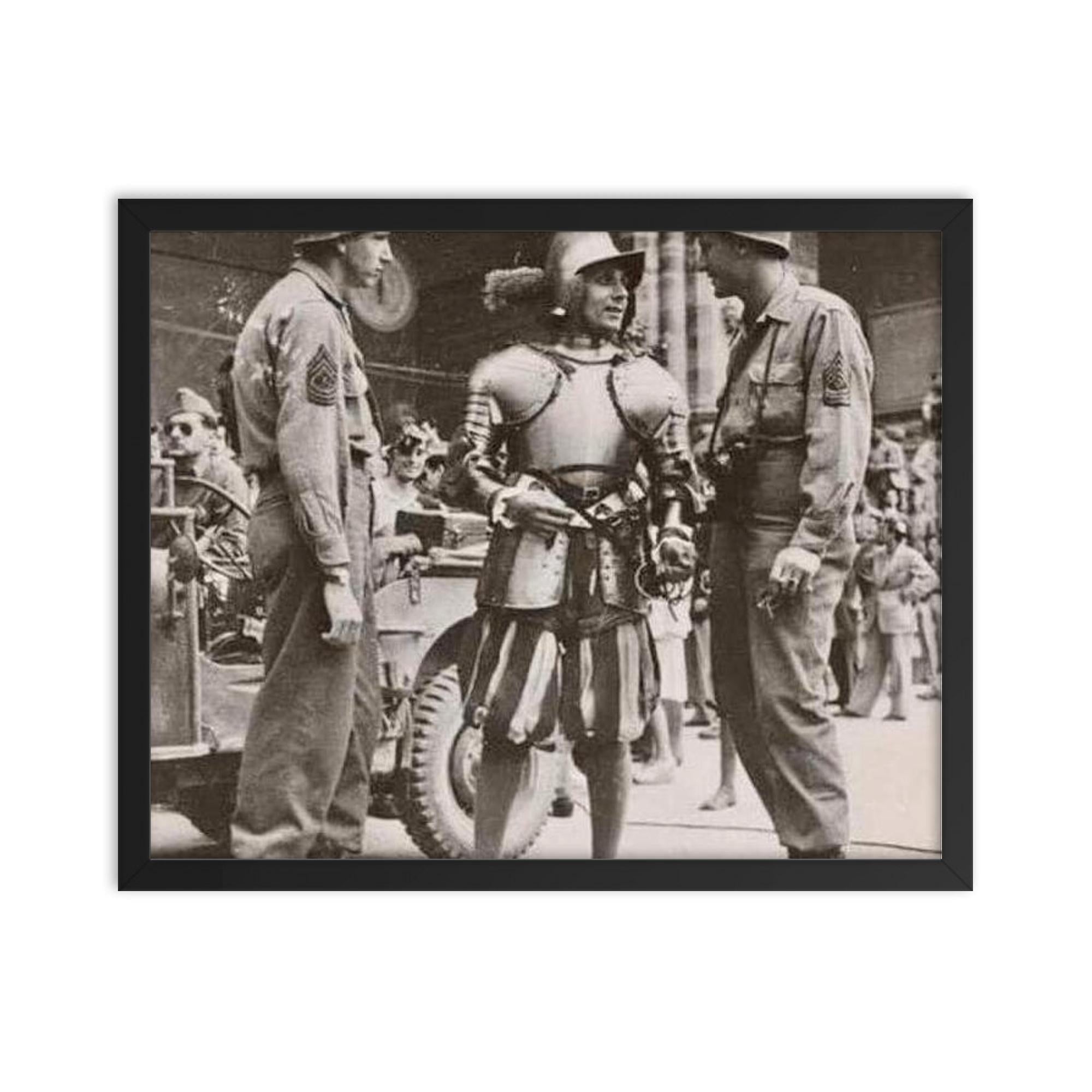 Transform your space with a timeless snapshot of history—order your American Soldiers Conversing with a Swiss Guard in the Vatican, 1944 framed print today and make your walls come alive with the stories that shaped our world.