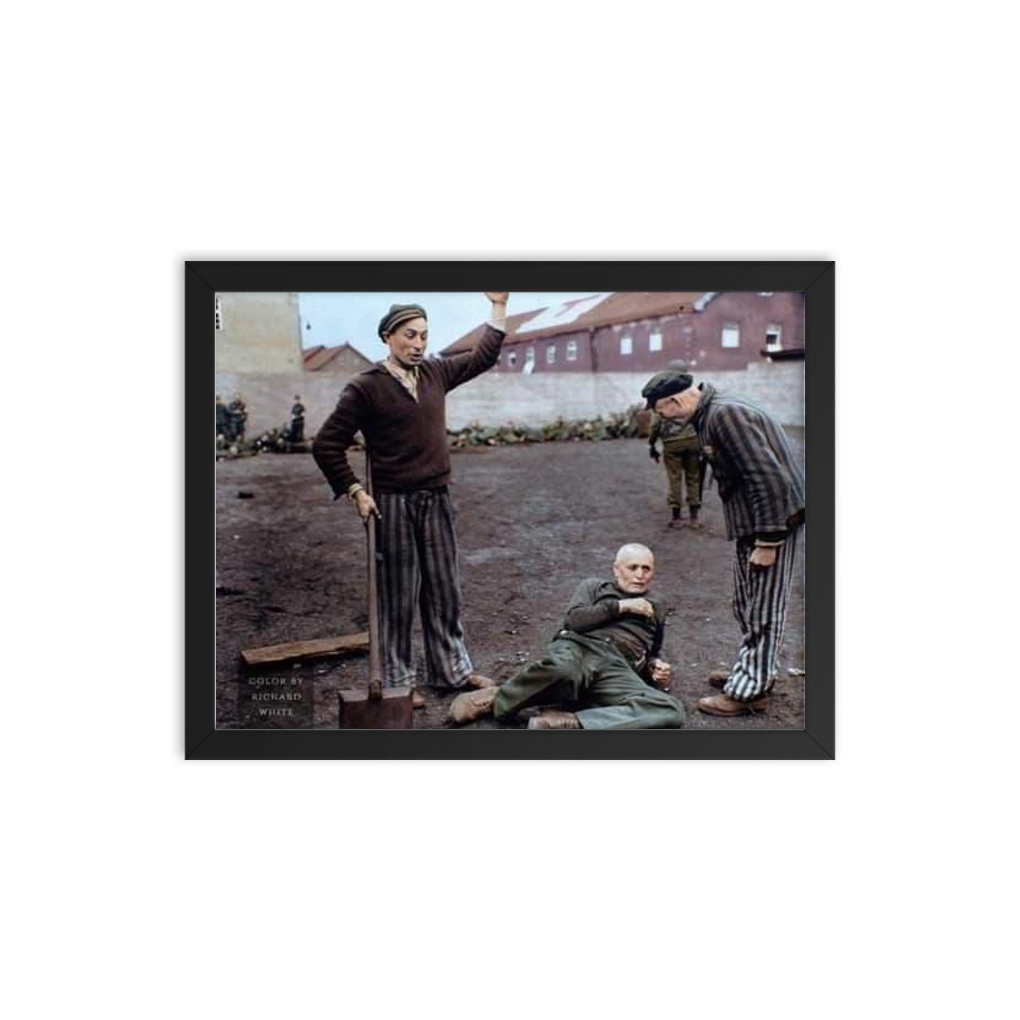 Step into a powerful moment of history with this framed print: An American Soldier Observing Dachau Prisoners Preparing to Execute an SS Guard, April 29, 1945.