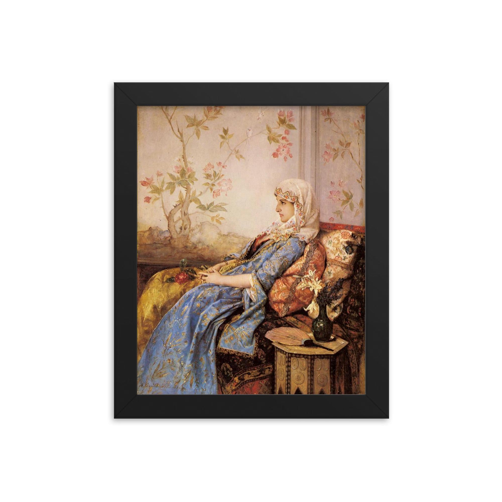 Elevate your space with timeless elegance—discover the allure of our framed print of An Exotic Beauty in an Interior by Auguste Toulmouche, 1883.