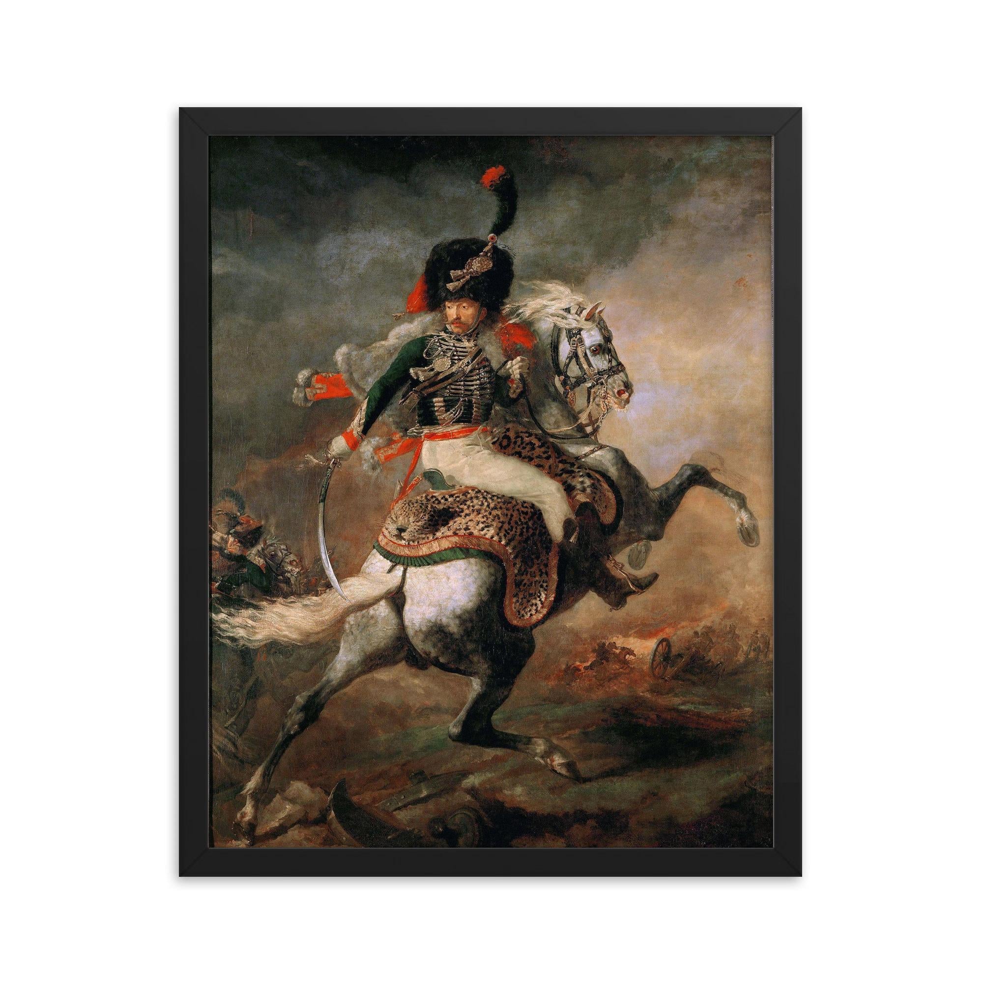 Ignite your space with the drama and grandeur of art history—introducing your new centerpiece: a stunning framed print of "An Officer of the Imperial Horse Guards Charging" by Théodore Géricault (1812).