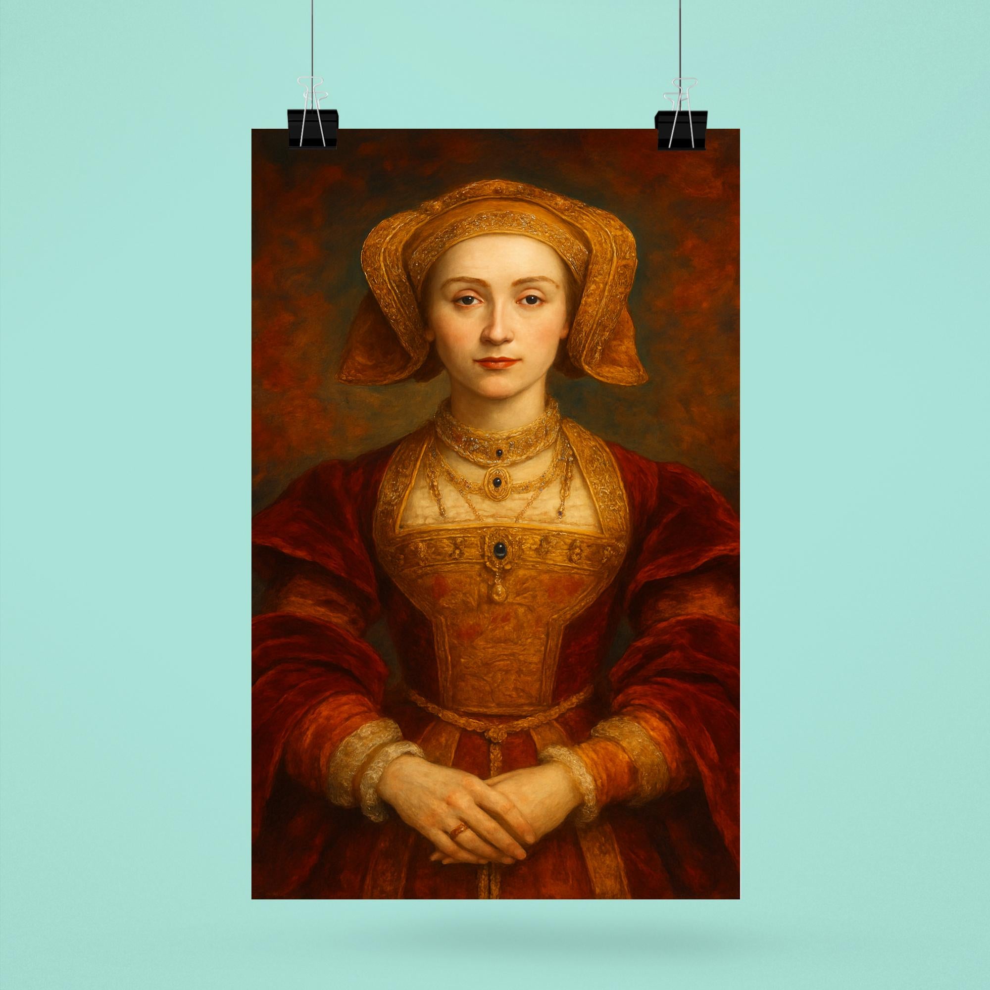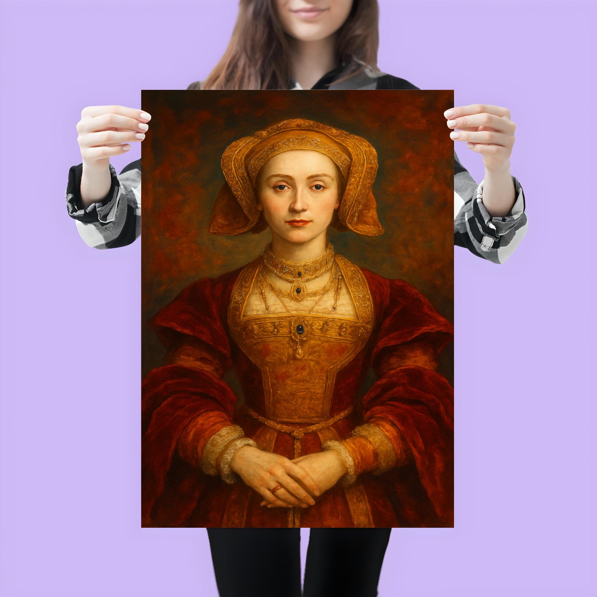 Celebrate a remarkable figure of Tudor history with this stunning Anne of Cleves poster. Capturing her poised elegance and quiet strength, it’s a timeless tribute to the queen who played a pivotal role in England’s royal tapestry. Perfect for history enthusiasts and art lovers alike, this piece brings a classic touch of regal sophistication to any space.