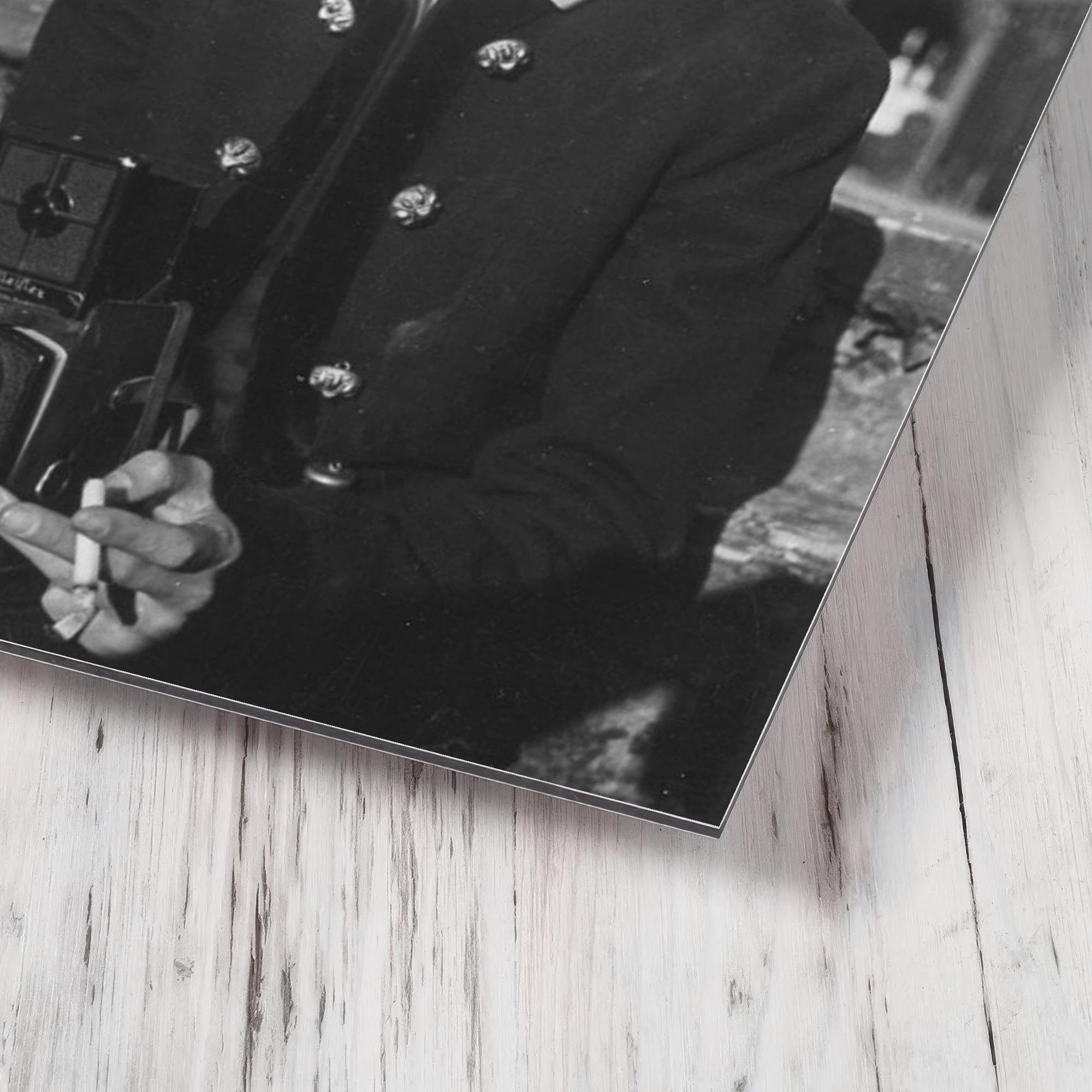 This metal print slips that reach into your space, a small, unpretentious reminder to look closer and carry a bit of her stubborn, searching presence with you.