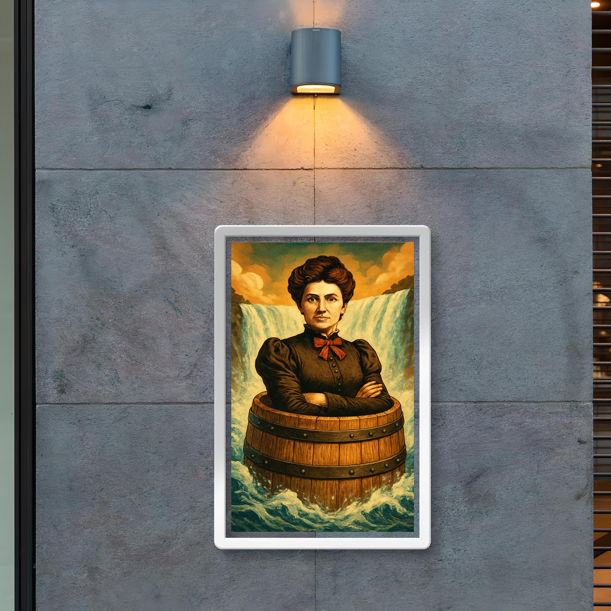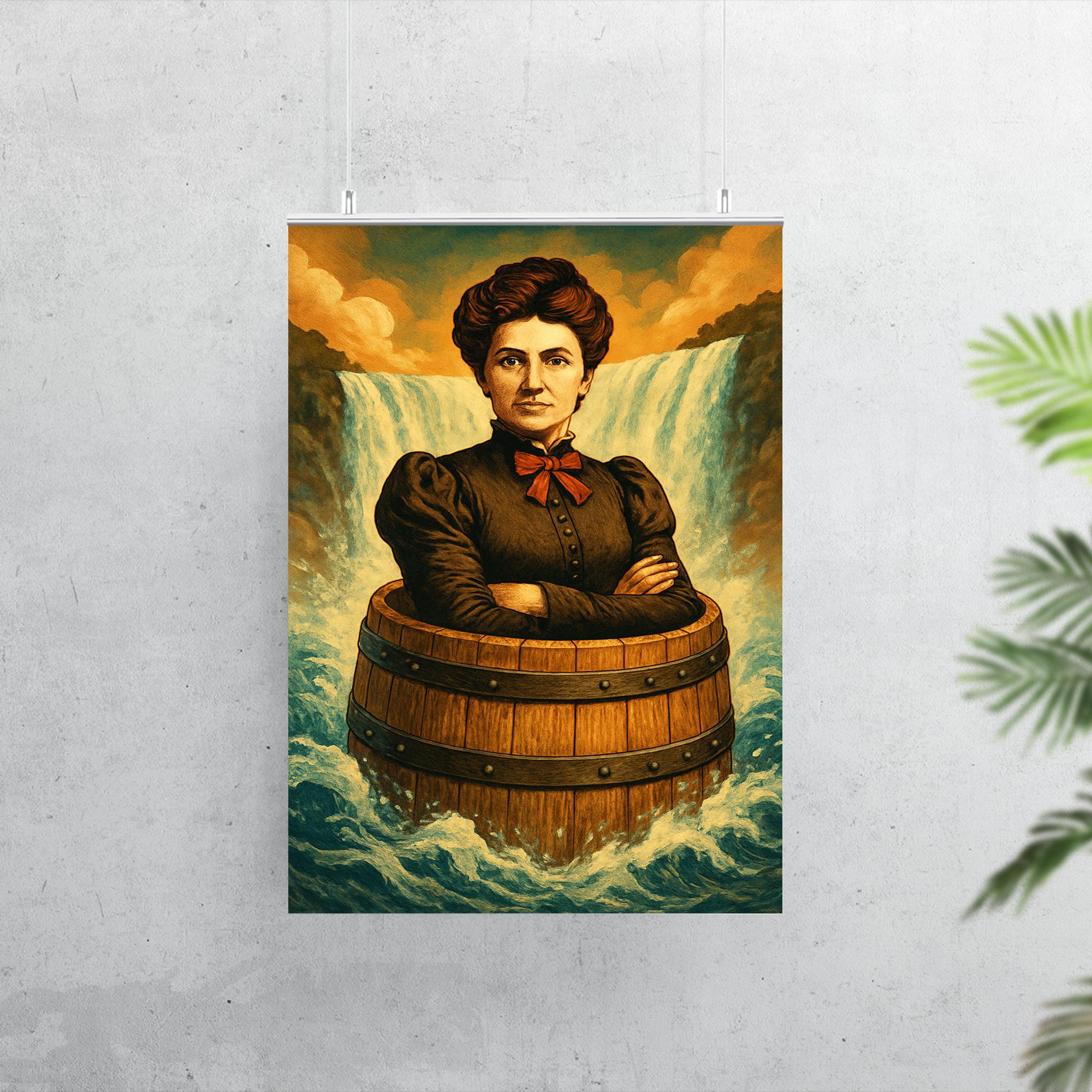 Celebrate daring spirit and historic bravery with this striking poster of Annie Edson Taylor, the first person to survive a plunge over Niagara Falls in a barrel. Perfect for enthusiasts of incredible feats and timeless courage, this piece captures the essence of an unforgettable pioneer who made history with bold determination. A powerful tribute to fearless adventure, it inspires anyone who dreams of pushing limits and defying odds.