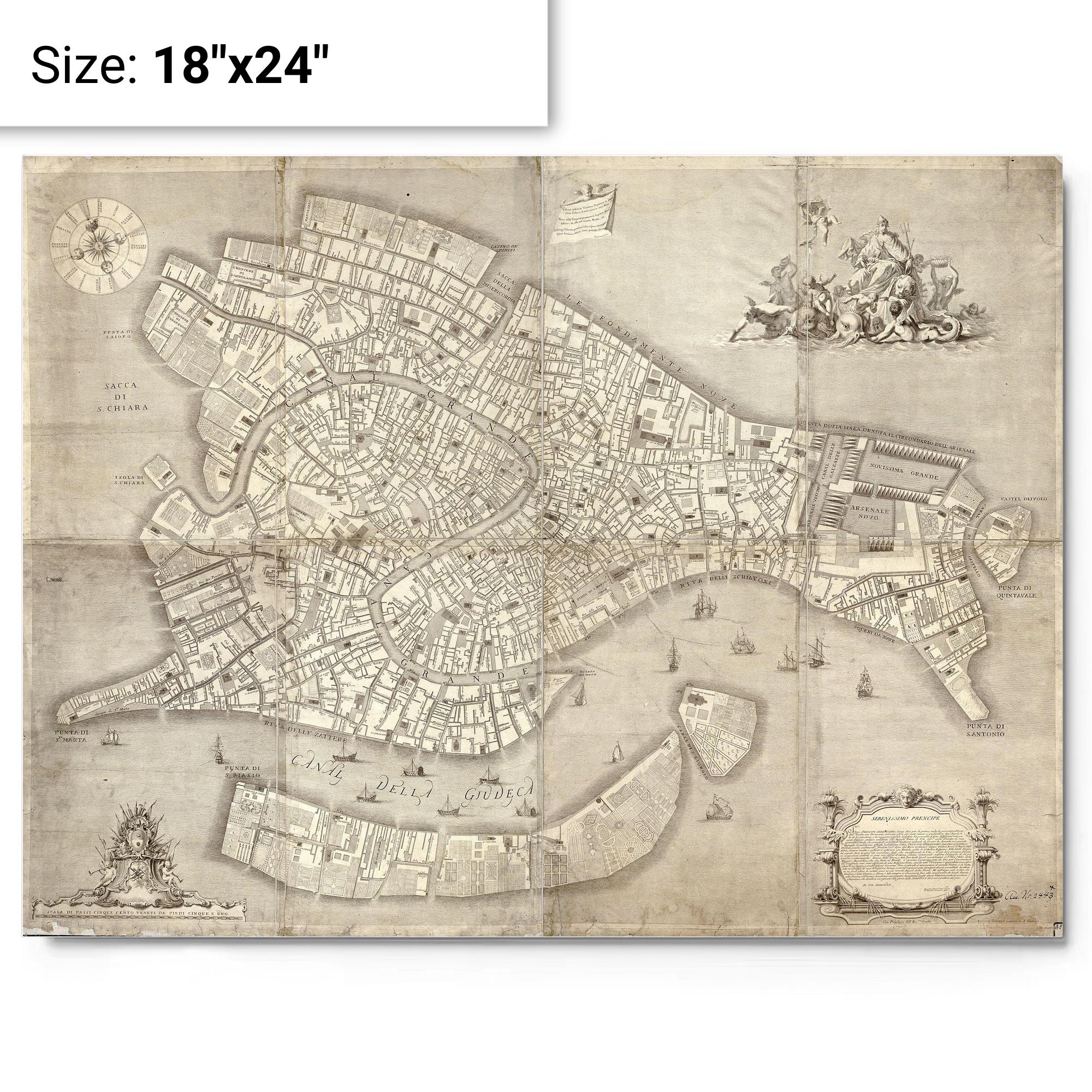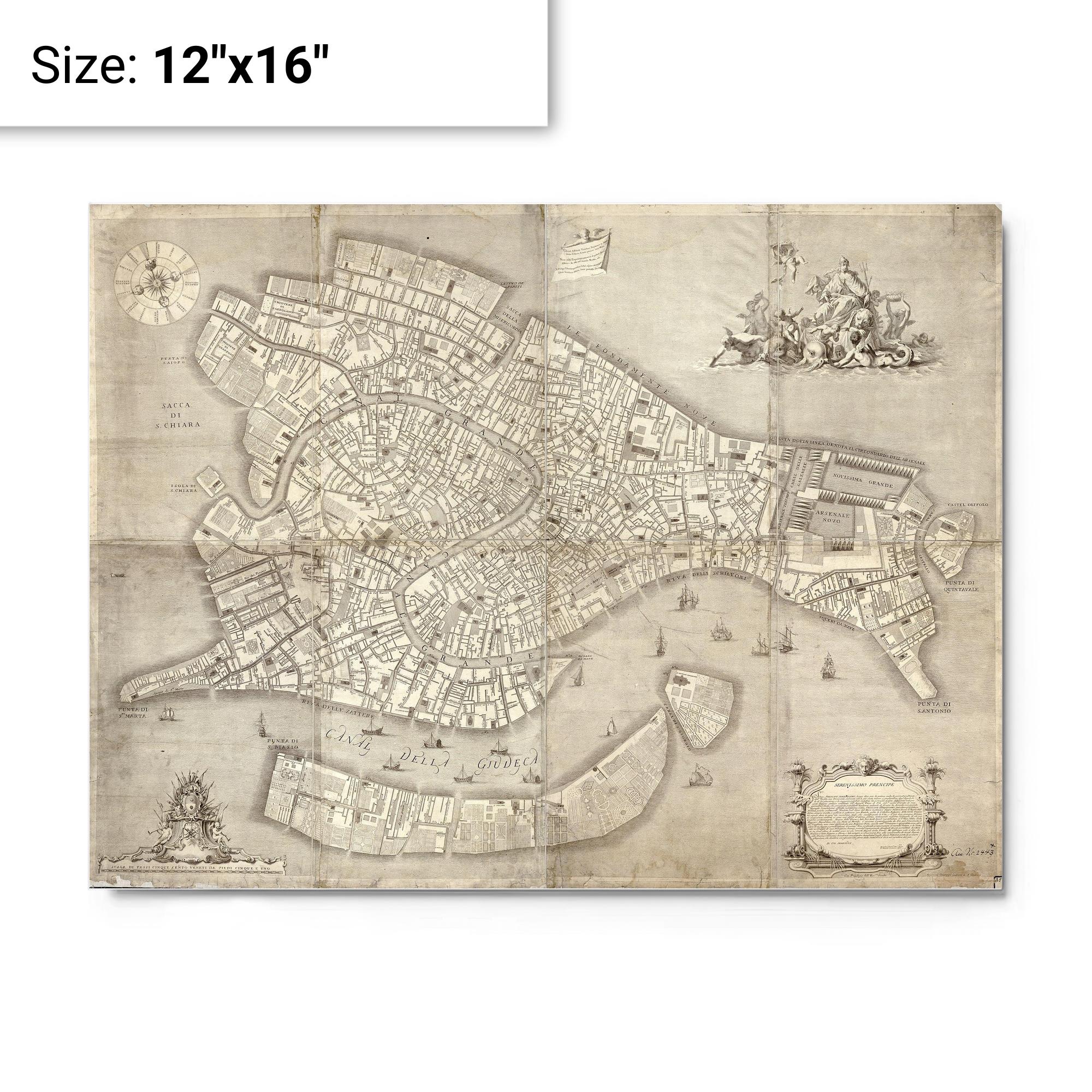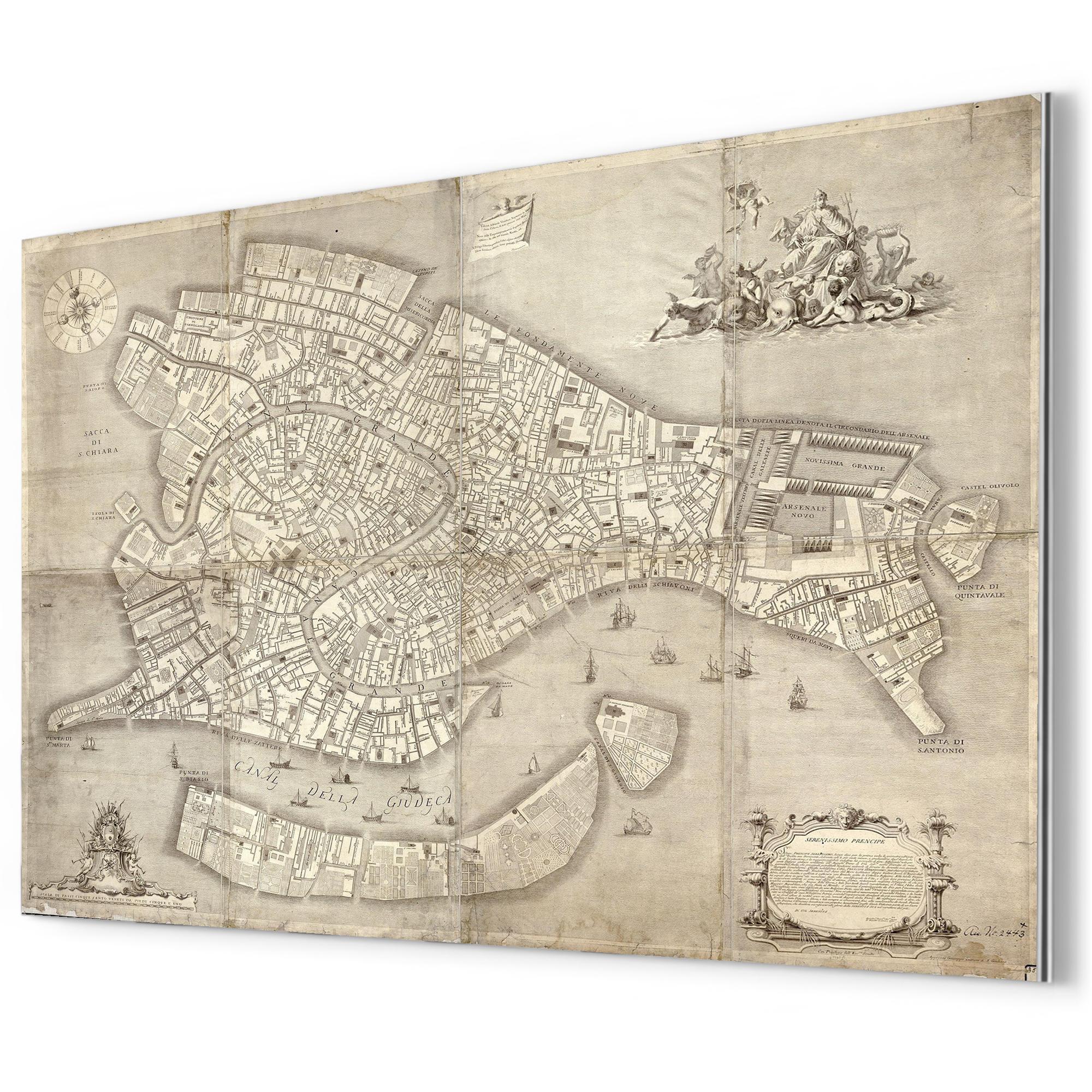 Antique Venice 1729 Map Metal Print — Premium Aluminum Vintage Nautical Wall Art