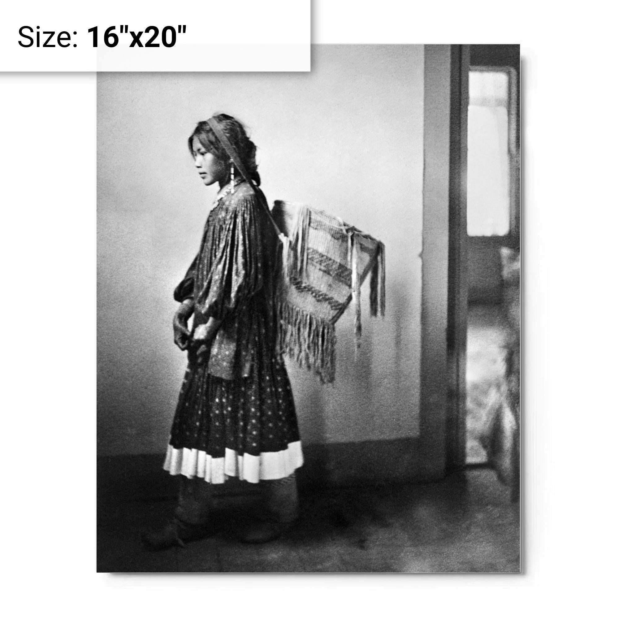 Apache Girl with Basket Metal Print — Gallery-Quality Aluminum Wall Art, Ready-to-Hang Native American Portrait