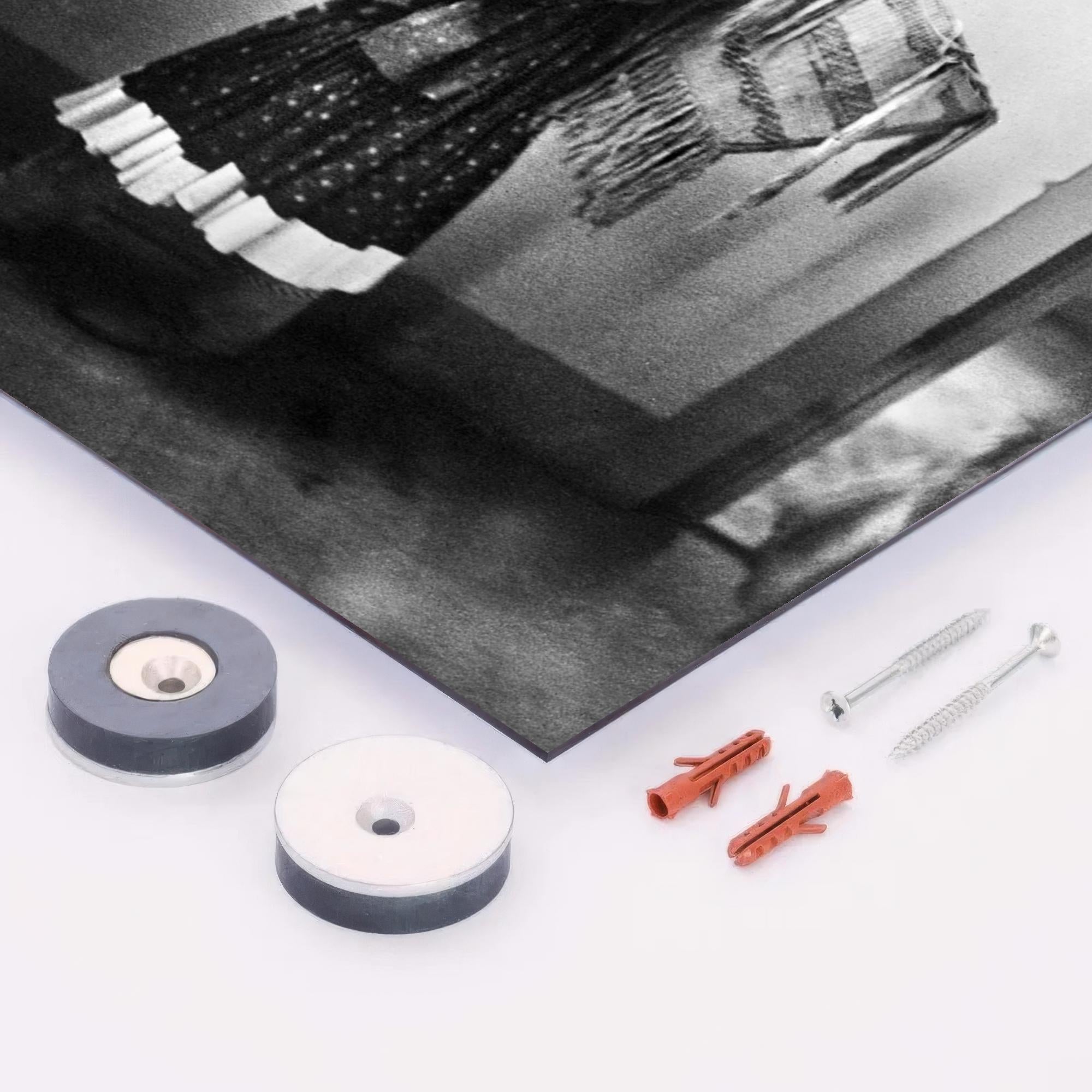 Your new metal print arrives ready to hang, creating a stunning "floating" effect right out of the box. It includes a complimentary, pre-installed mounting system—a magnet, hanger or secure French cleat—selected by our lab to best suit its size, ensuring a gallery-quality presentation.