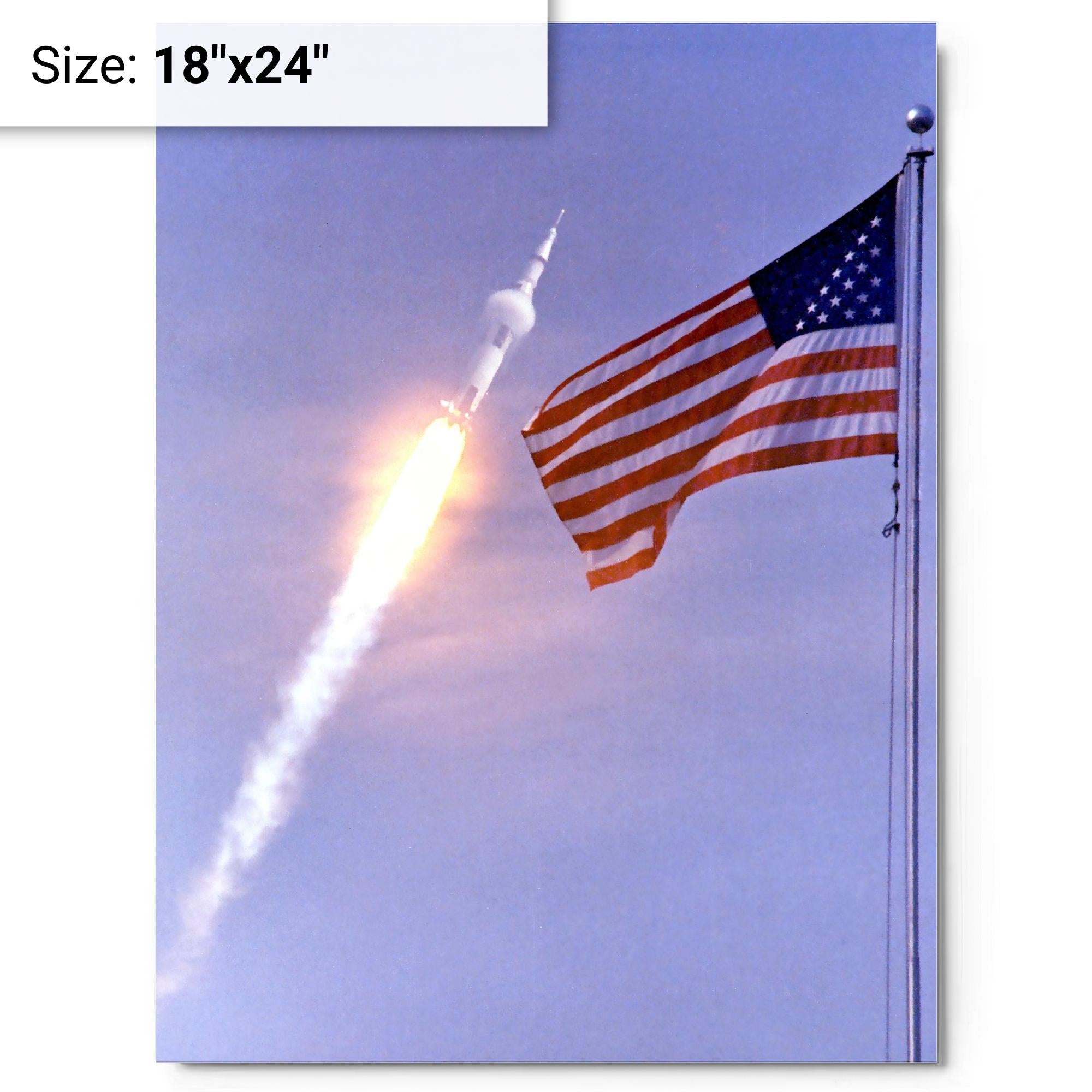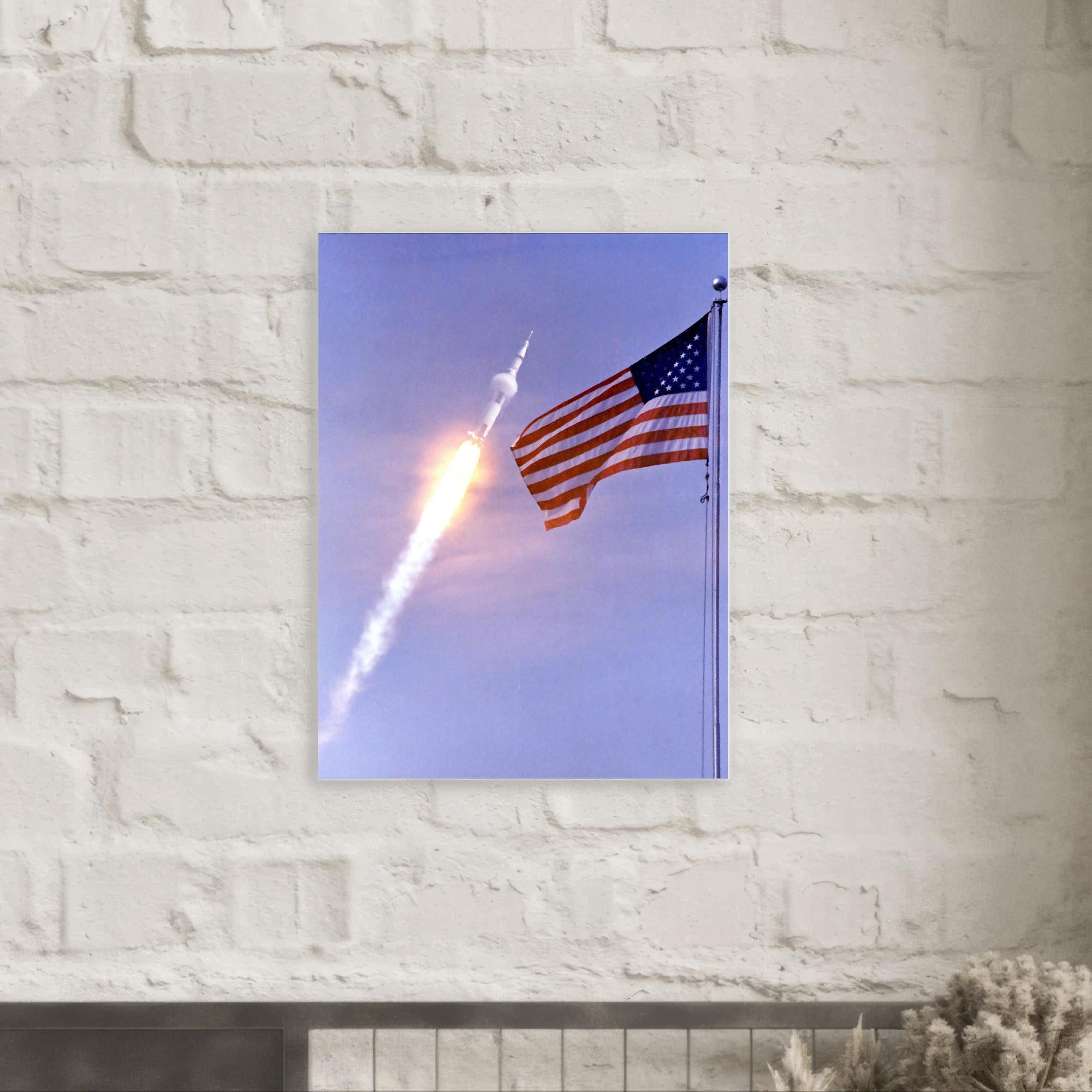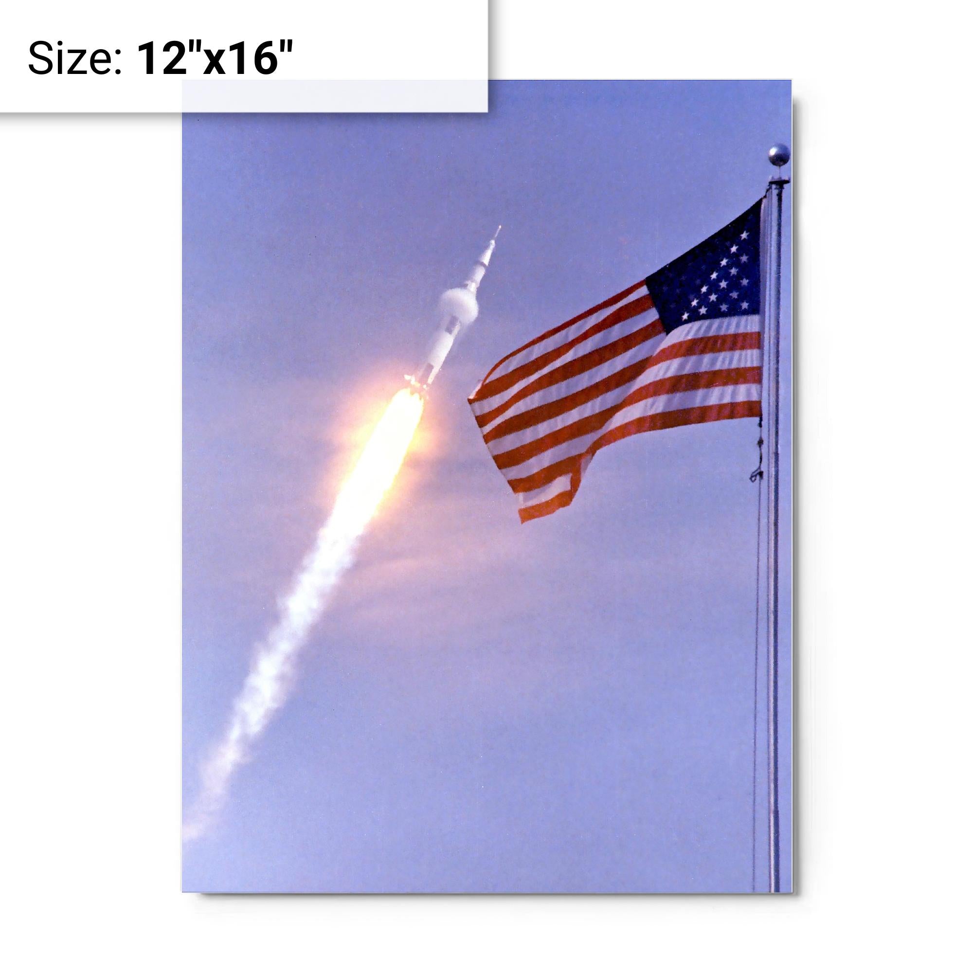 This metal print of the Apollo 11 launch freezes that breathtaking instant when a plume of fire and hope tore skyward.