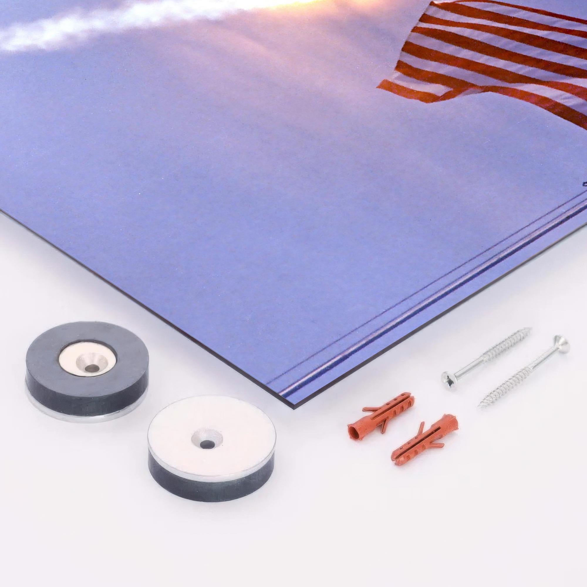 Your new metal print arrives ready to hang, creating a stunning "floating" effect right out of the box. It includes a complimentary, pre-installed mounting system—a magnet, hanger or secure French cleat—selected by our lab to best suit its size, ensuring a gallery-quality presentation.