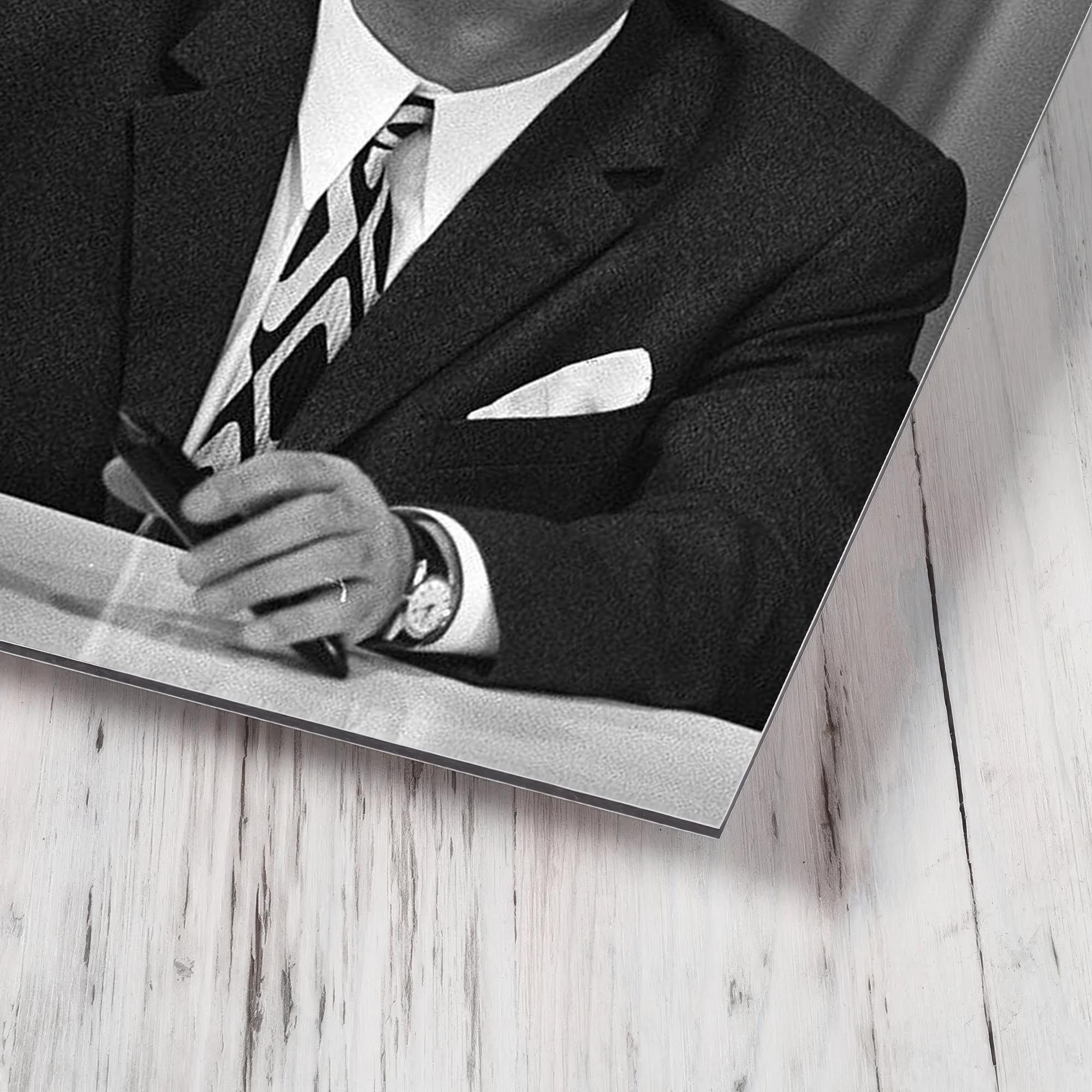 Let this metal print of Aram Khachaturian bring a quietly powerful presence to your space, a reminder of a composer whose music fuses fiery rhythm with deep lyricism.