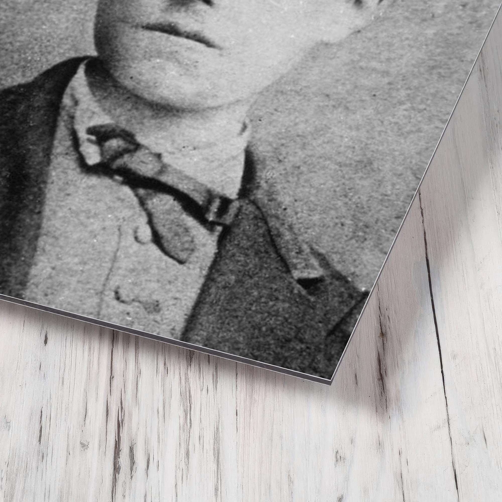 This metal print of Arthur Rimbaud carries the poet’s restless spirit into your space, a quiet emblem of rebellion and wonder.