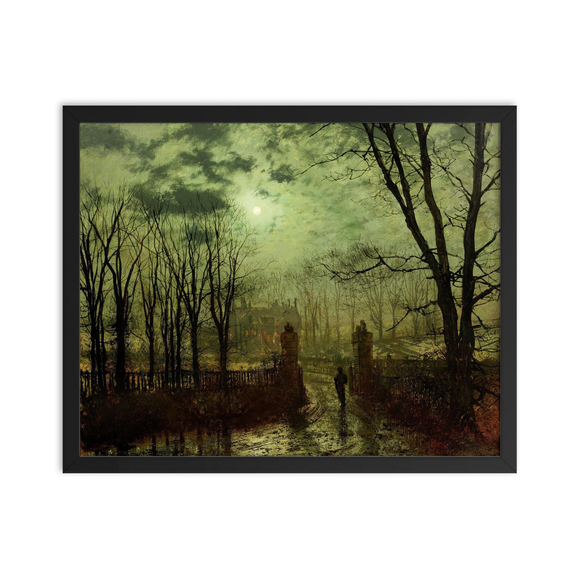 Transform your living space with the timeless elegance of “At The Park Gate” by John Atkinson Grimshaw, 1878—now available as a beautifully framed print that brings classic artistry into your home.