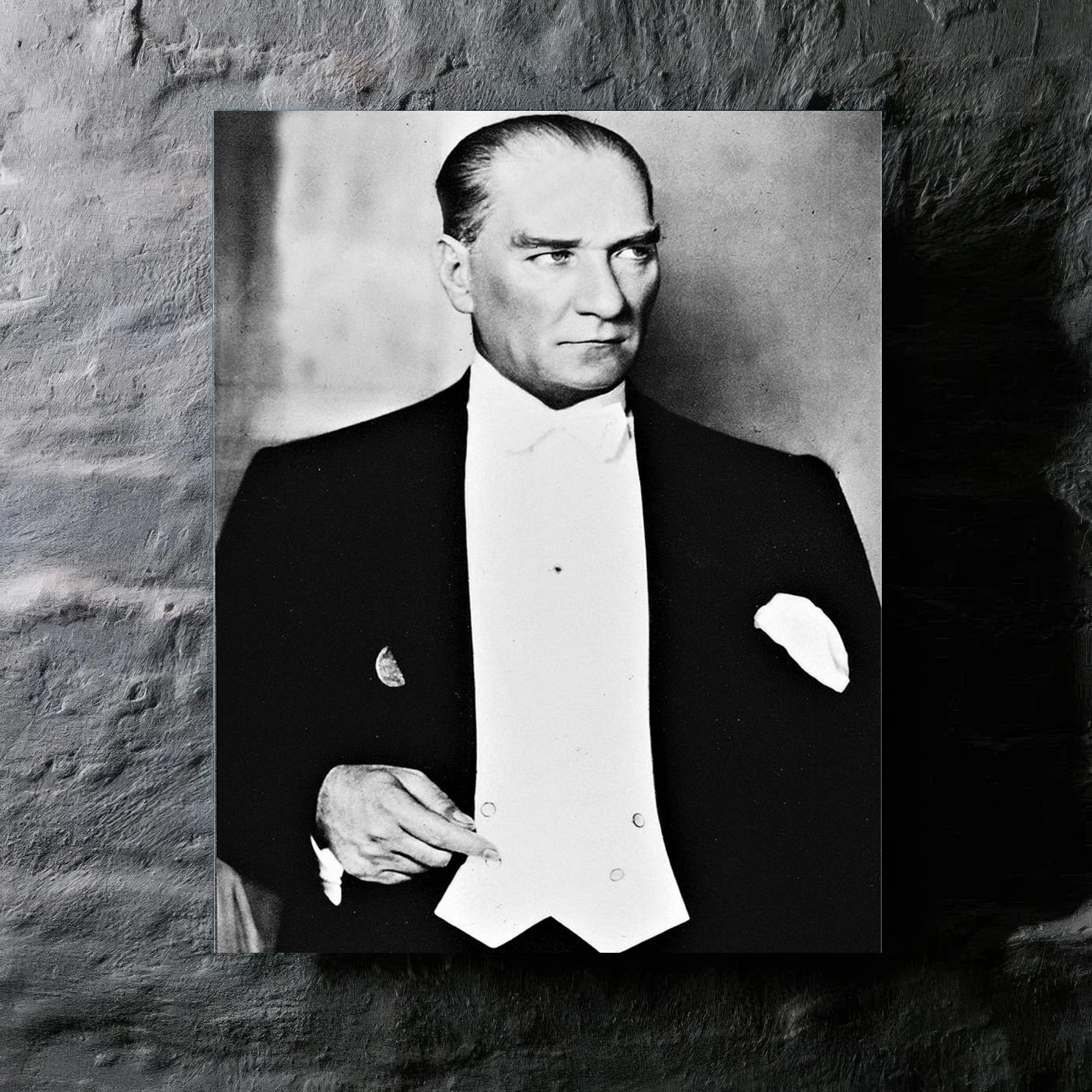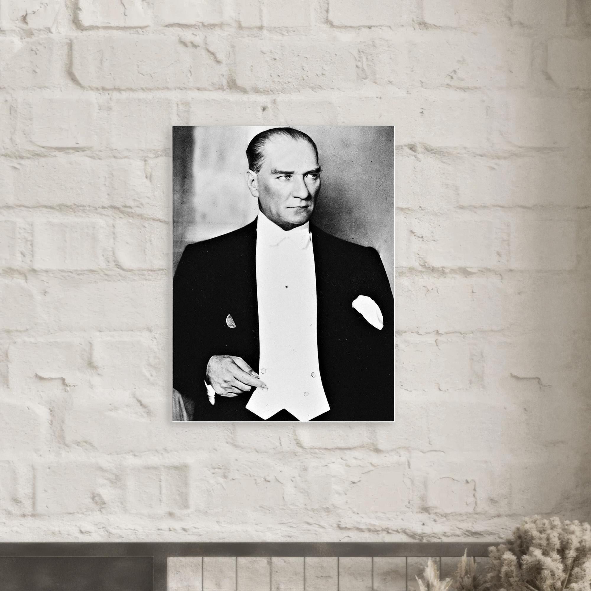 A metal print of Mustafa Kemal Atatürk that carries a quiet authority, inviting reflection on leadership, reform, and the weight of history.