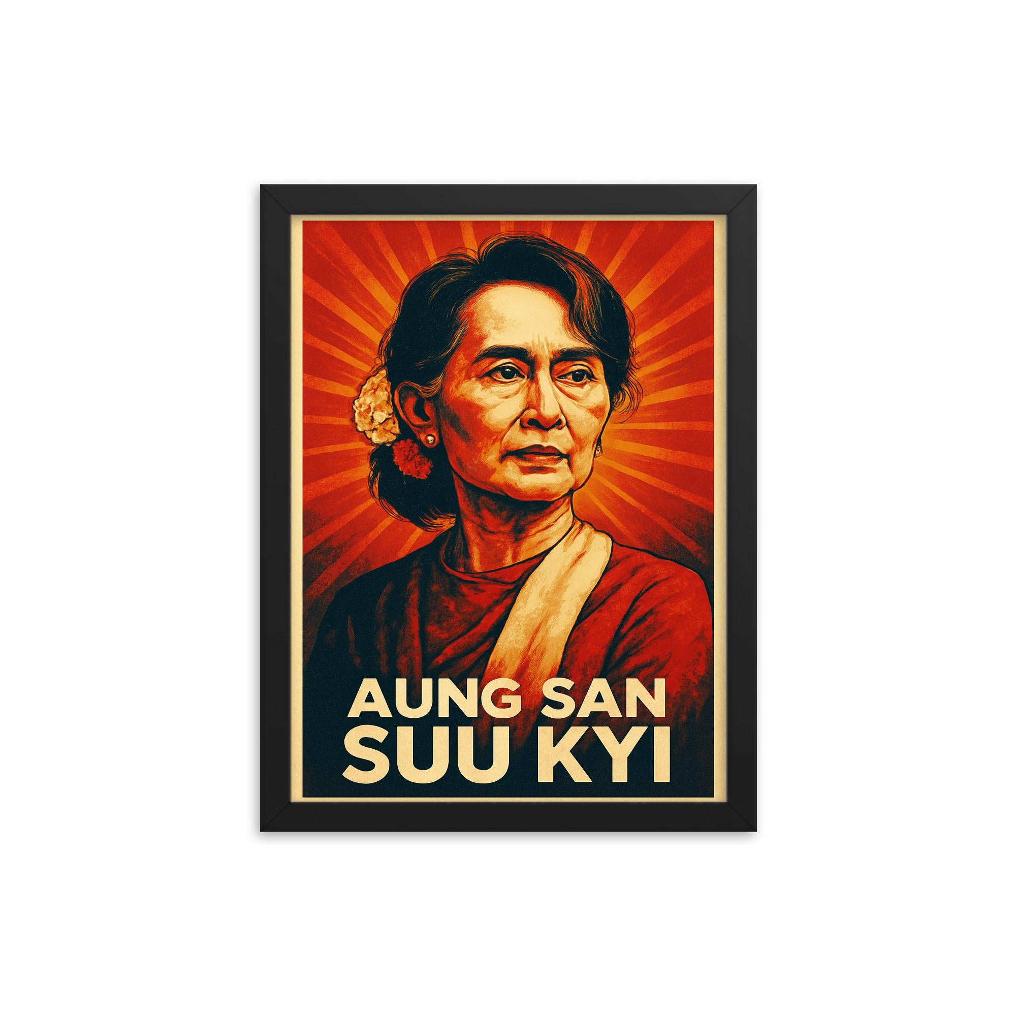 Elevate your space with this stunning framed print of Aung San Suu Kyi, a perfect blend of elegance and artistry for any wall.