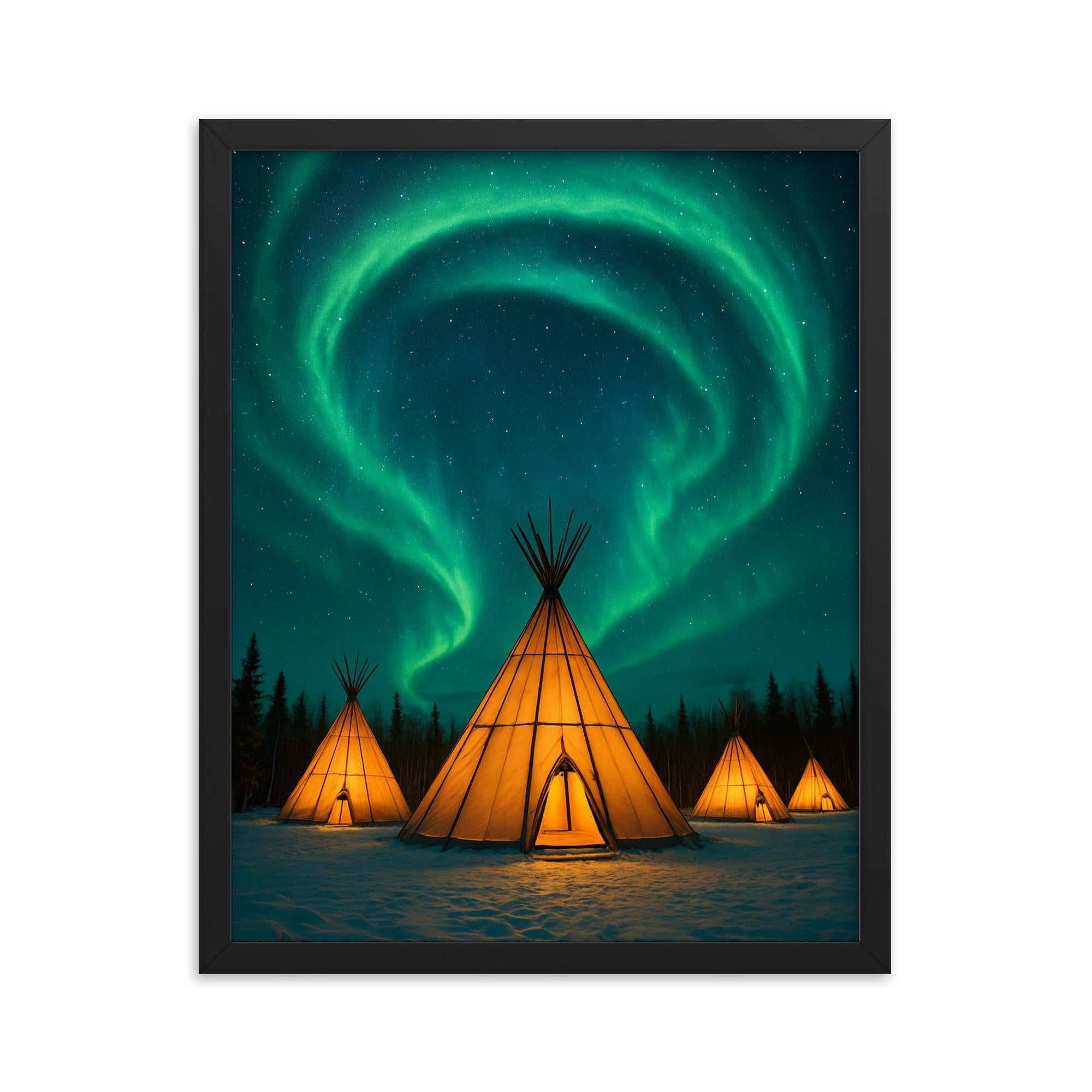 Bring the wonder of the North straight into your space with our exquisitely framed print of Aurora Village in Yellowknife, Canada.