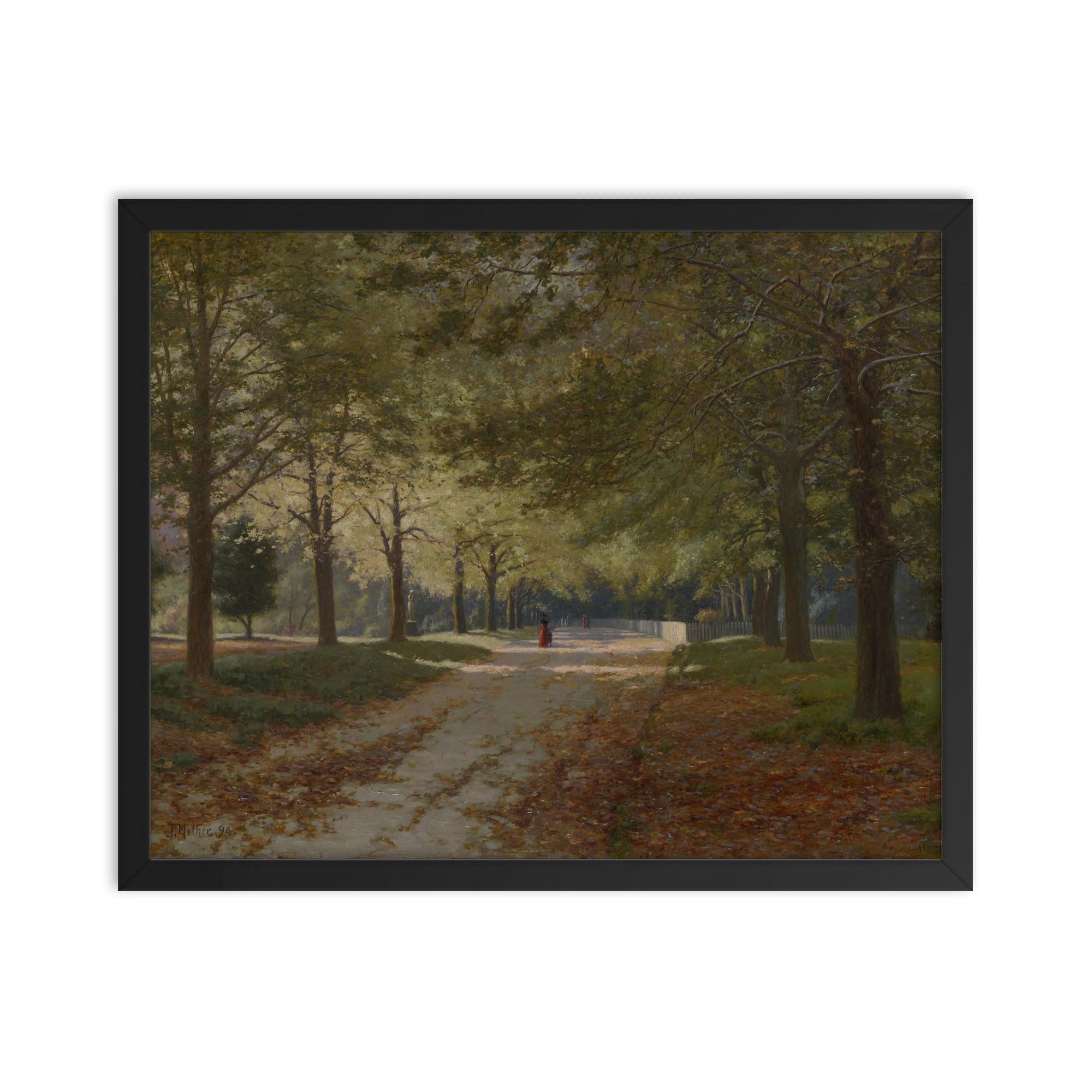 Bring timeless elegance into your space with a framed print of Autumn in the Fitzroy Gardens by John Mather, 1894—a masterpiece of serene beauty and historic Australian artistry.