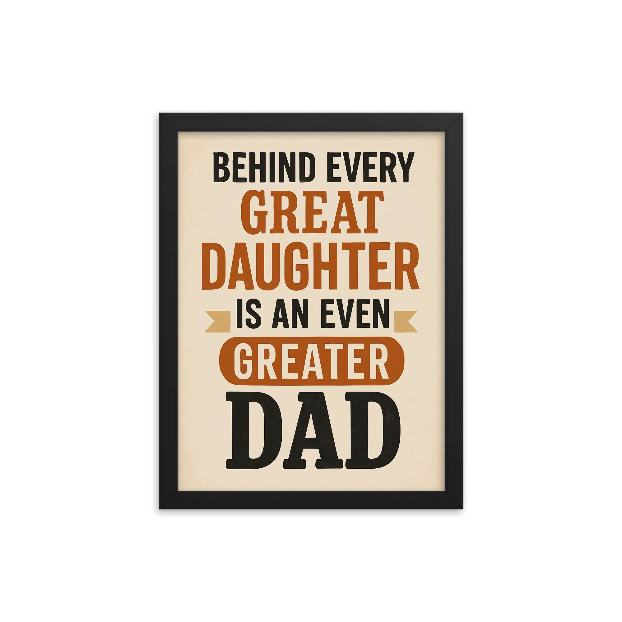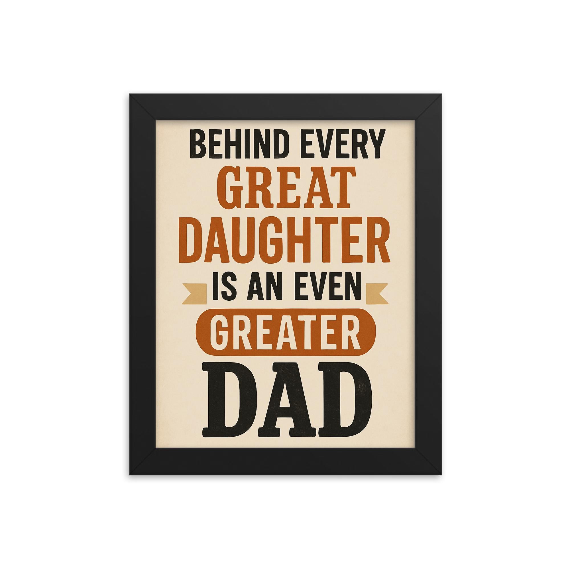 Framed Dad Daughter Wall Art – Heartfelt "Behind Every Great Daughter Is an Even Greater Dad" Print, Perfect Father’s Day Gift Decor