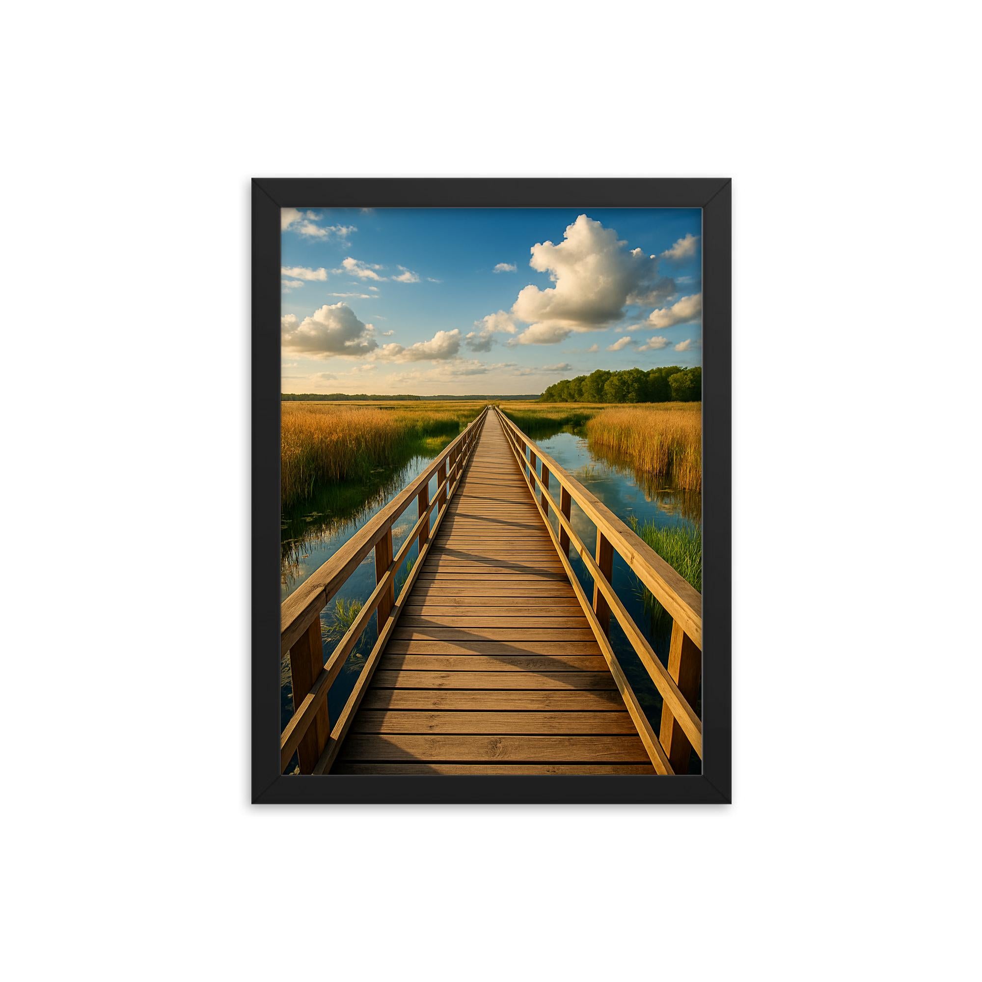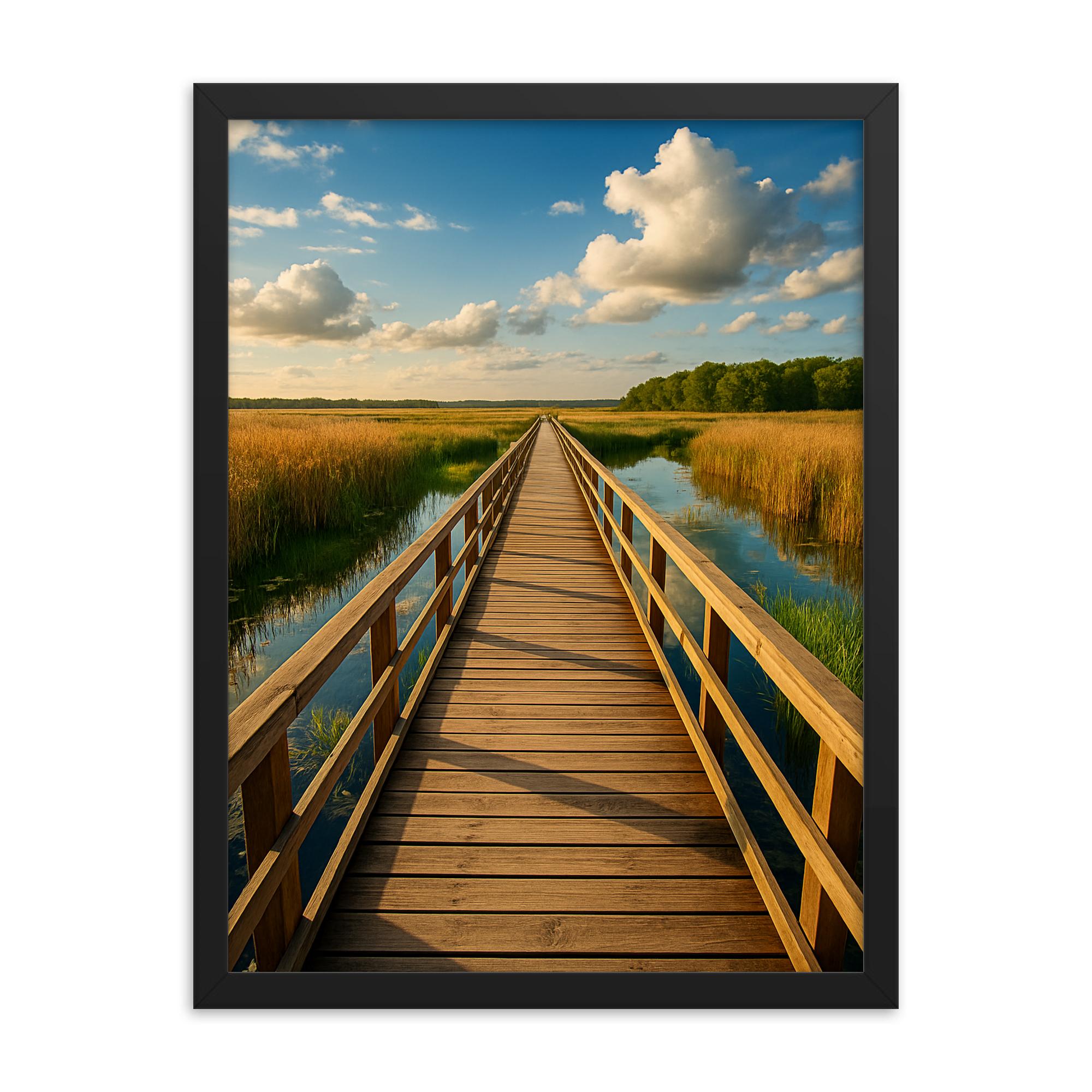 Transform your living space with the serene beauty of the Biebrza Marshes Boardwalk, Poland, expertly captured in this stunning framed print.