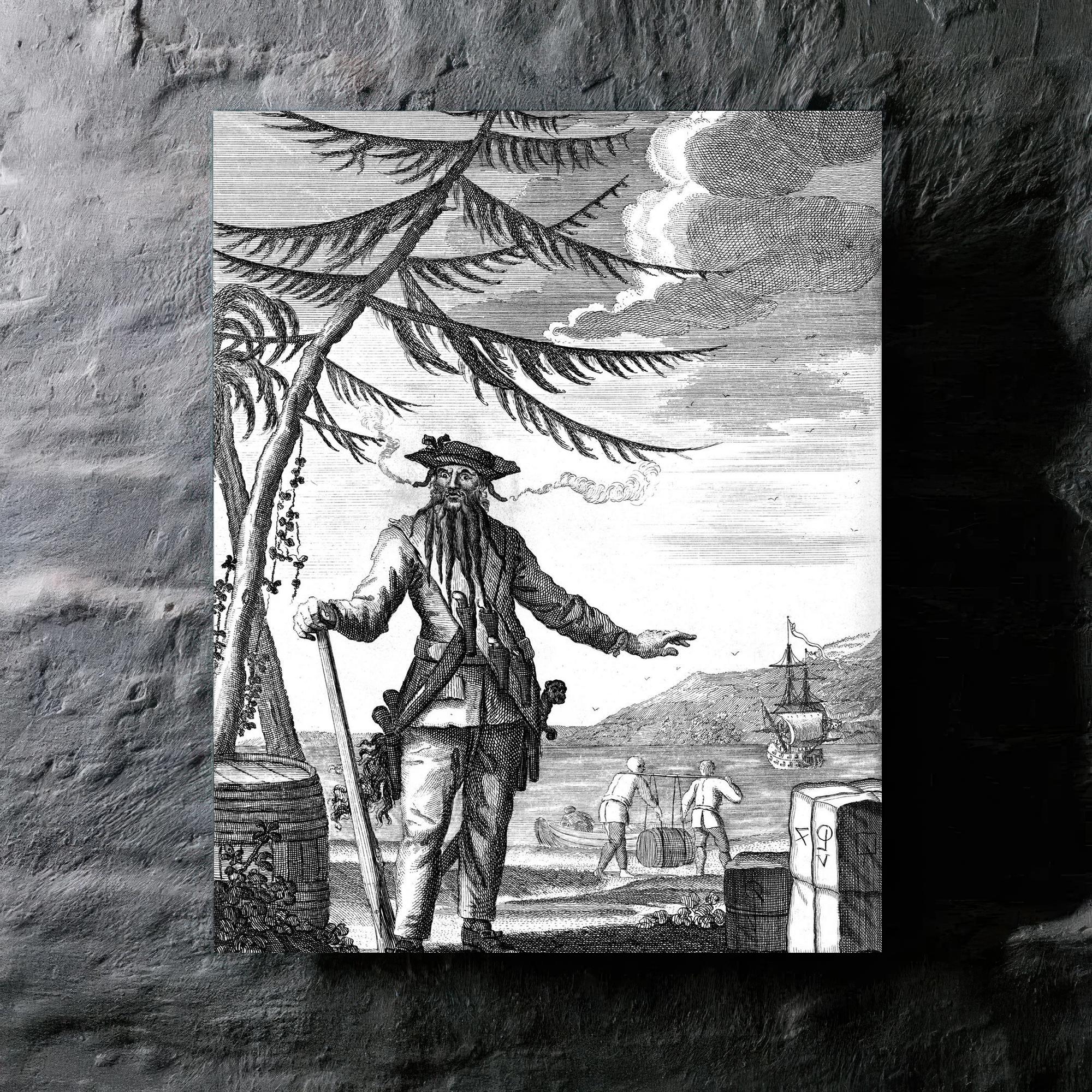 Blackbeard looms like a legend made flesh—sea-salt grit, tangled beard, and a grin that promises trouble.