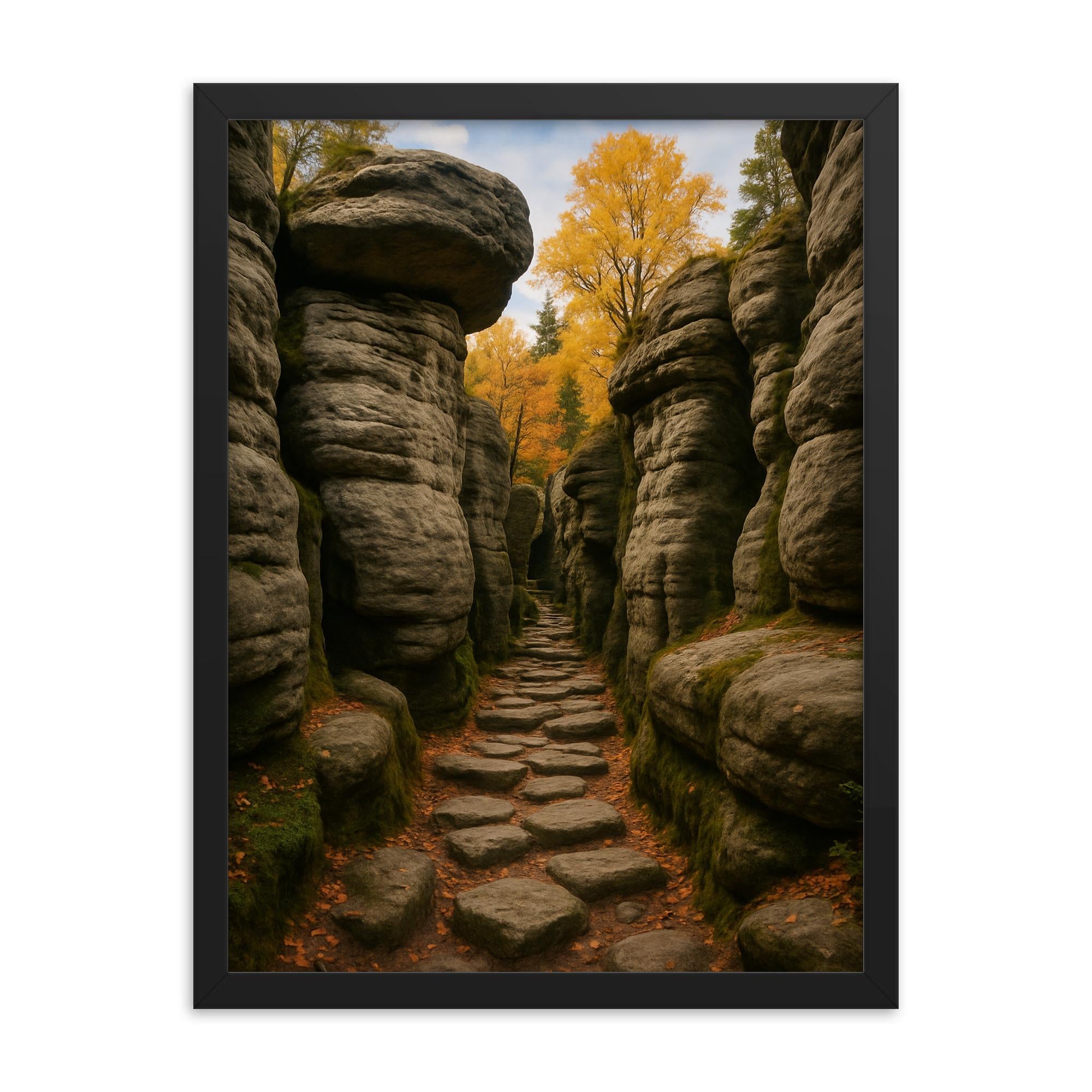 Whether you’re seeking a unique focal point for your home, an inspiring office decoration, or a thoughtful gift for art enthusiasts and travel lovers alike, this Bledne Skaly Errant Rocks framed print captures the serene essence of this iconic Polish landmark.