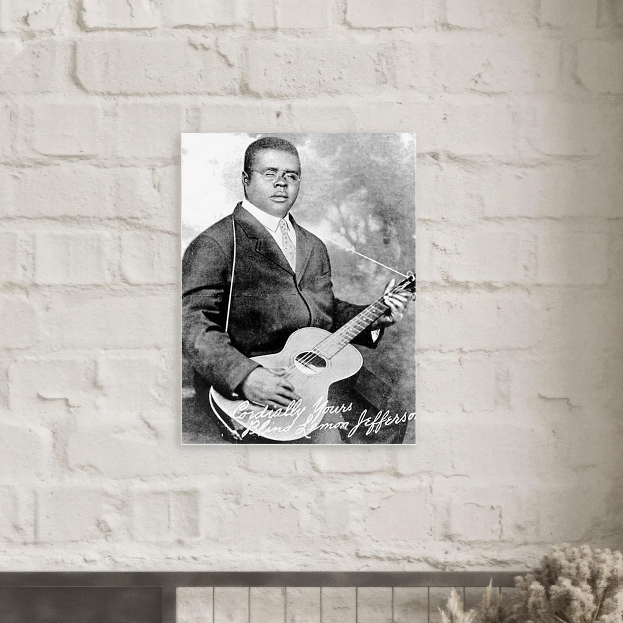 This metal print of Blind Lemon Jefferson brings a quiet, unmistakable presence into a room, a reminder of the man whose music helped shape the blues.