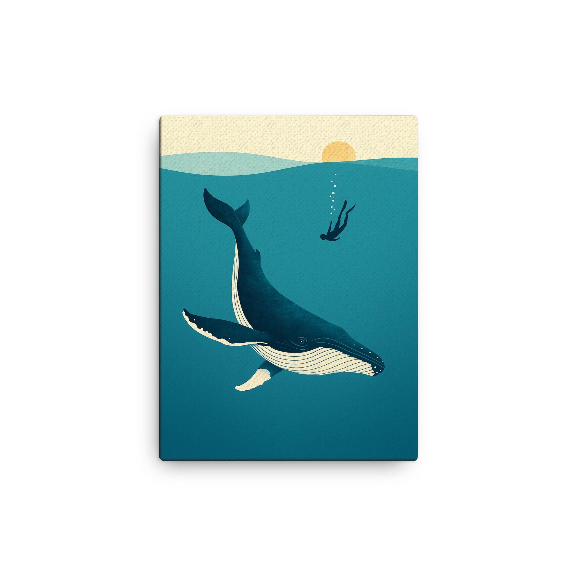 Elevate your walls. Embrace timeless elegance. Own the Blue Whale with Diver Minimalist Art canvas print and bring a touch of sophisticated tranquility into your home today.