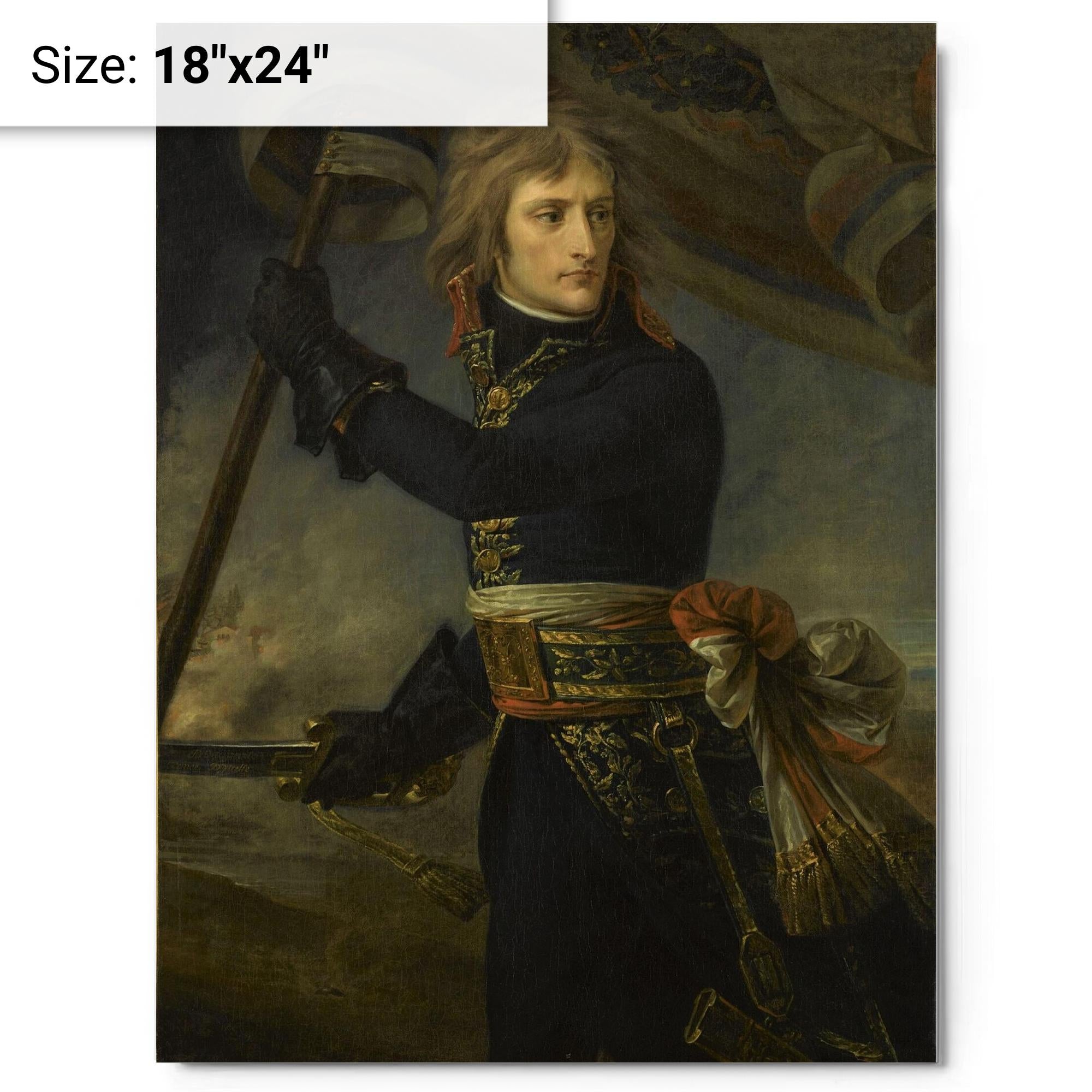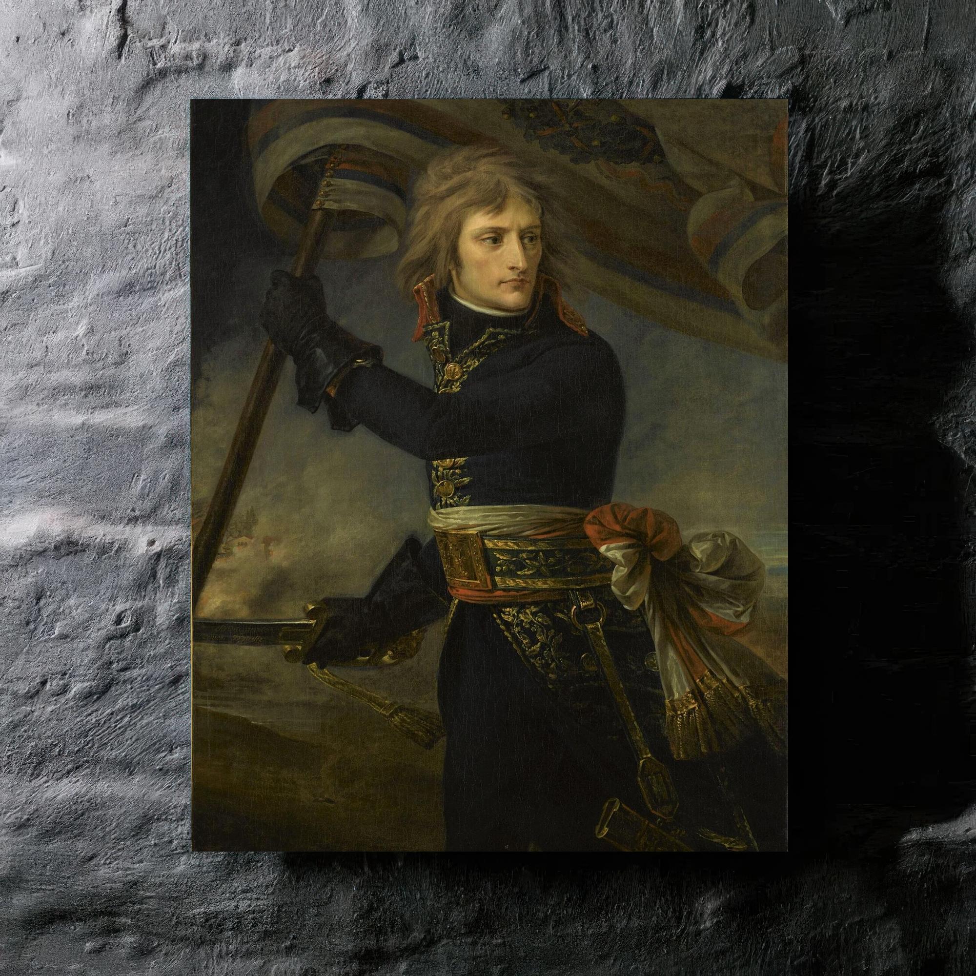 Antoine‑Jean Gros’s Bonaparte at the Pont d’Arcole freezes a fierce, decisive instant — Bonaparte pressing forward onto a smoke‑choked bridge with soldiers and chaos clustered around him.
