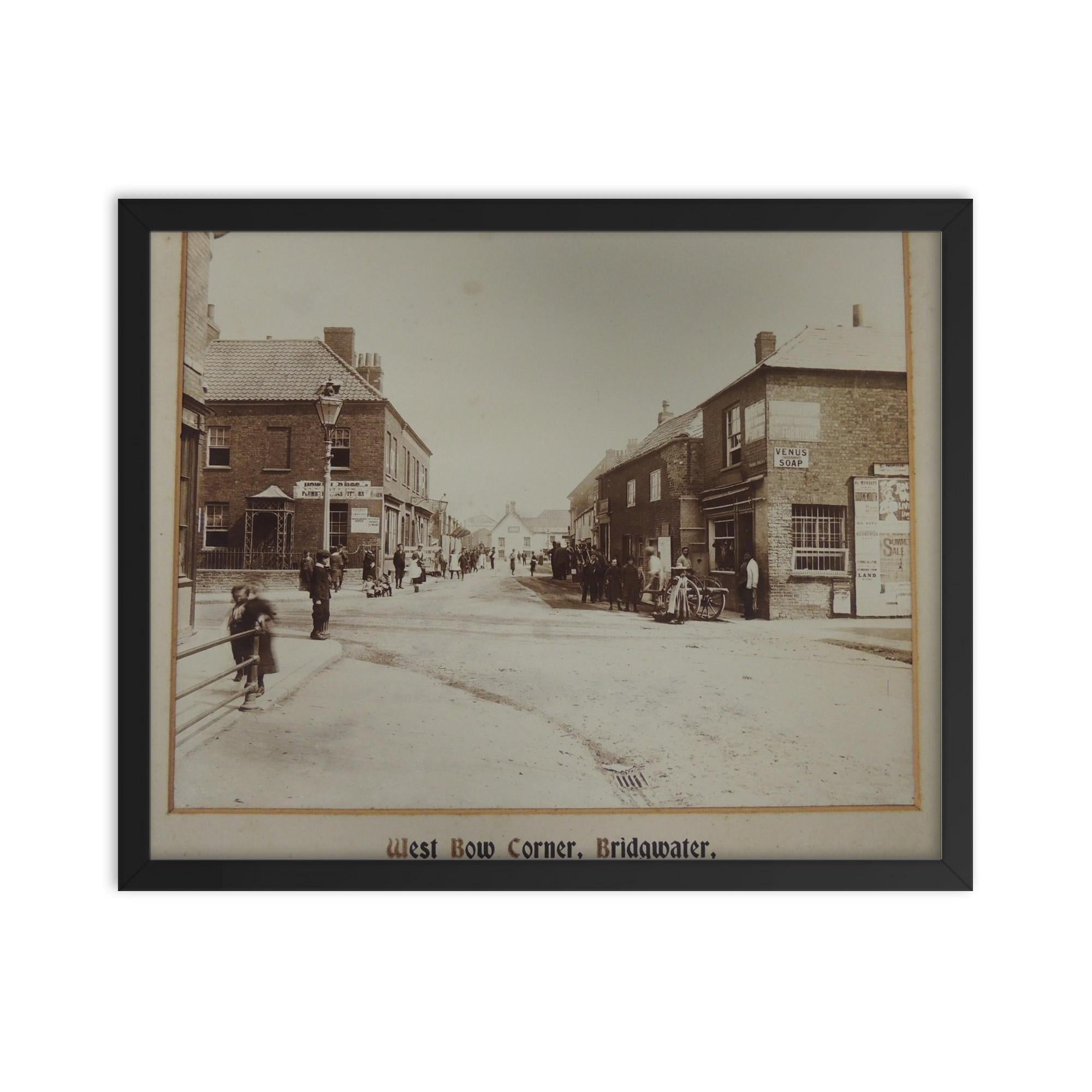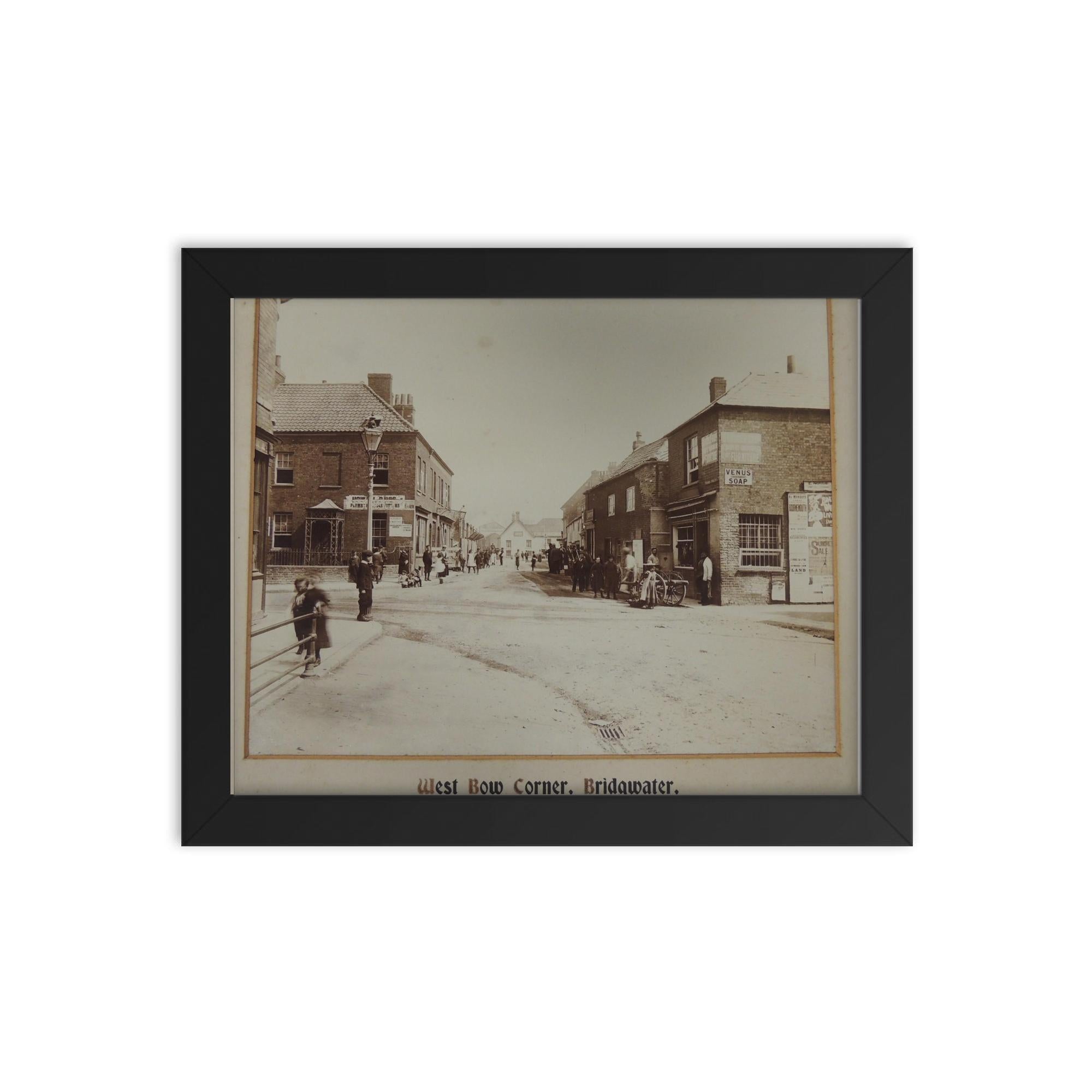 Framed Wall Art – Historic Bow Corner, Bridgwater Somerset UK 1901 Photograph Print, Vintage British Townscape Home Decor