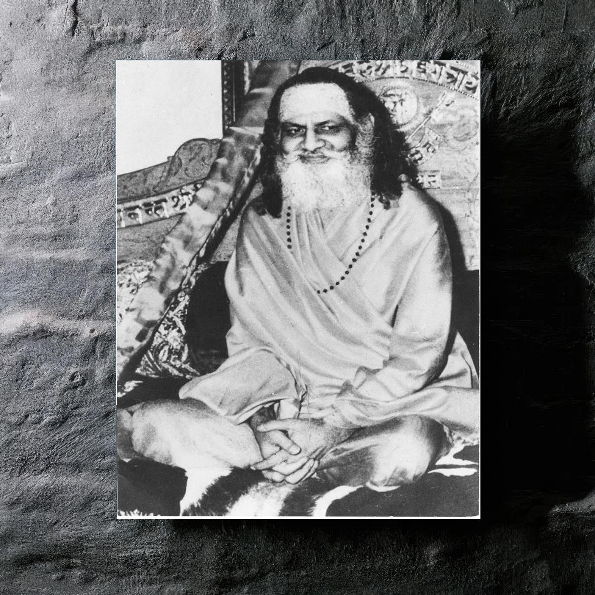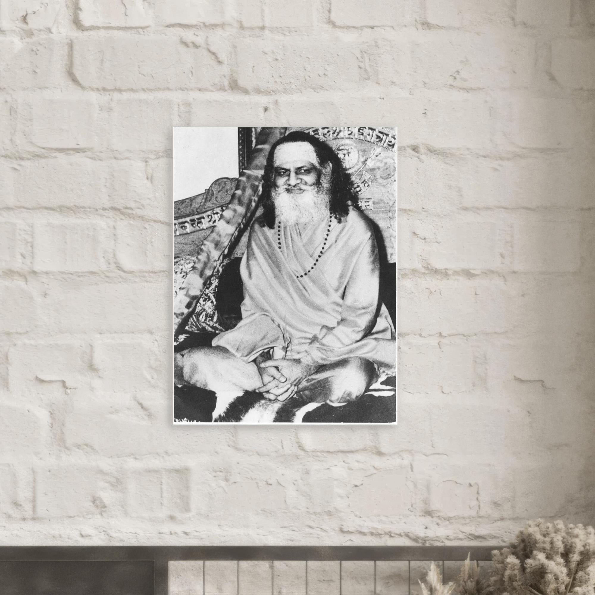 This metal print brings the quiet, steady presence of Brahmananda Saraswati into any room, a calm anchor that invites a moment of stillness.