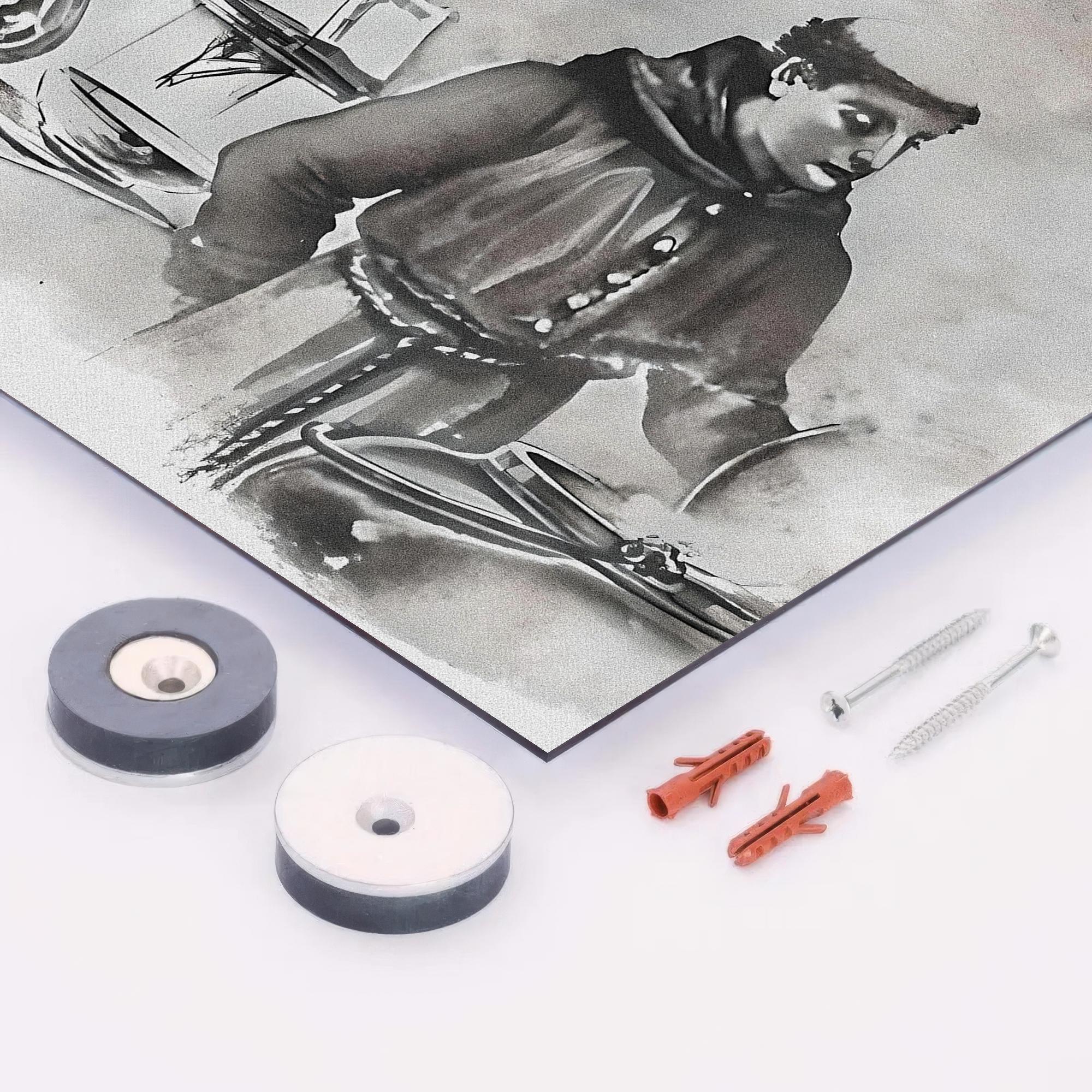 Your new metal print arrives ready to hang, creating a stunning "floating" effect right out of the box. It includes a complimentary, pre-installed mounting system—a magnet, hanger or secure French cleat—selected by our lab to best suit its size, ensuring a gallery-quality presentation.