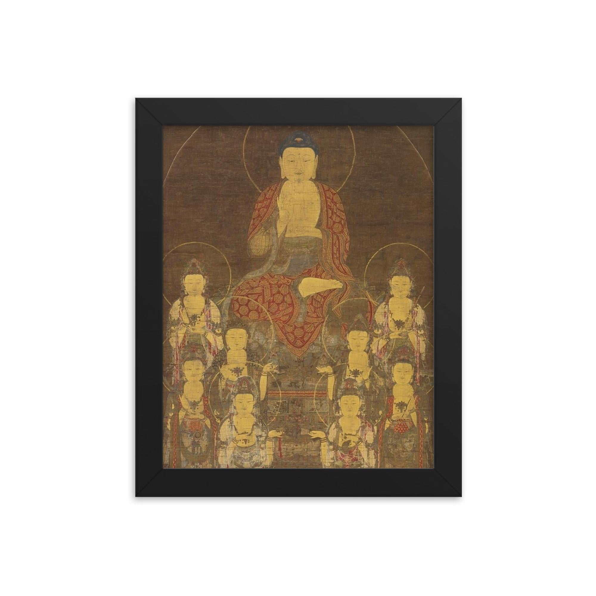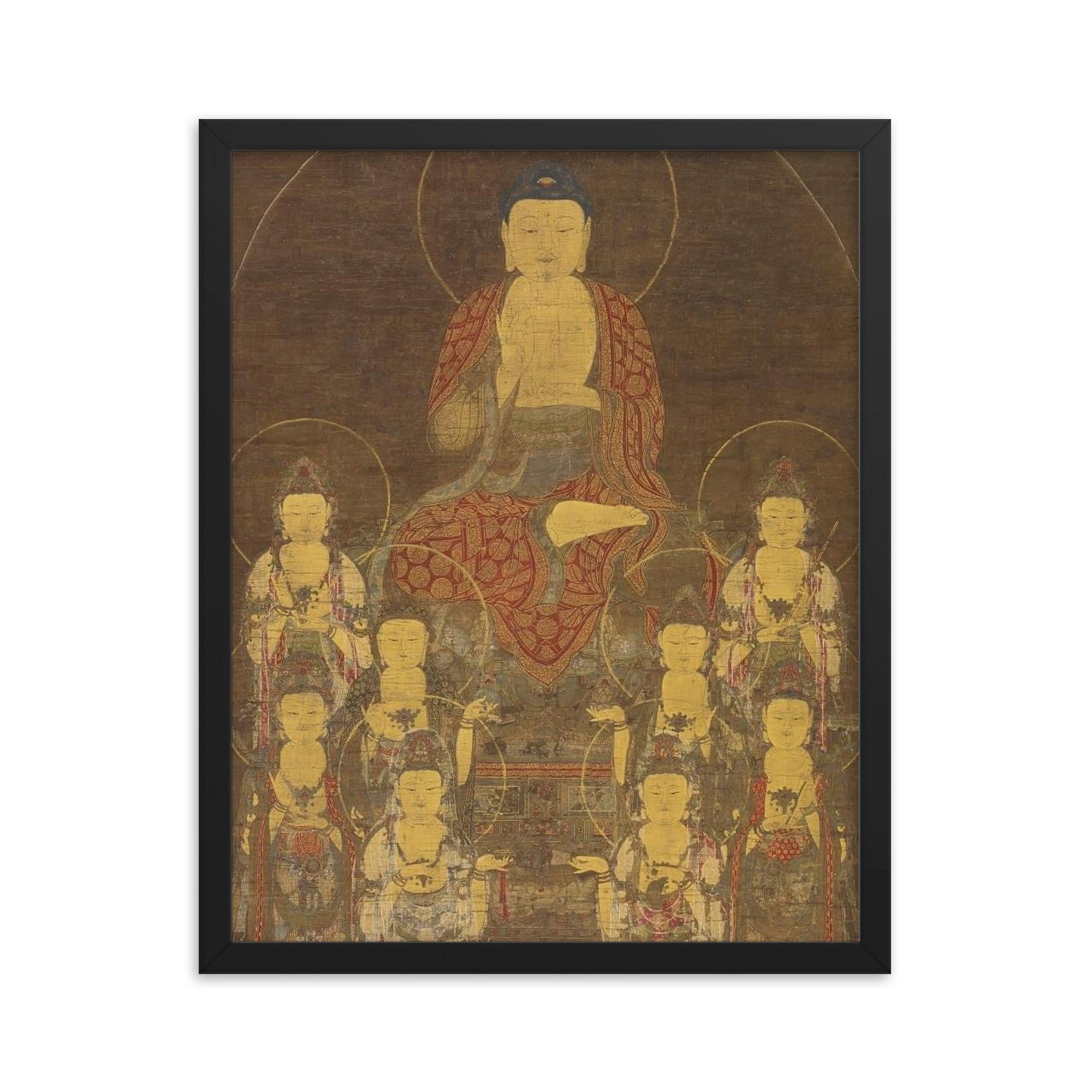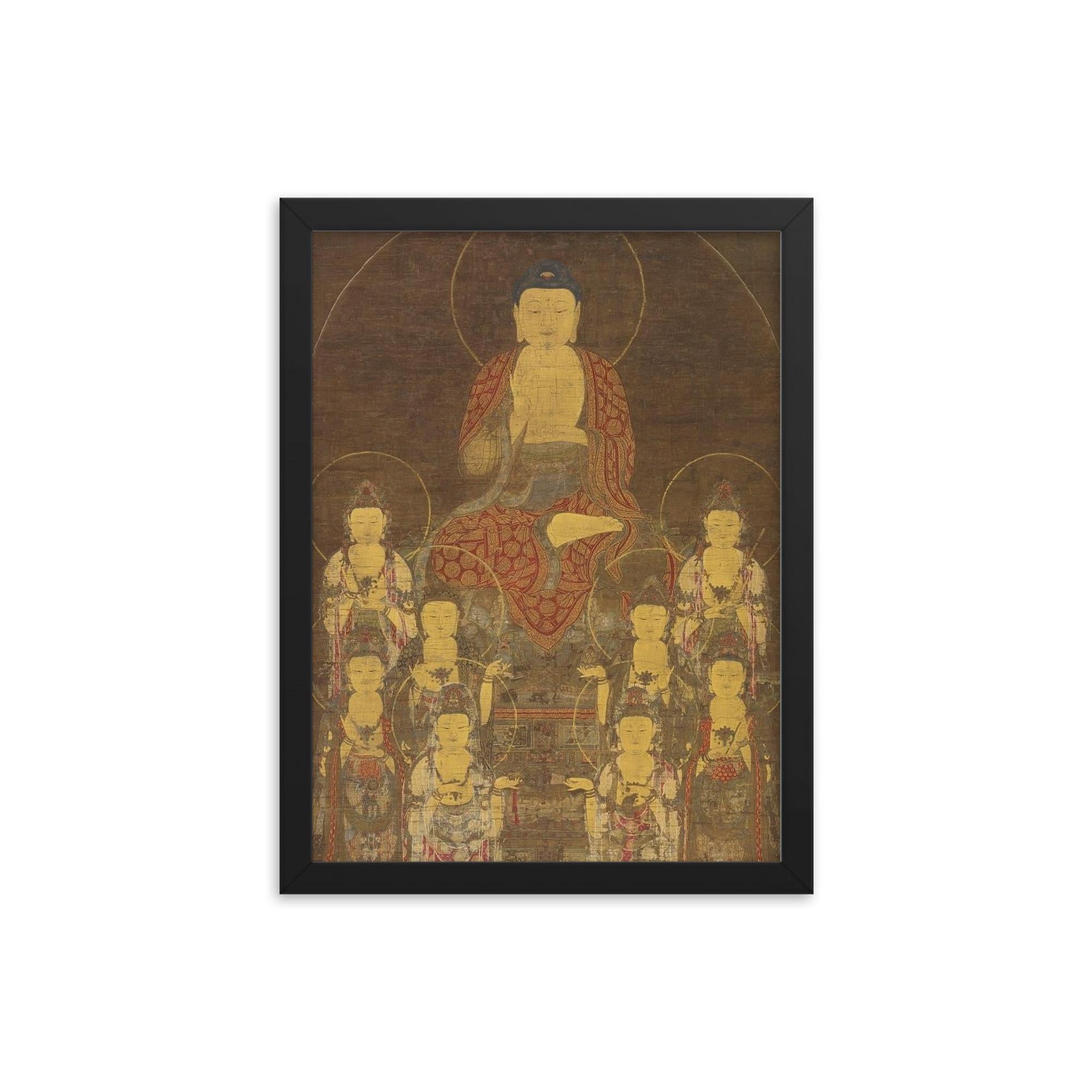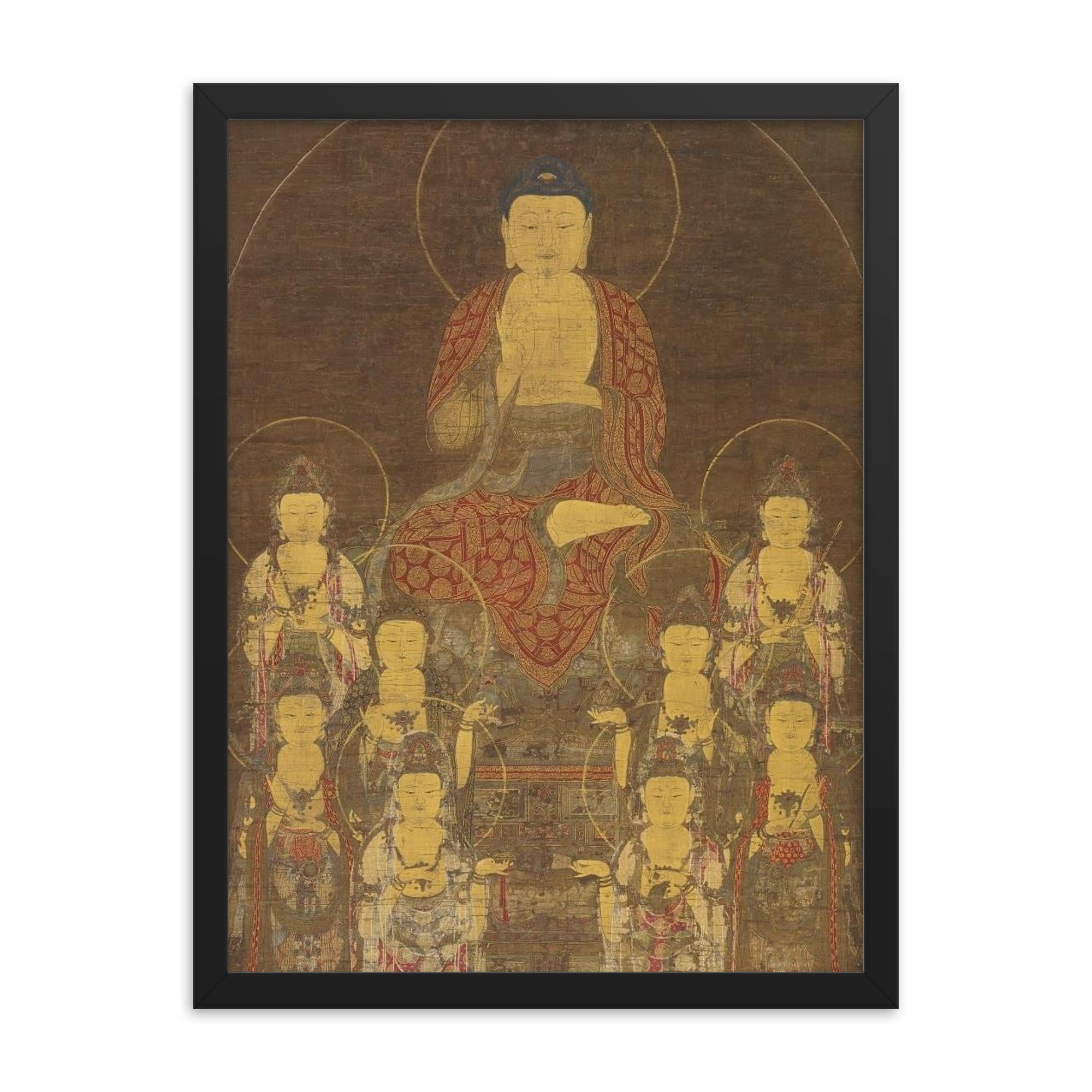 Framed Buddha Amitabha & Eight Great Bodhisattvas Wall Art – Spiritual Asian Decor Print, Meditation Room Sacred Poster