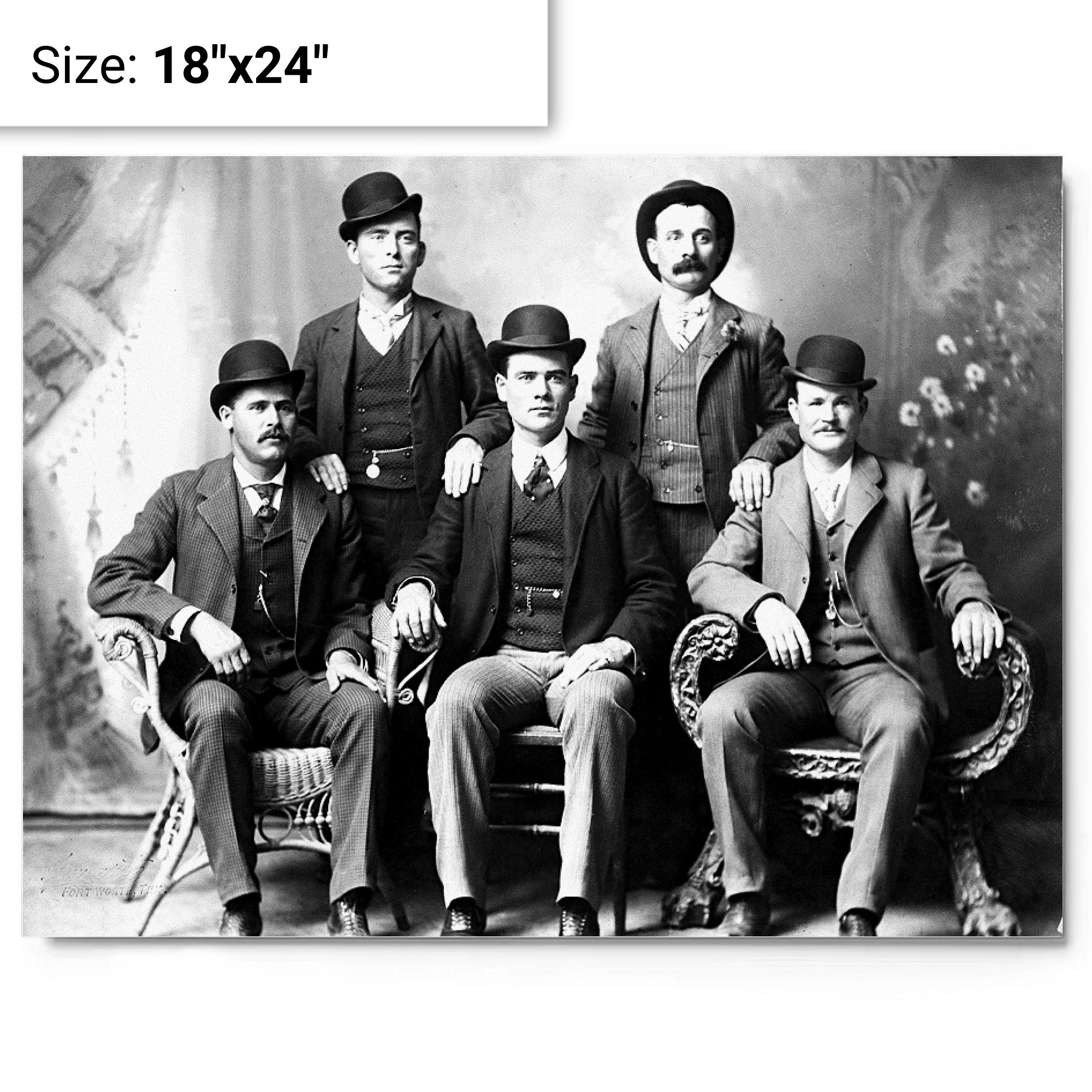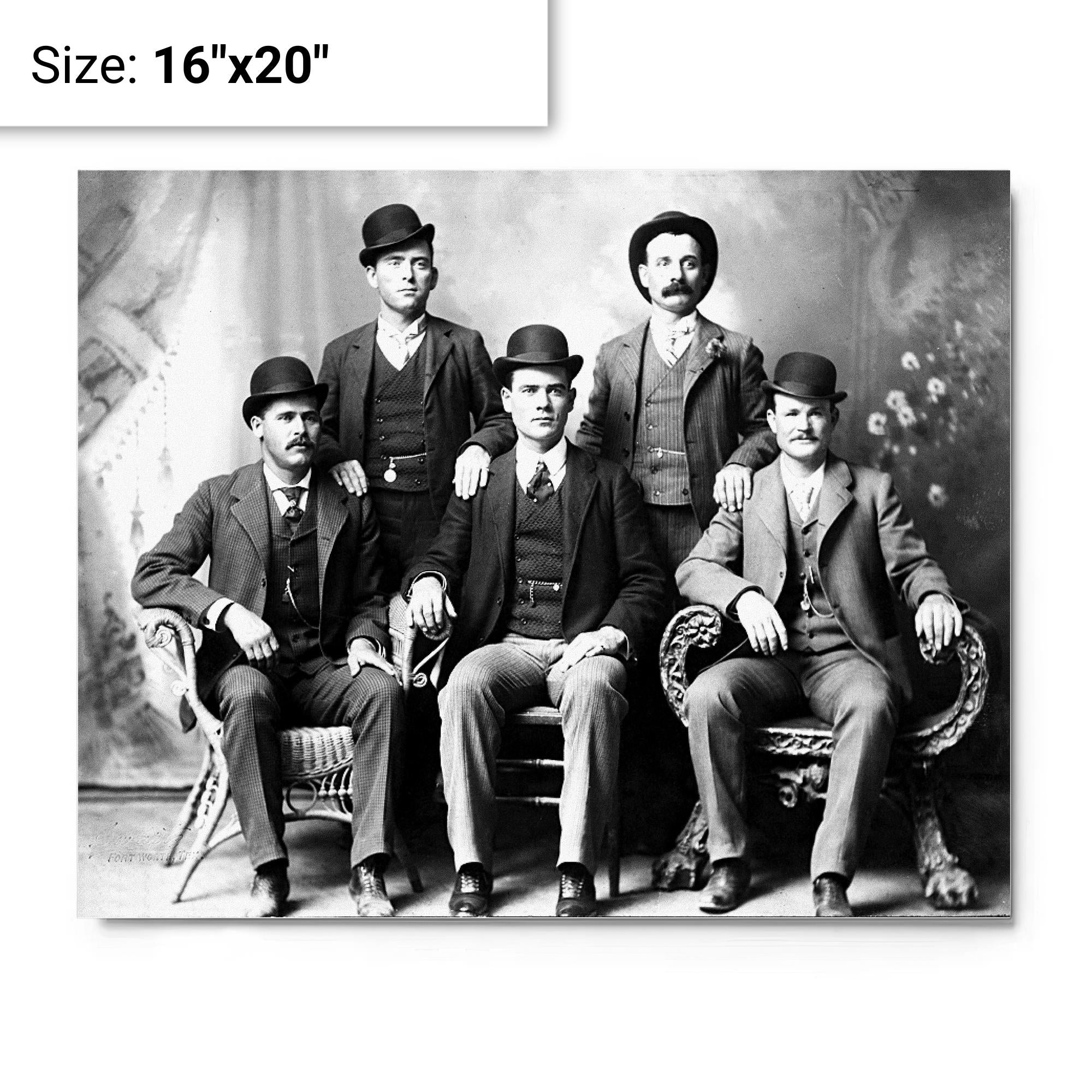This metal print of Butch Cassidy's Wild Bunch (Fort Worth Five) puts a piece of outlaw history on your wall.